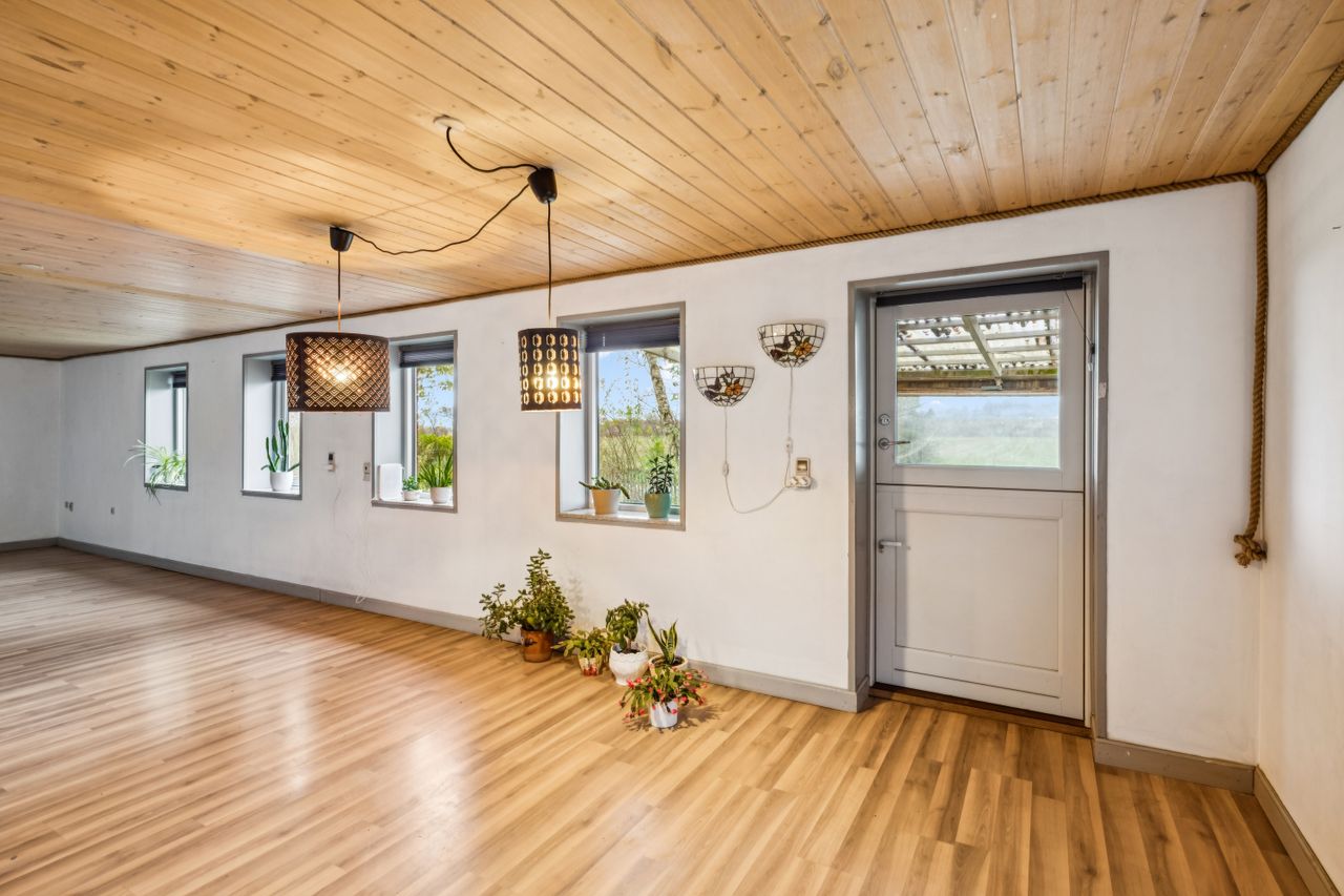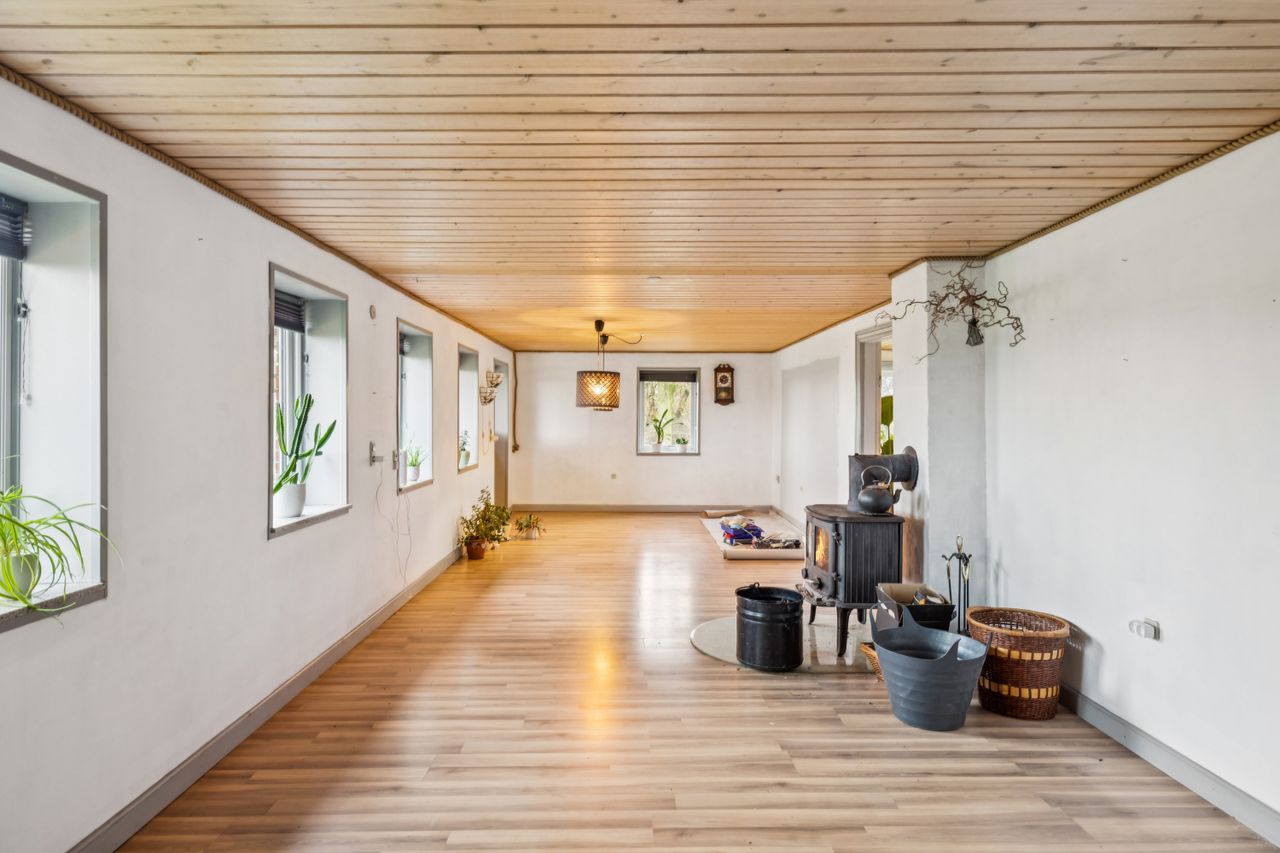 Kort fortalt: En ejendom med masser af plads, et stort grundareal og mulighed for at sætte sit eget præg – perfekt til dig, der drømmer om landlig fred og mange kvadratmeter til en pris, hvor alle kan være med.