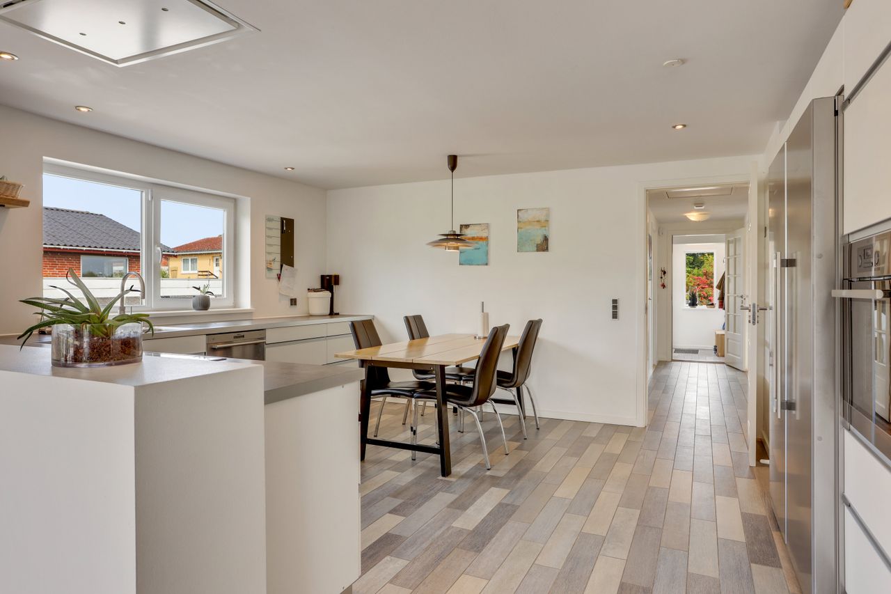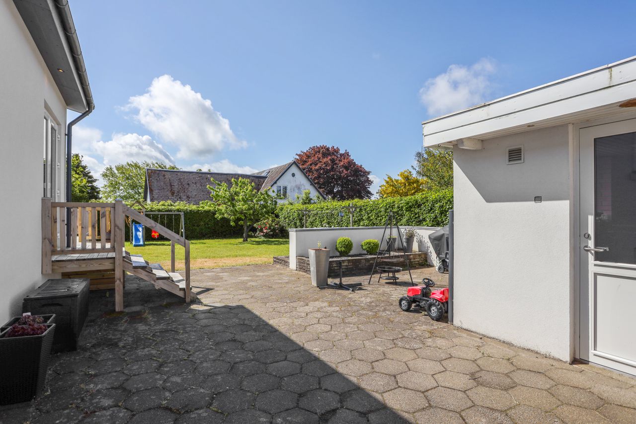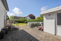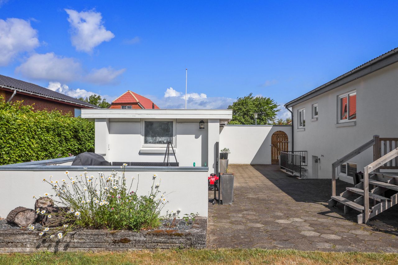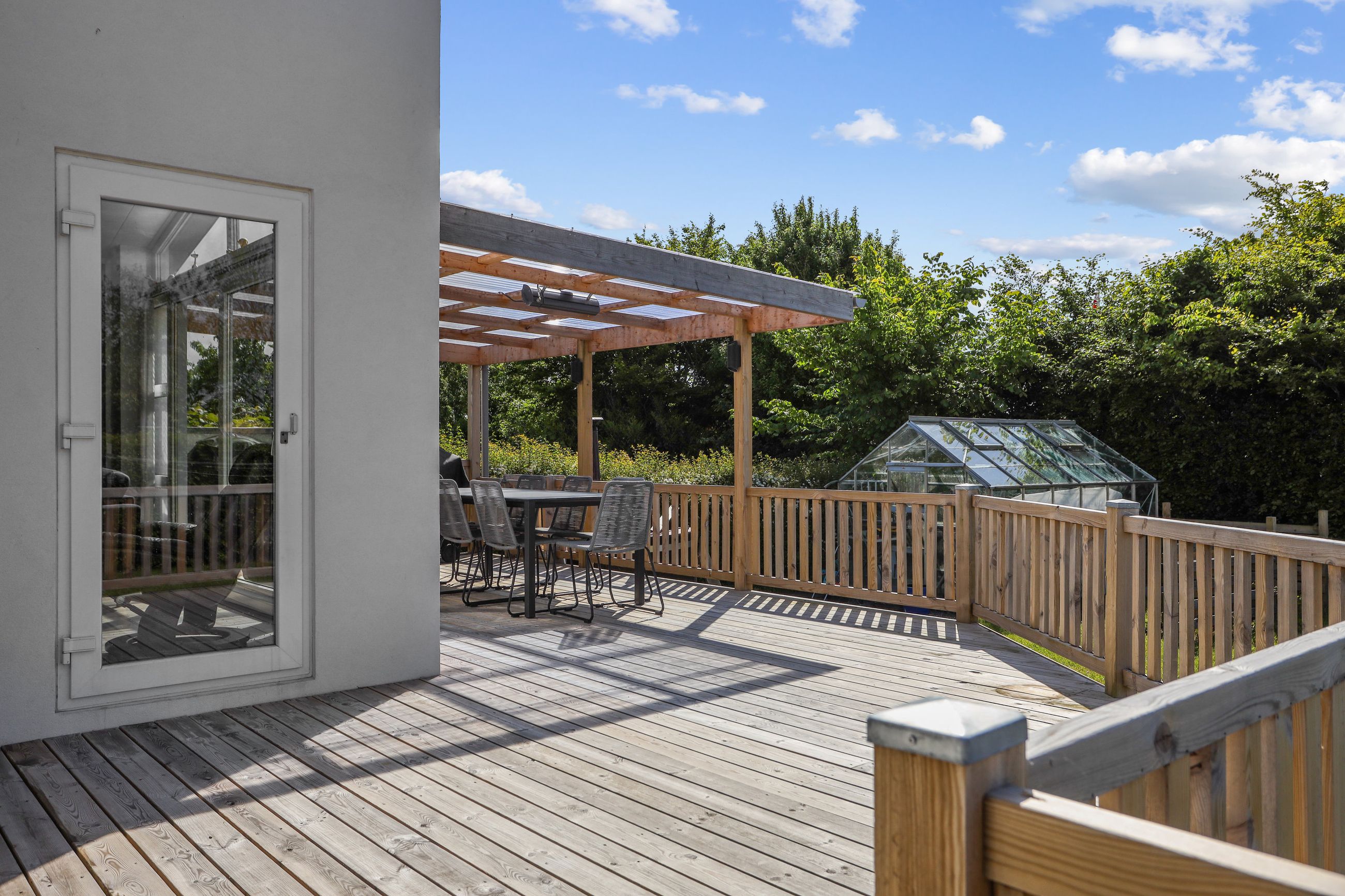 Udendørs får du en dejlig ugeneret have med gode kroge til leg, afslapning og udeliv. Den store terrasse binder ude og inde smukt sammen og gør huset oplagt til dig, der sætter pris på en nem og brugervenlig have.