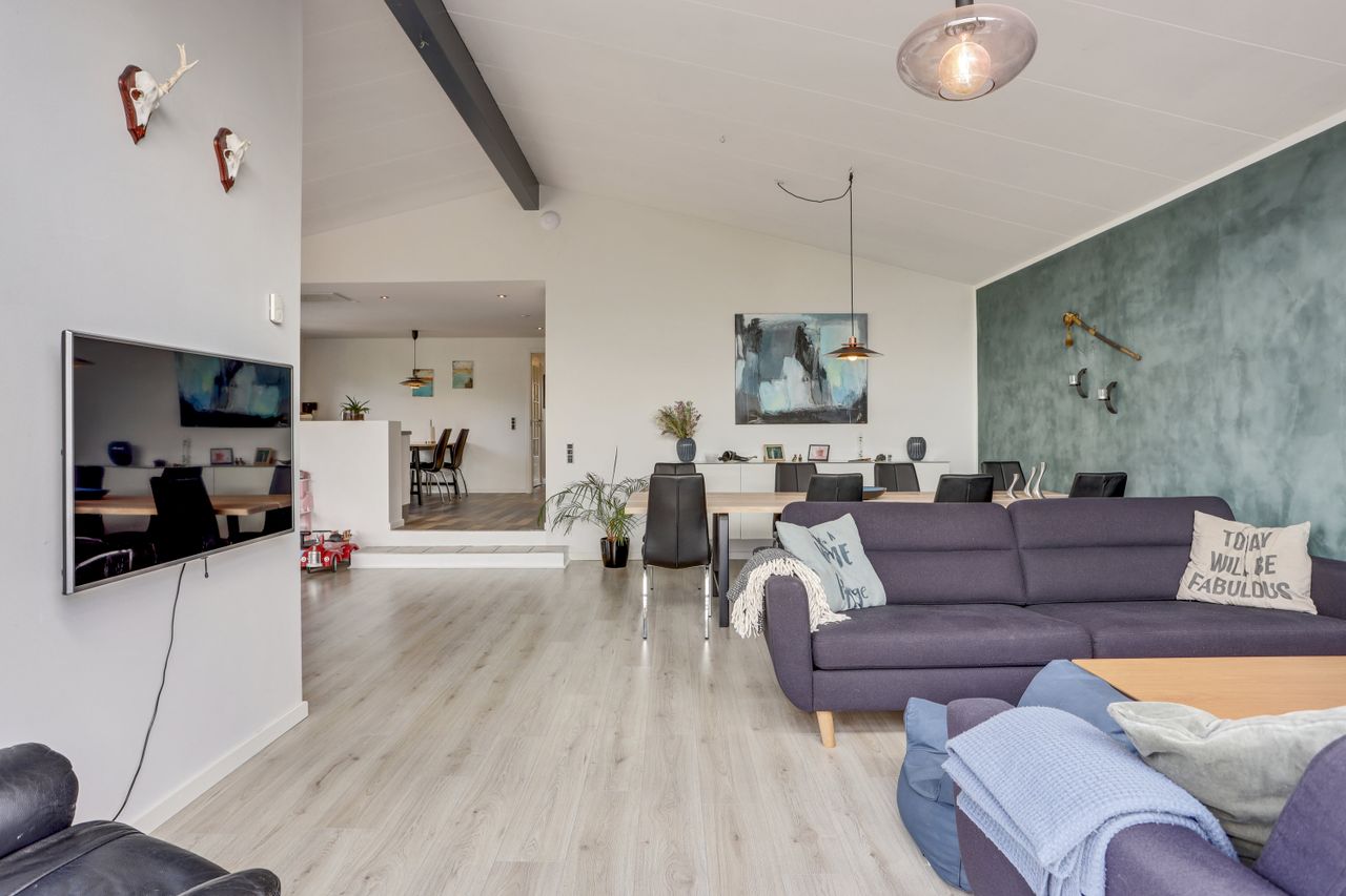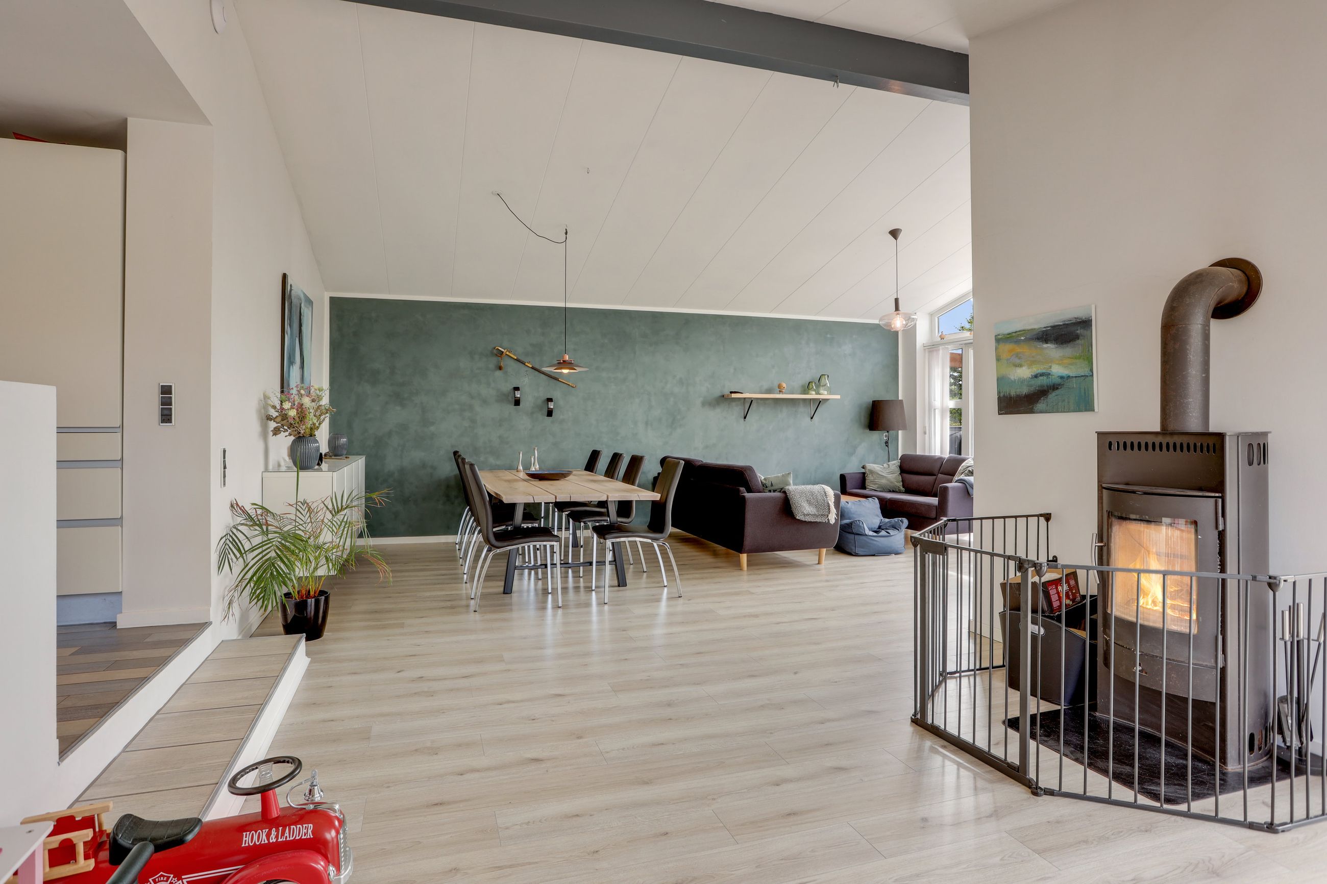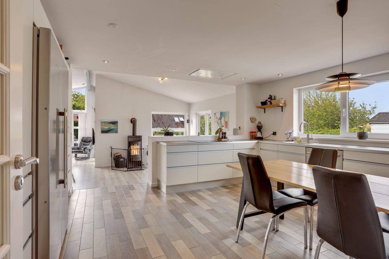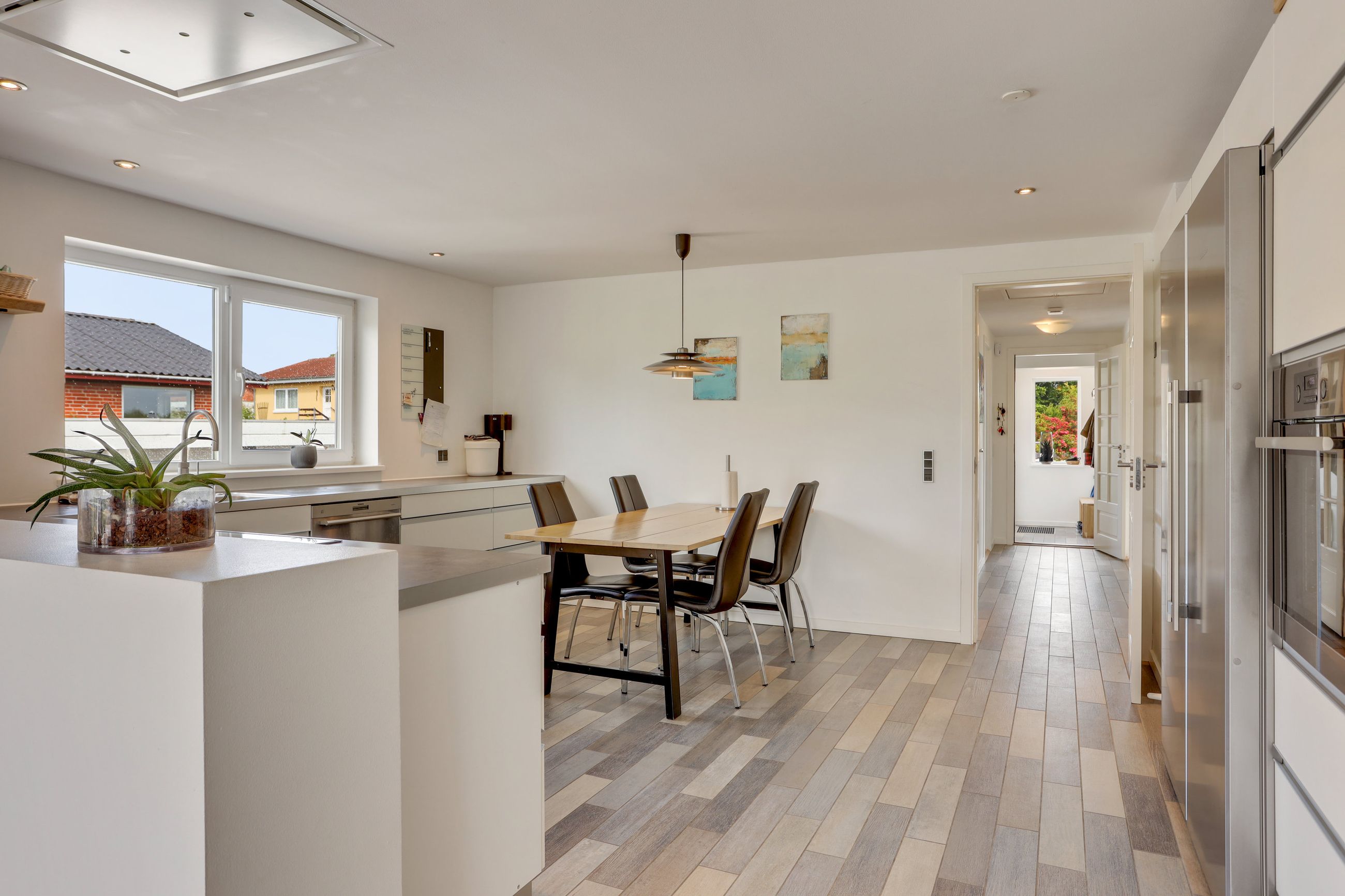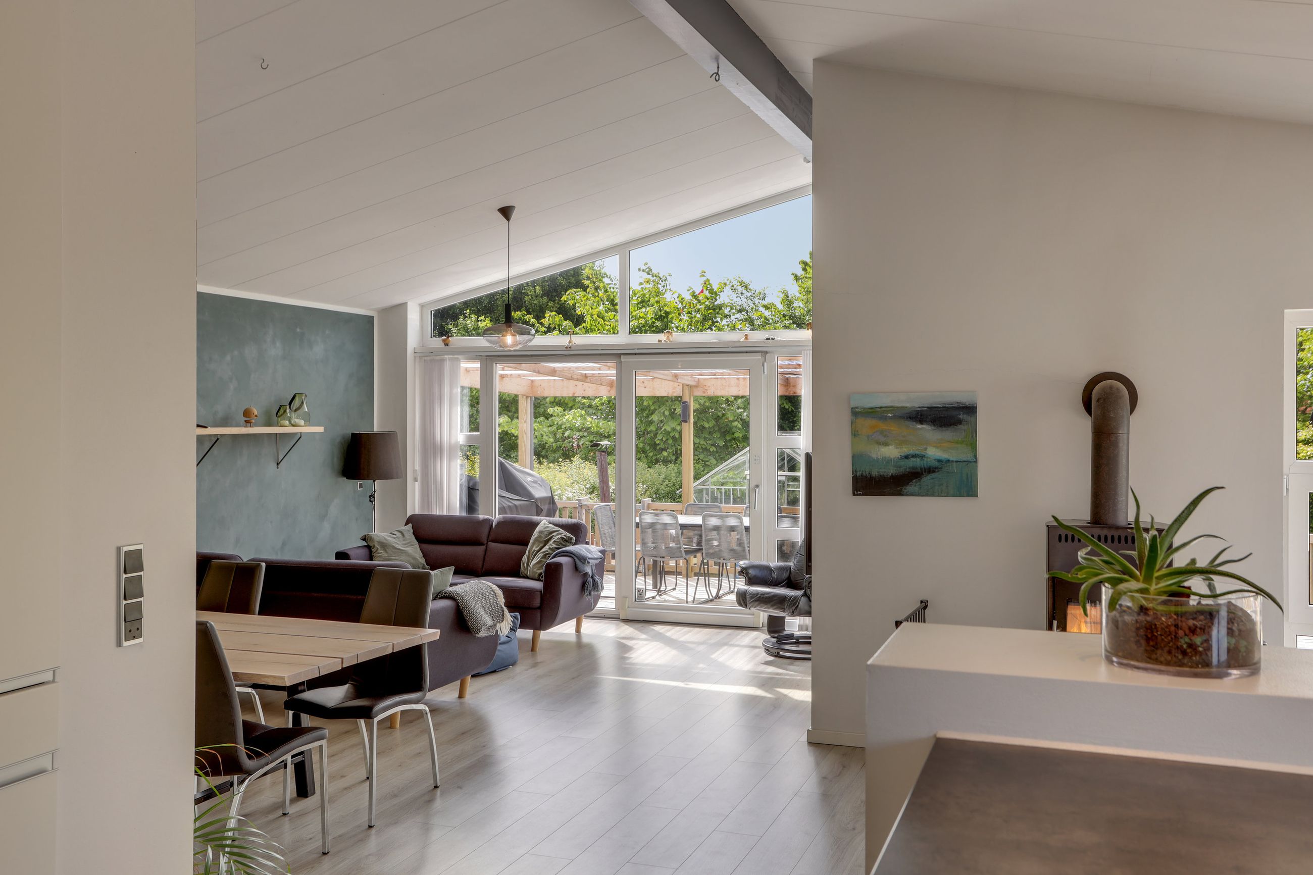 Boligen byder på en lys og indbydende atmosfære med et flot åbent opholdsrum, hvor stue og køkken/alrum er samlet i ét – perfekt til både hverdagslivet og hyggelige stunder med gæster. De store vinduespartier giver et fantastisk lysindfald, og fra stuen er der direkte adgang til en rummelig træterrasse, som indbyder til grill, solbadning og afslapning i de lune måneder.