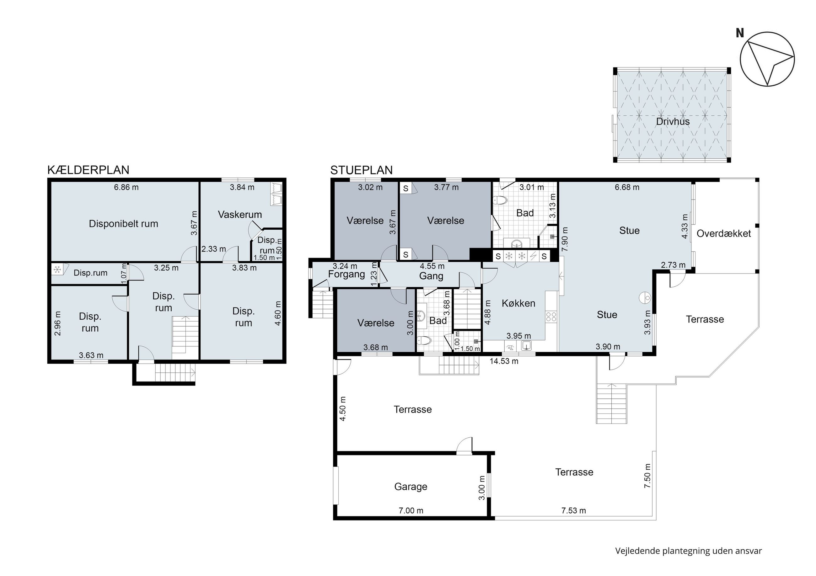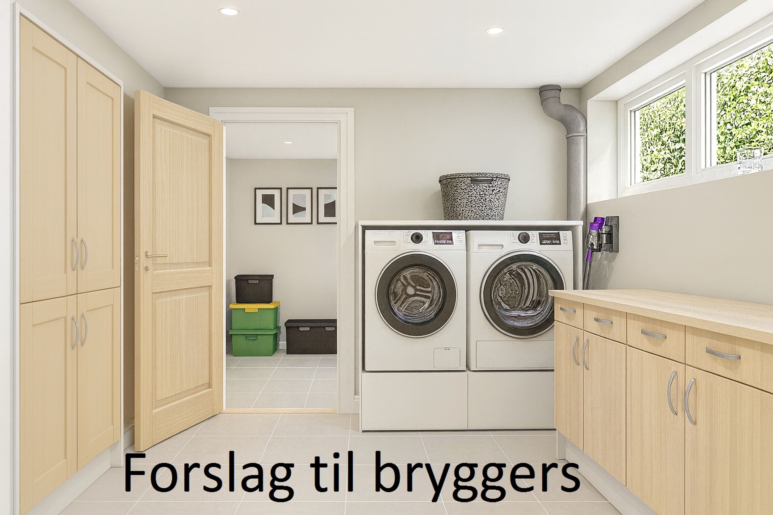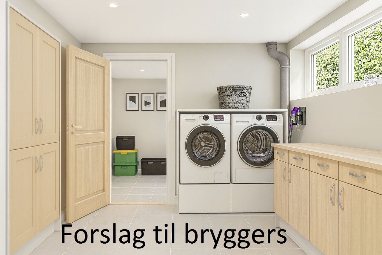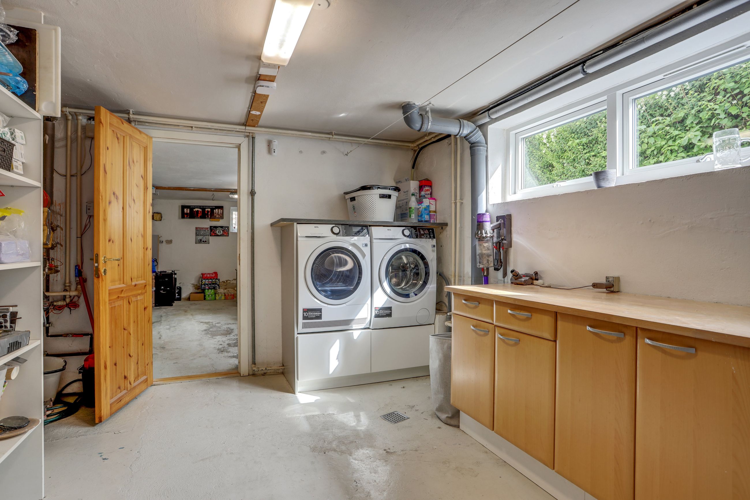 I kælderen finder du ekstra plads til opbevaring, hobby eller værksted – og derudover er der et praktisk bryggers med god arbejdsplads, vaskefaciliteter og ekstra opbevaring.