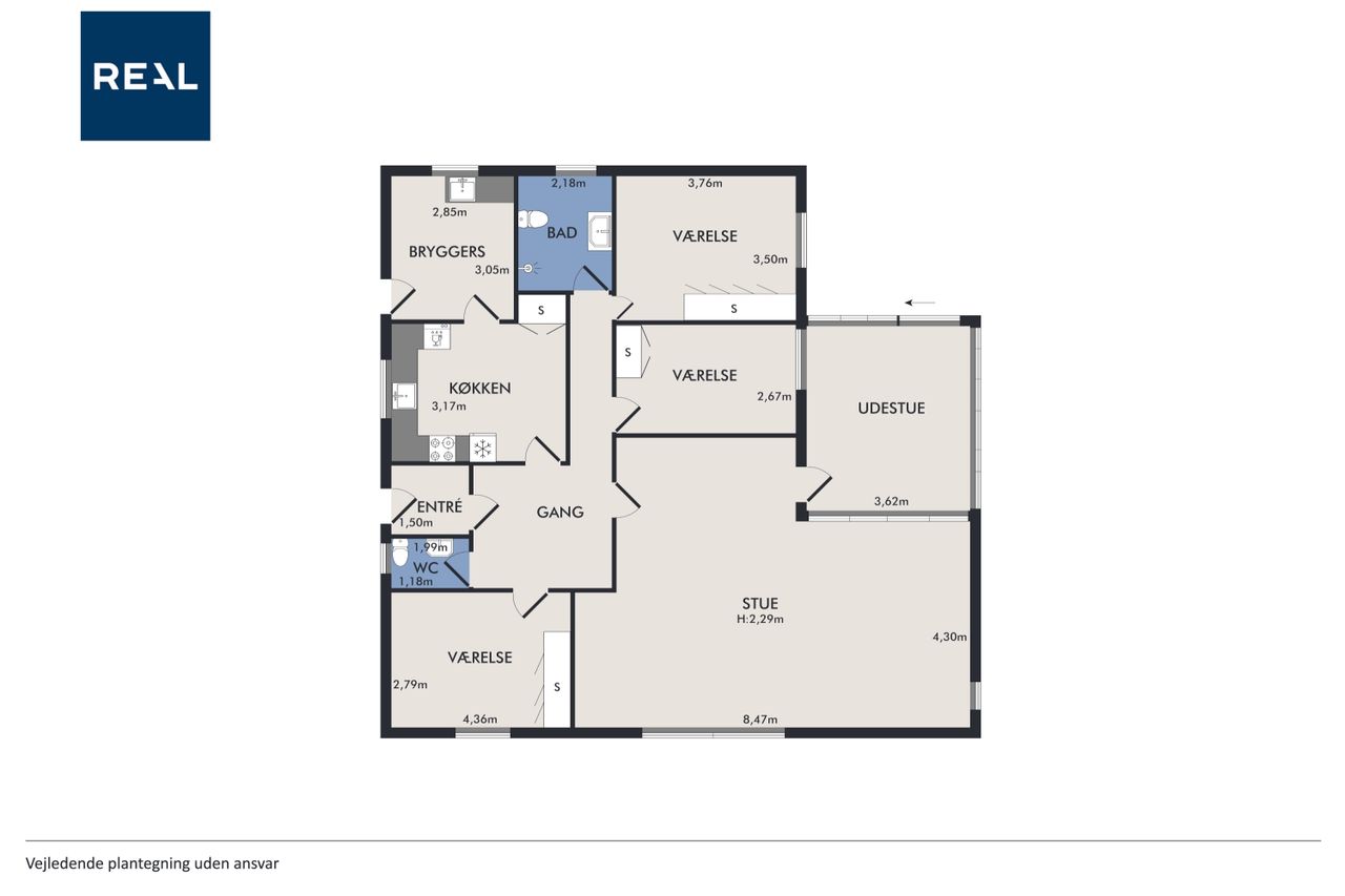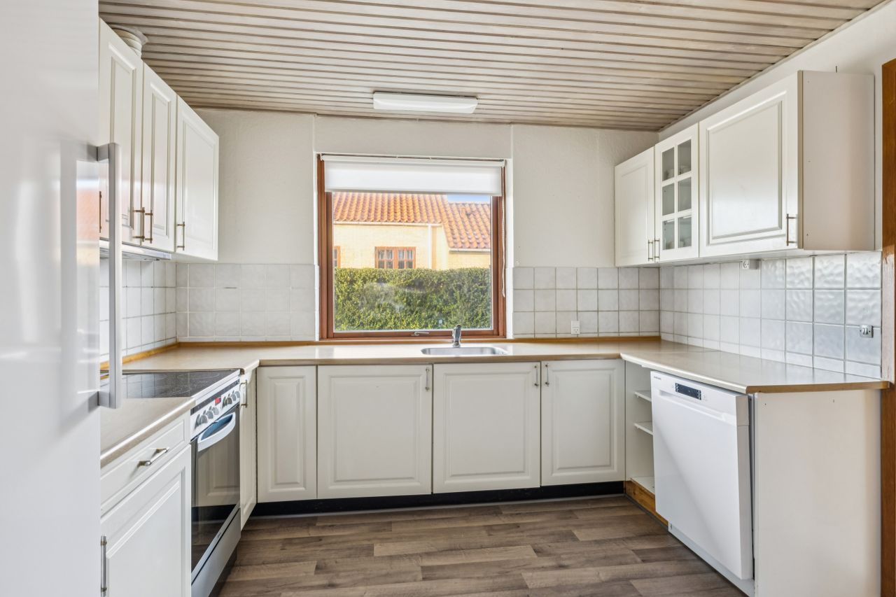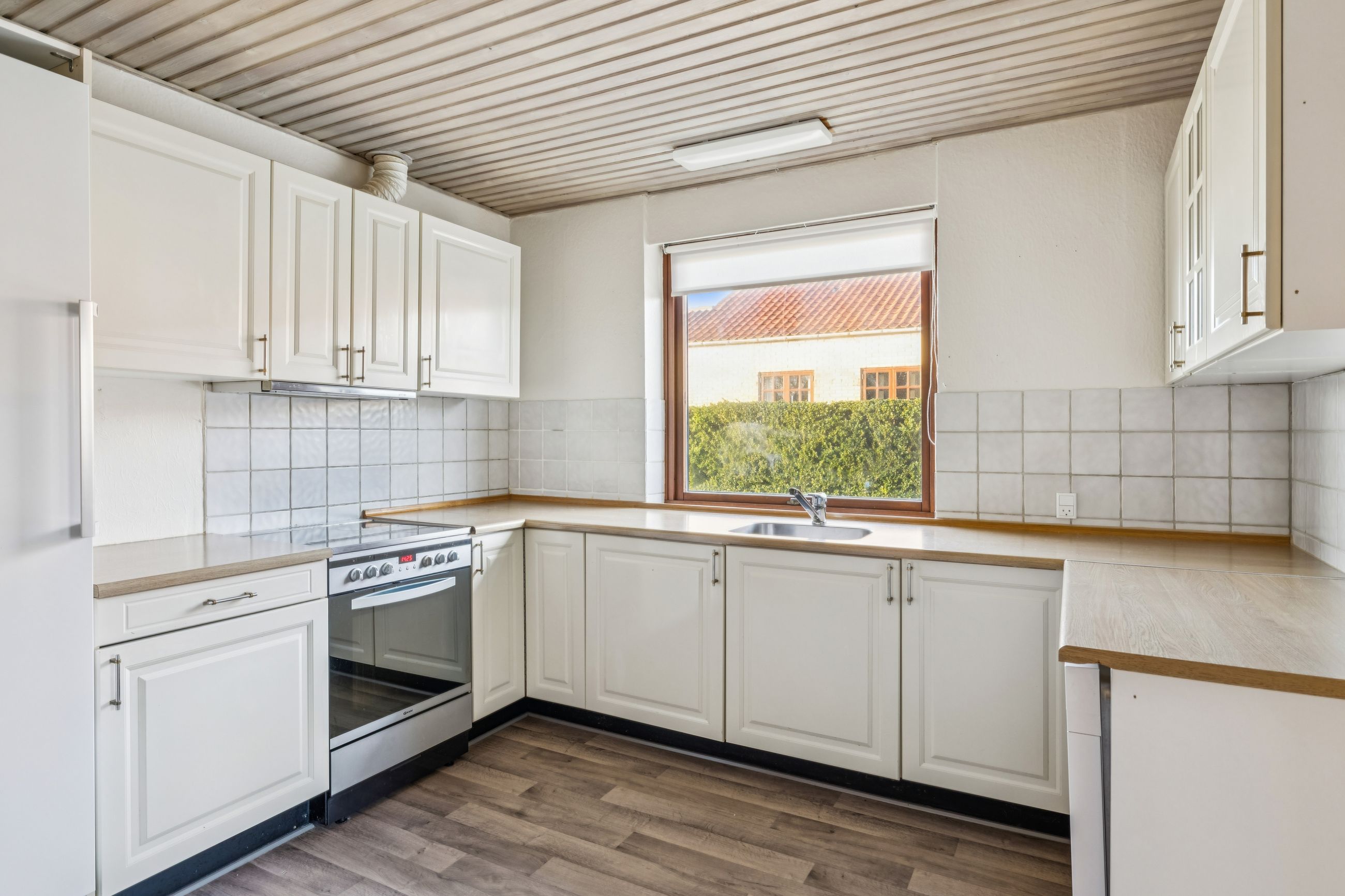 Den store stue danner et naturligt samlingspunkt i hjemmet og har direkte udgang til en dejlig udestue, som forlænger sæsonen og giver et skønt lysindfald. Køkkenet er indrettet med spiseplads og har god plads til hverdagens måltider. Praktisk bryggers med vaskeplads og opbevaringsmuligheder.