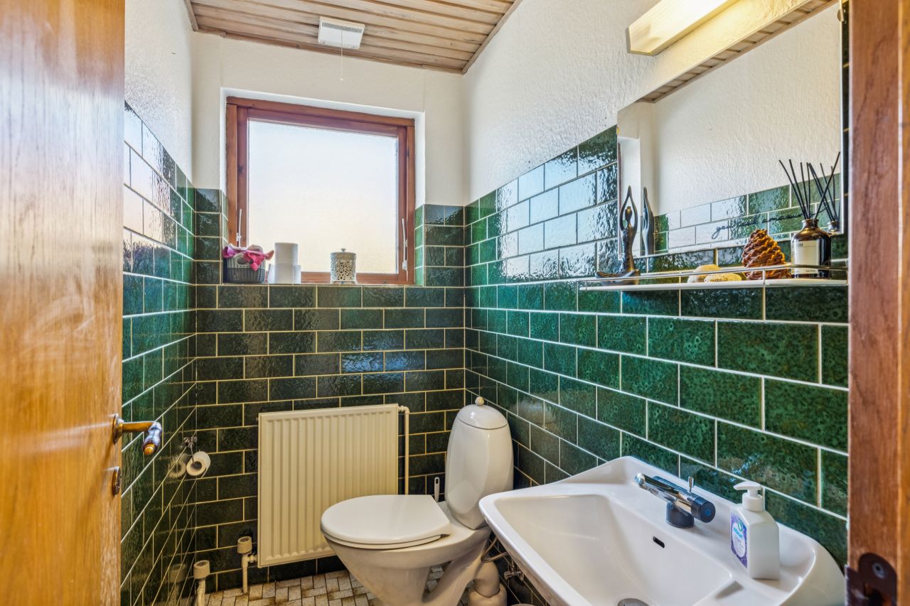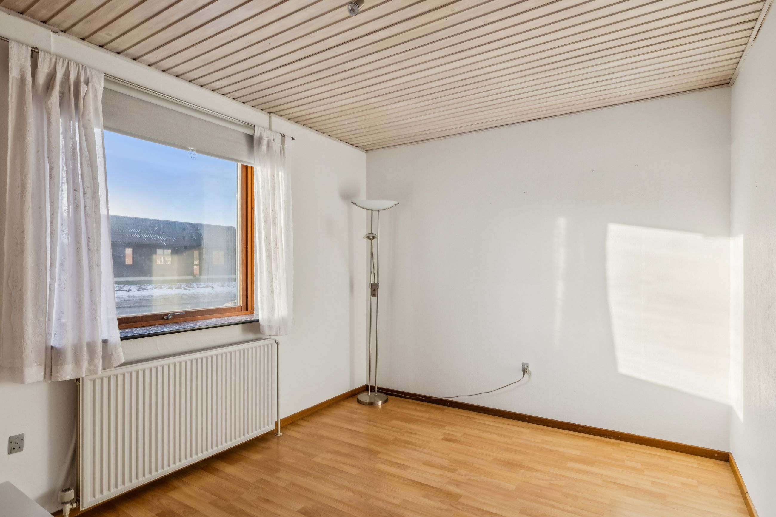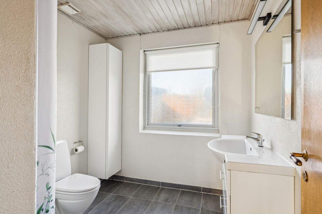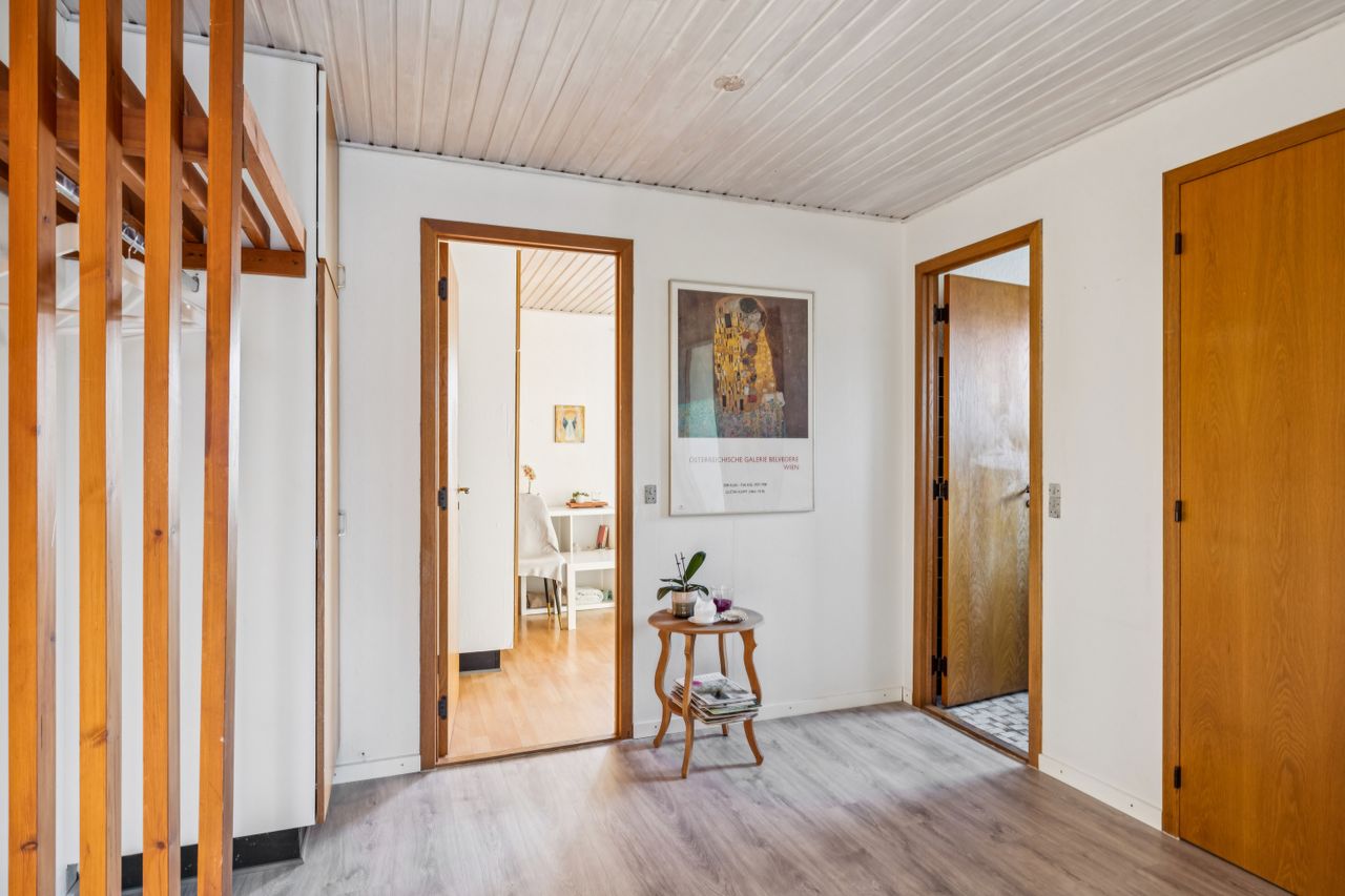 Huset byder velkommen i entréen, hvorfra der er adgang til gæstetoilet. Boligen rummer desuden et værelse samt to gode værelser med faste skabe. Badeværelset er pænt renoveret og fremstår lyst og tidssvarende.