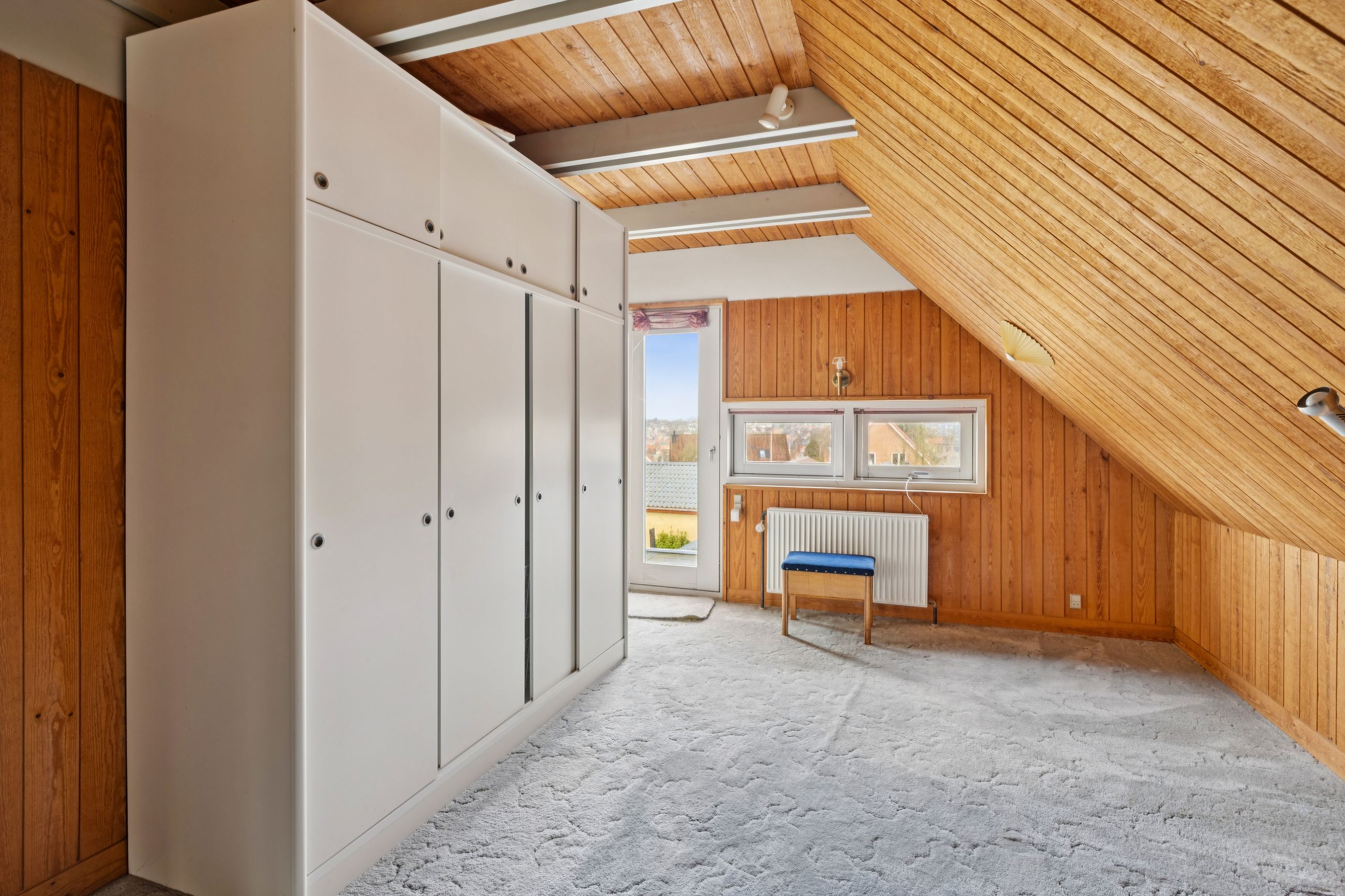 Her er muligheden for at erhverve sig en rummelig og højt beliggende familievilla med flot udsigt over Fyrkat. Villaen rummer hele 200 boligm2 og hertil kommer 45 m2 regulær og anvendelig kælder. Der er desuden 21 m2 stor garage. Grundarelalet udgør 808 m2. God placering i roligt villakvarter med kort afstand til de daglige fornødenheder i form af skole, daginstitutioner, indkøb, midtbyen m.v.. Indeholder: Entre med trappe til 1. salen, køkken, bryggers, gæstetoilet, værelse vinkelstue, opholdsstue med trappe til kælderplan samt pejseindsats og adgang til udestue. 1. salen rummer soveværelse og 2 værelser samt badeværelse med adgang til sauna. I kælderplan er der disponible rum og thekøkken. Kælderplan kan tilgås udefra. Udbudsprisen rummer mulighed for køber til at modernisere og istandsætte efter egne ønsker og behov. Kontakt ejendomsmægleren for nærmere informationer, herunder aftale om en uforpligtende fremvisning.