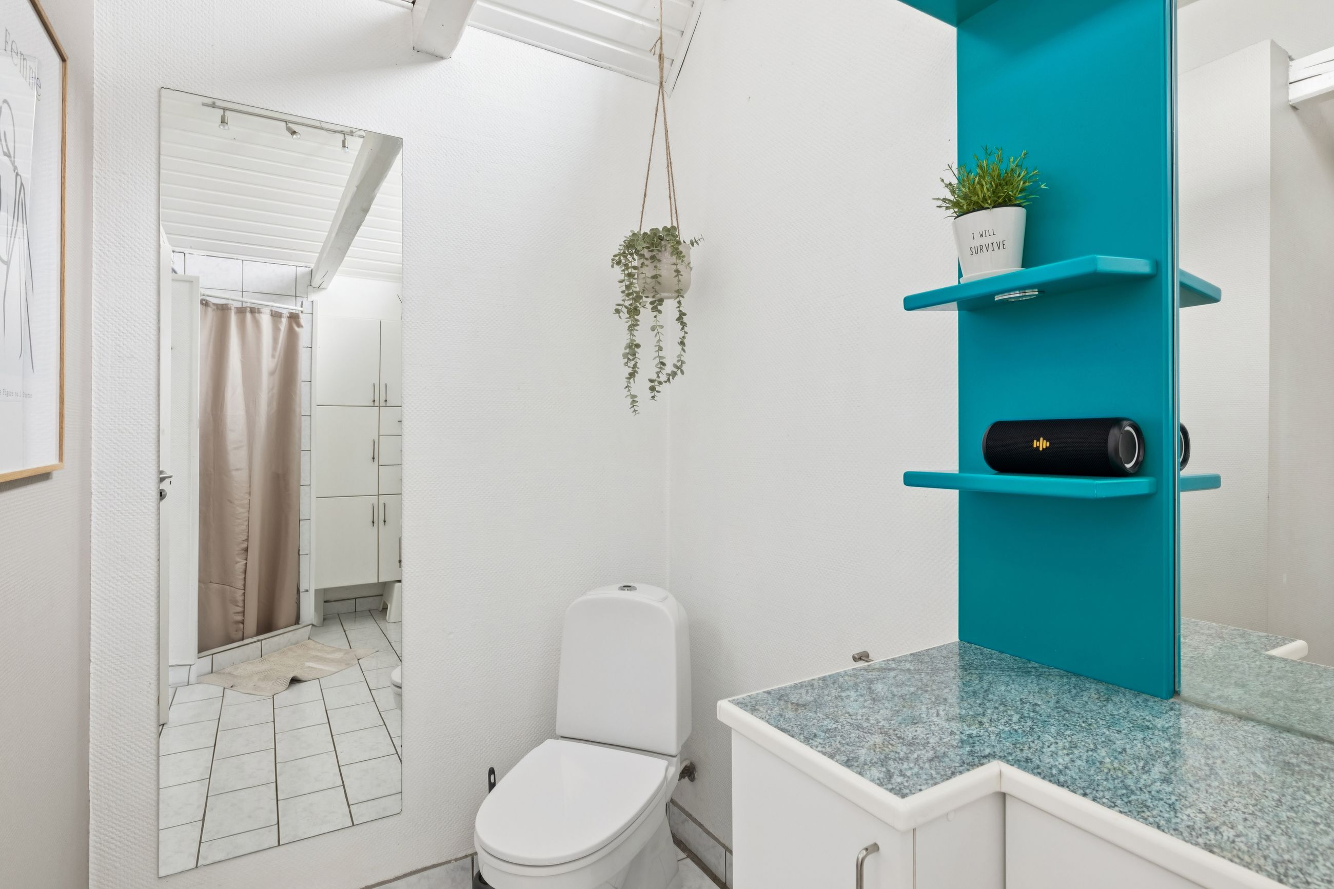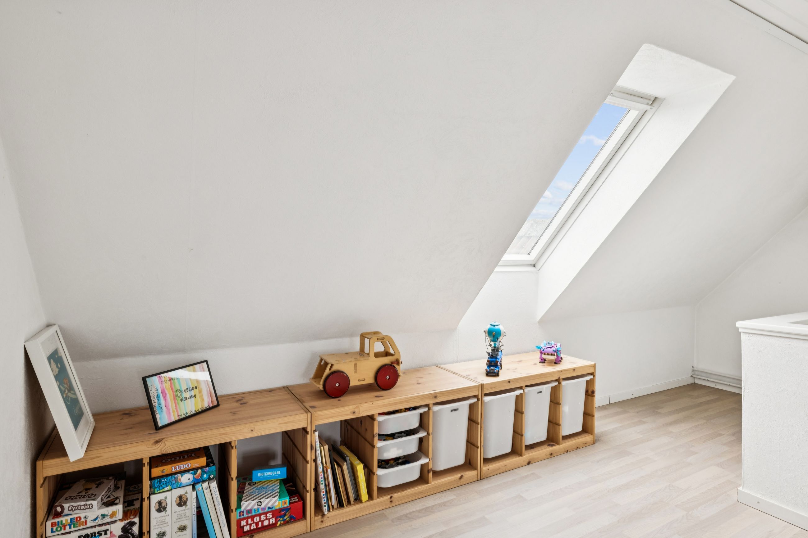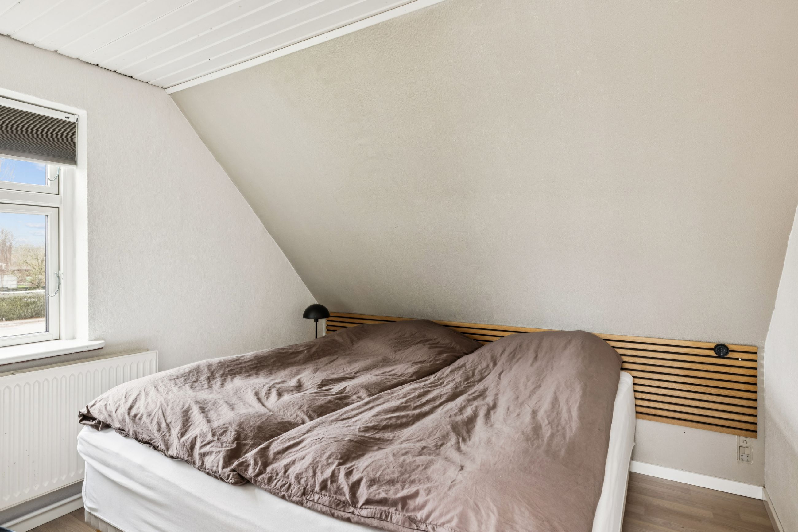 Fra spisekøkkenet fører trappen op til førstesalen, som rummer to store værelser samt et rummeligt repos med plads til opbevaring, kontor område og en lille hems. Det ene værelse kan nemt opdeles i to, som det tidligere har været – perfekt til den voksende familie eller hjemmekontor.