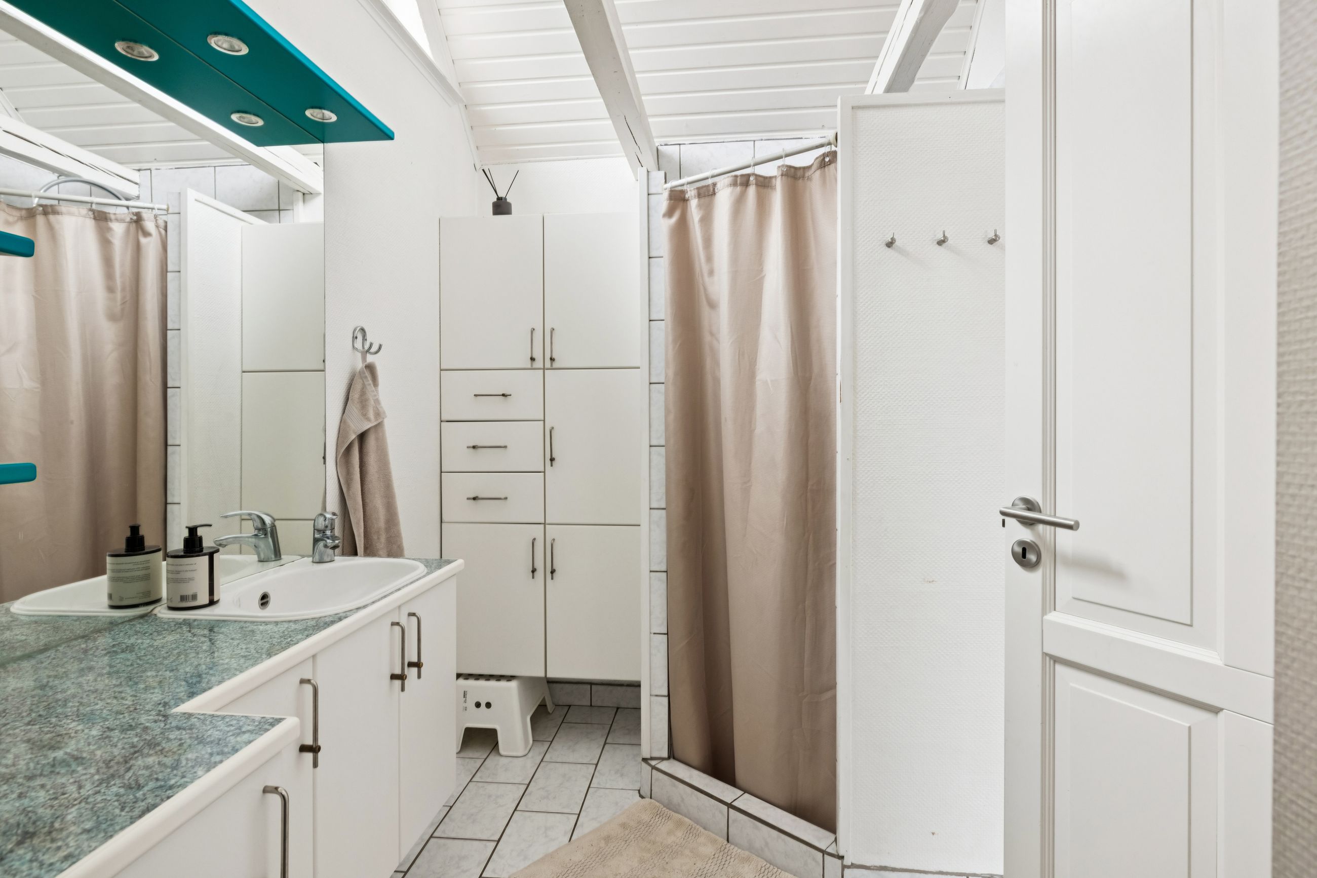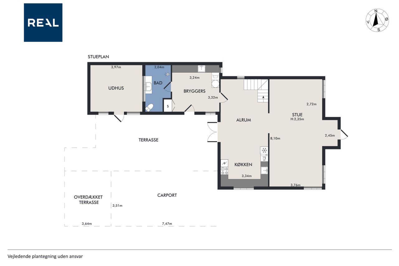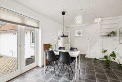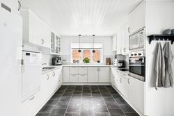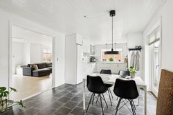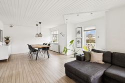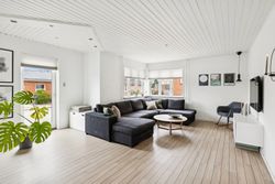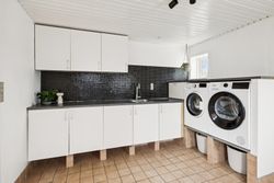 Boligen er opført i to plan og byder i stueplan på et stort og praktisk bryggers med klinkegulv og gulvvarme. Det lyse badeværelse er ligeledes udstyret med gulvvarme, klinker på gulvet, loft til kip, toilet og bruseniche – en skøn oase i hverdagen. Husets hjerte er det rummelige spisekøkken med laminatgulv i flot fliselook og behagelig gulvvarme, hvor der er god plads til både madlavning og samvær. Overalt i huset er der hvidmalede rustiklofter, som bidrager til en lys og venlig atmosfære. Den store stue imponerer med sit skibsplank-laminatgulv og giver god plads til både afslapning og gæster.