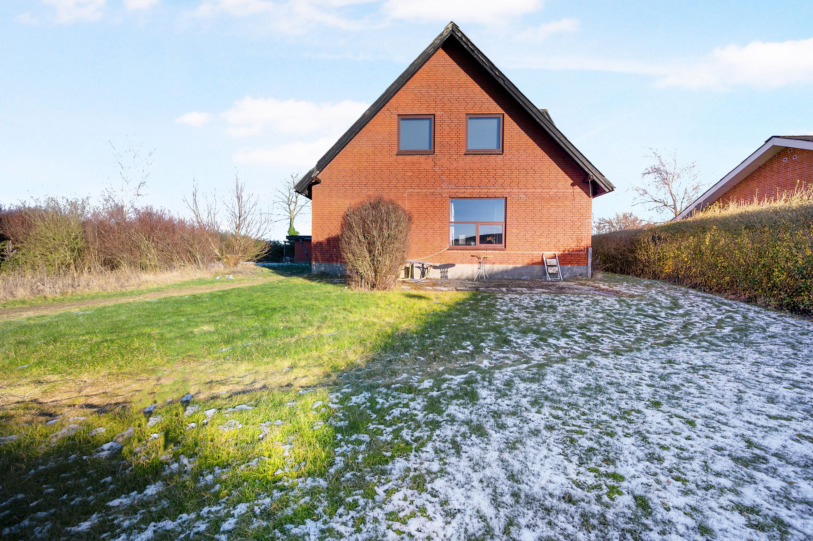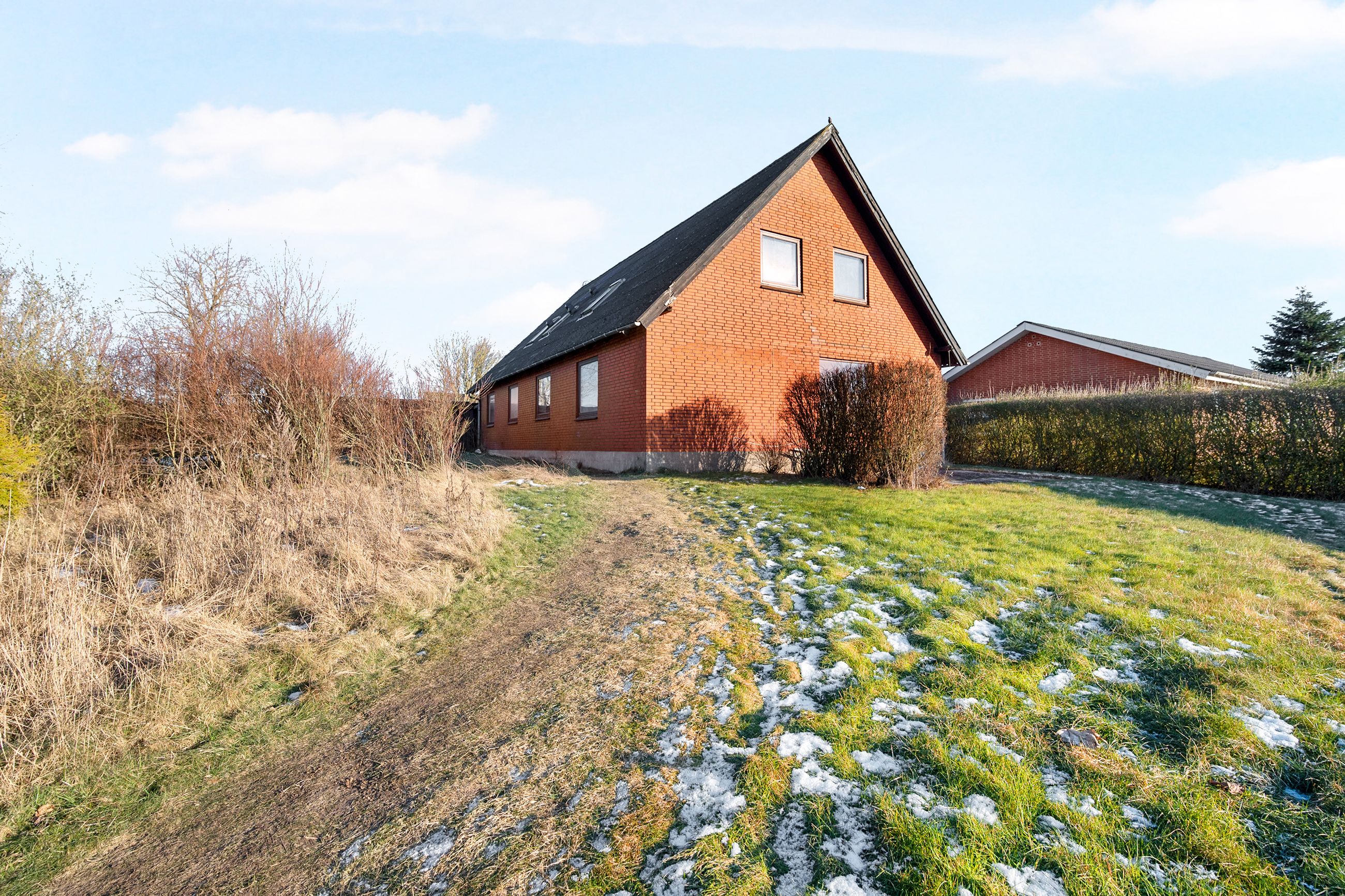 Tilhørende huset er der stor dobbelt garage og have.