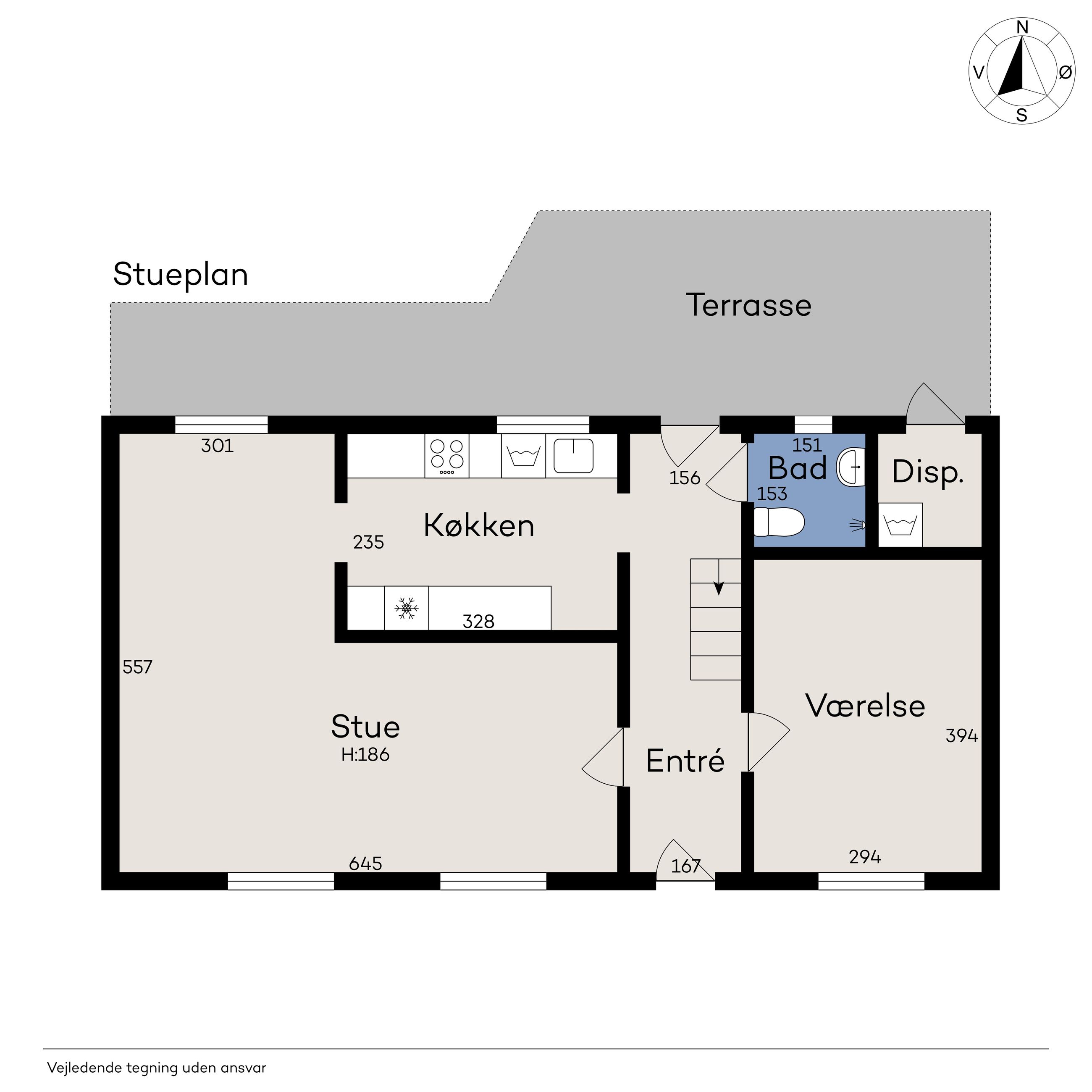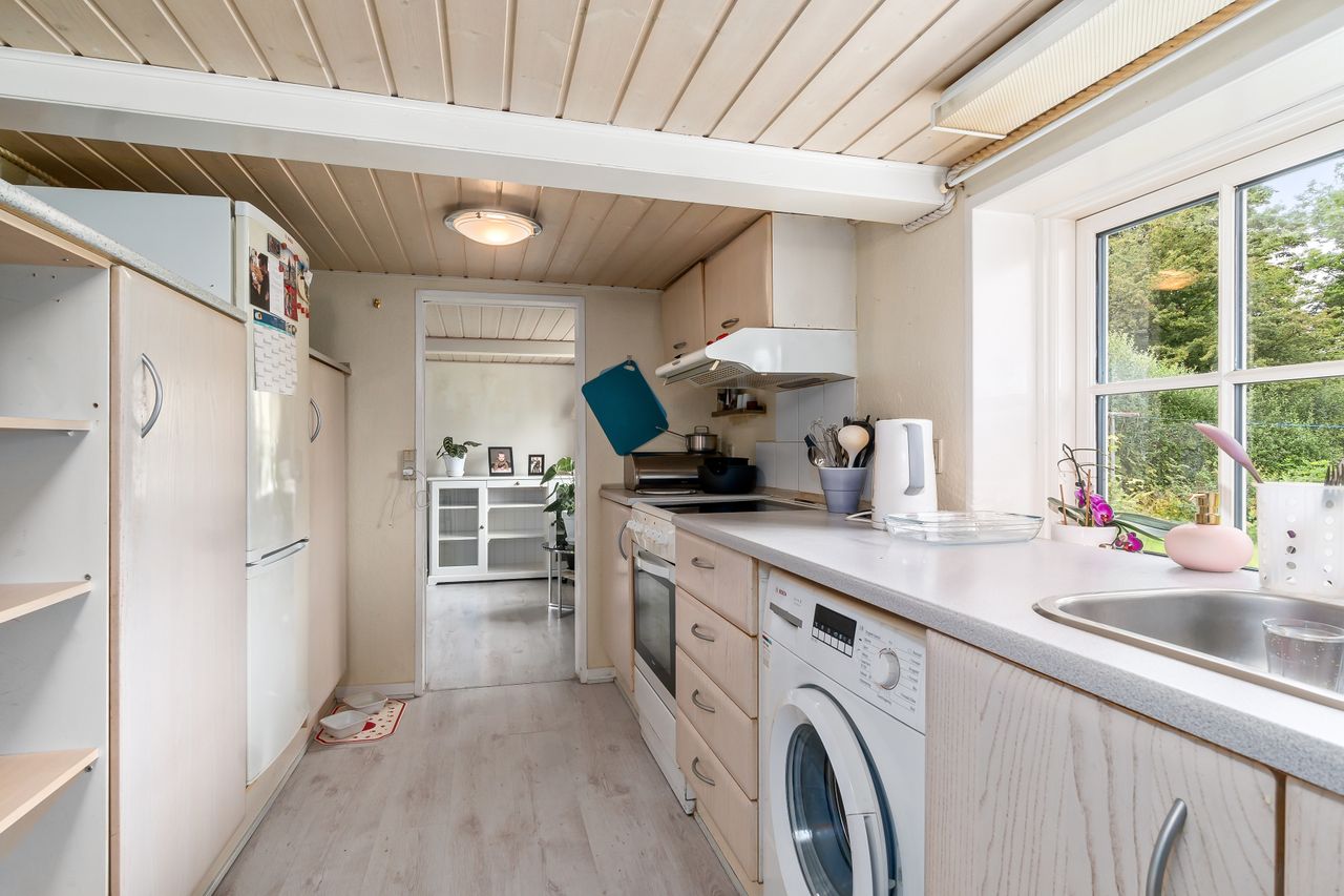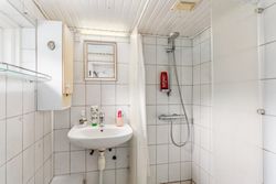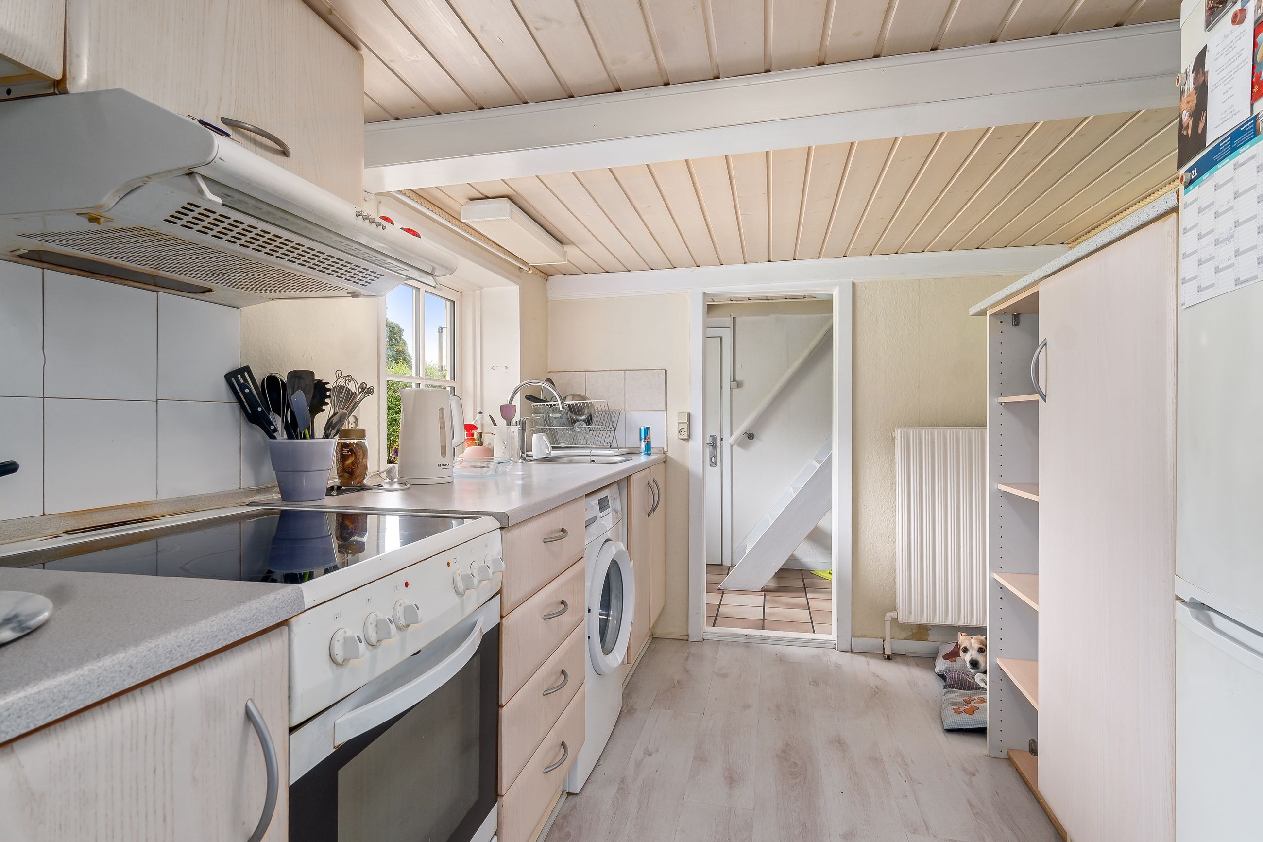 adgang til godt lyst køkken årg 2004. Godt badeværelse med brusehjørne og lyse klinker. Fra entreen er