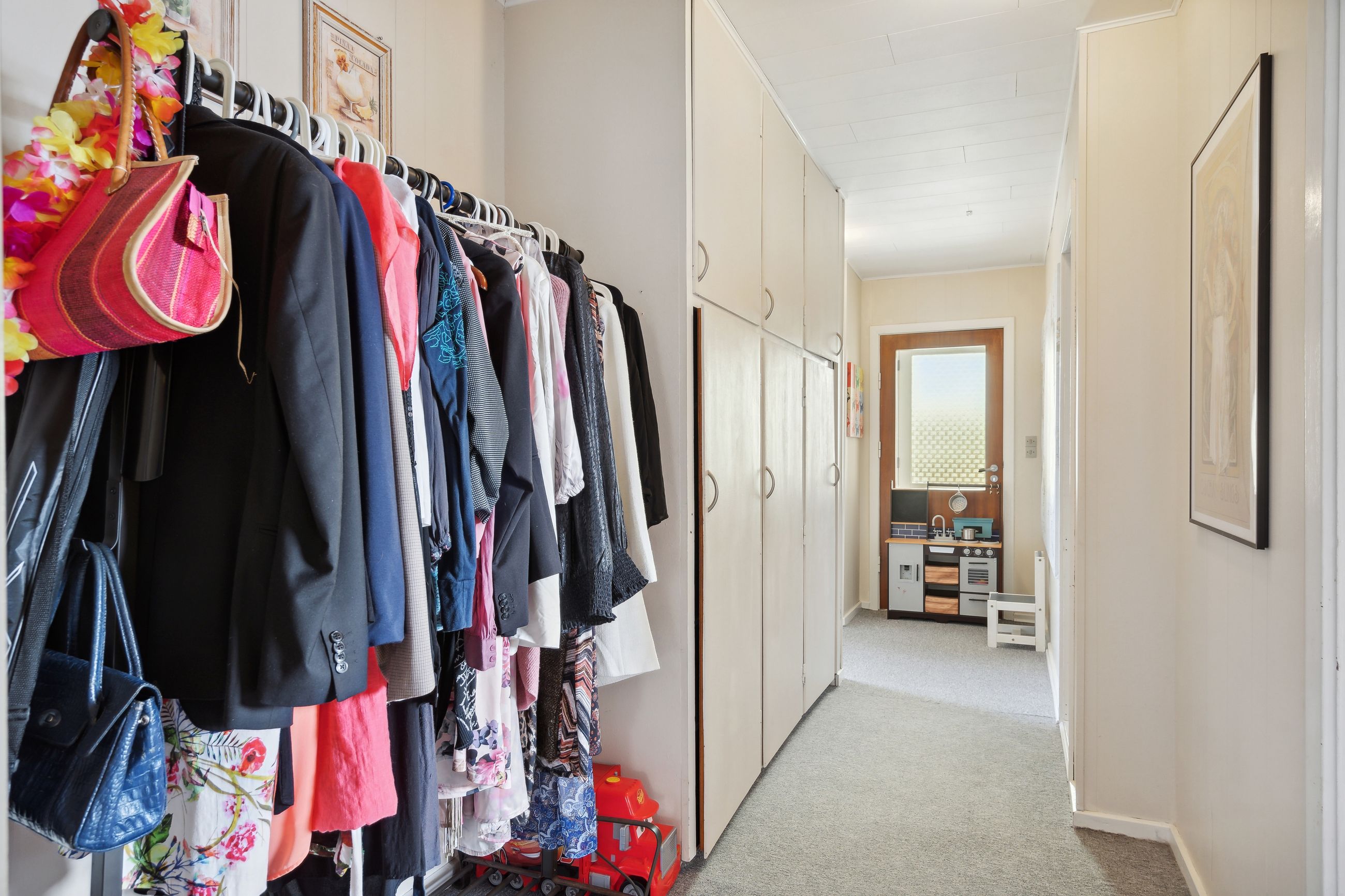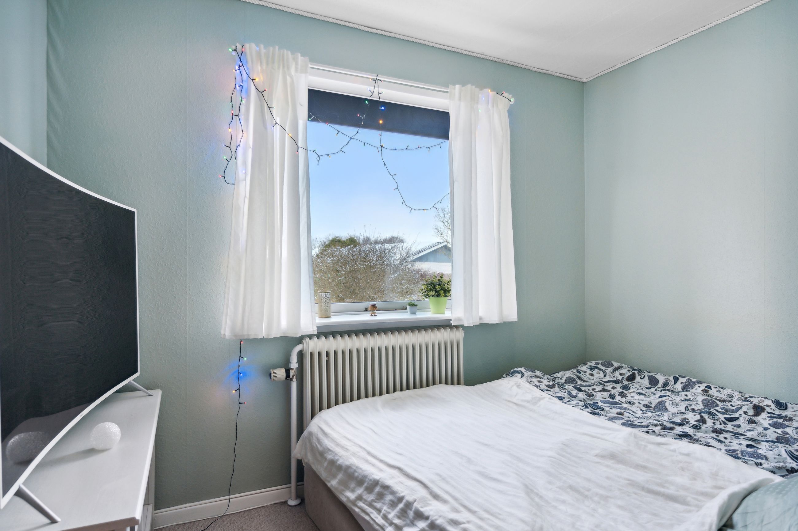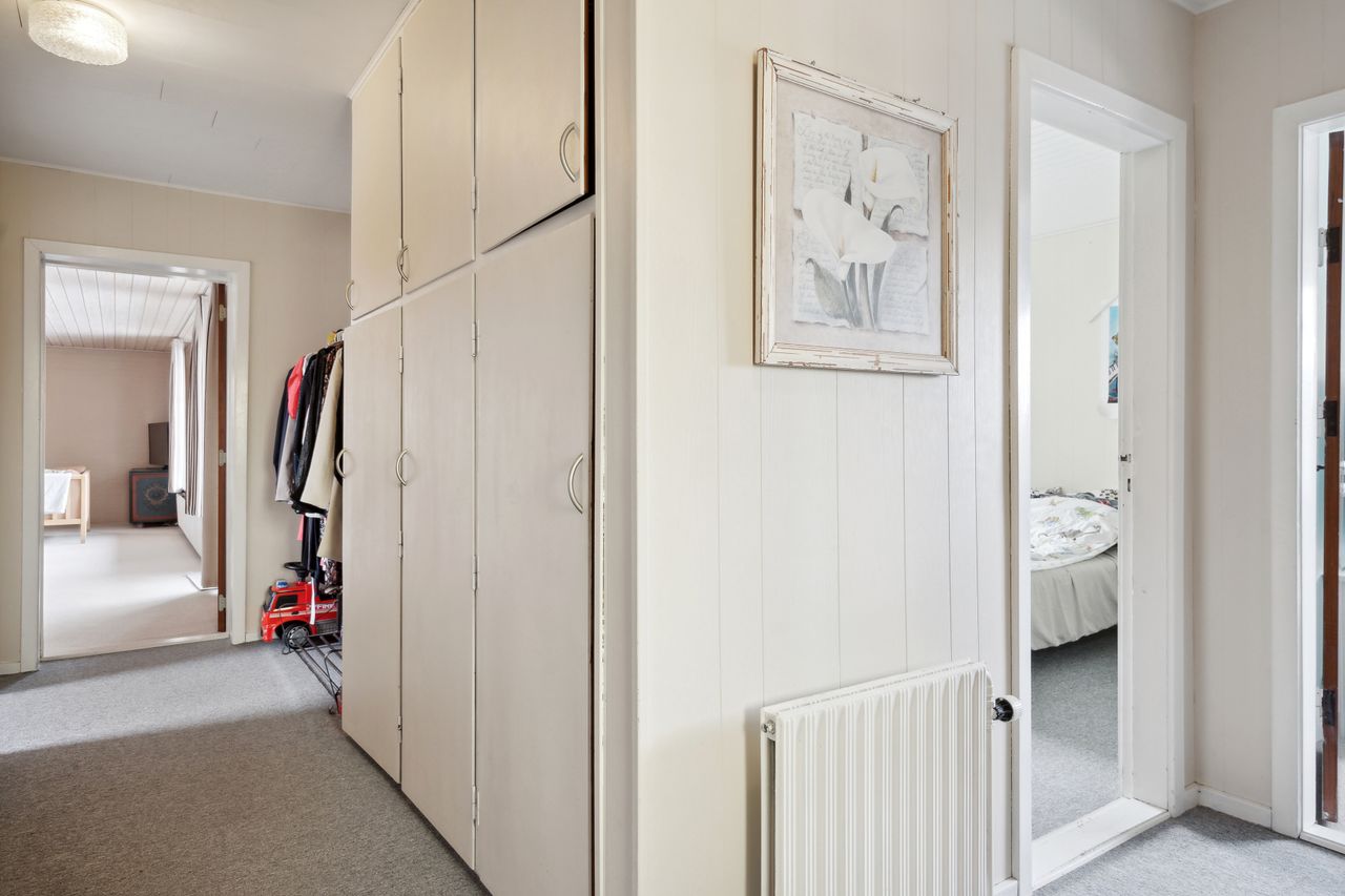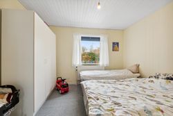 adgang via lille vindfang. Stort lyst soveværelse med skabsvæg.Udover soveværelset er der 2 gode