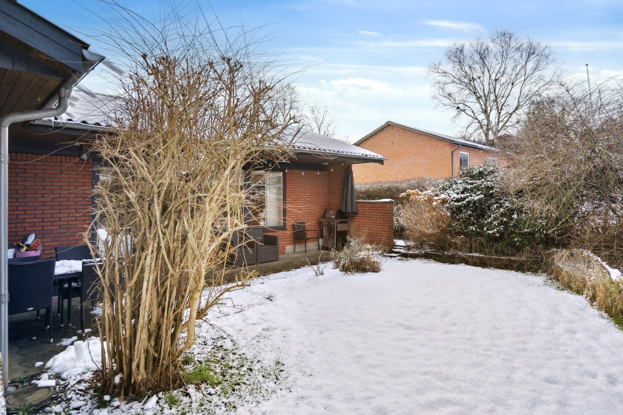 Denne hyggelige rødstensvilla er højtbeliggende på 1.051 m2 grundareal, i den centrale del af
