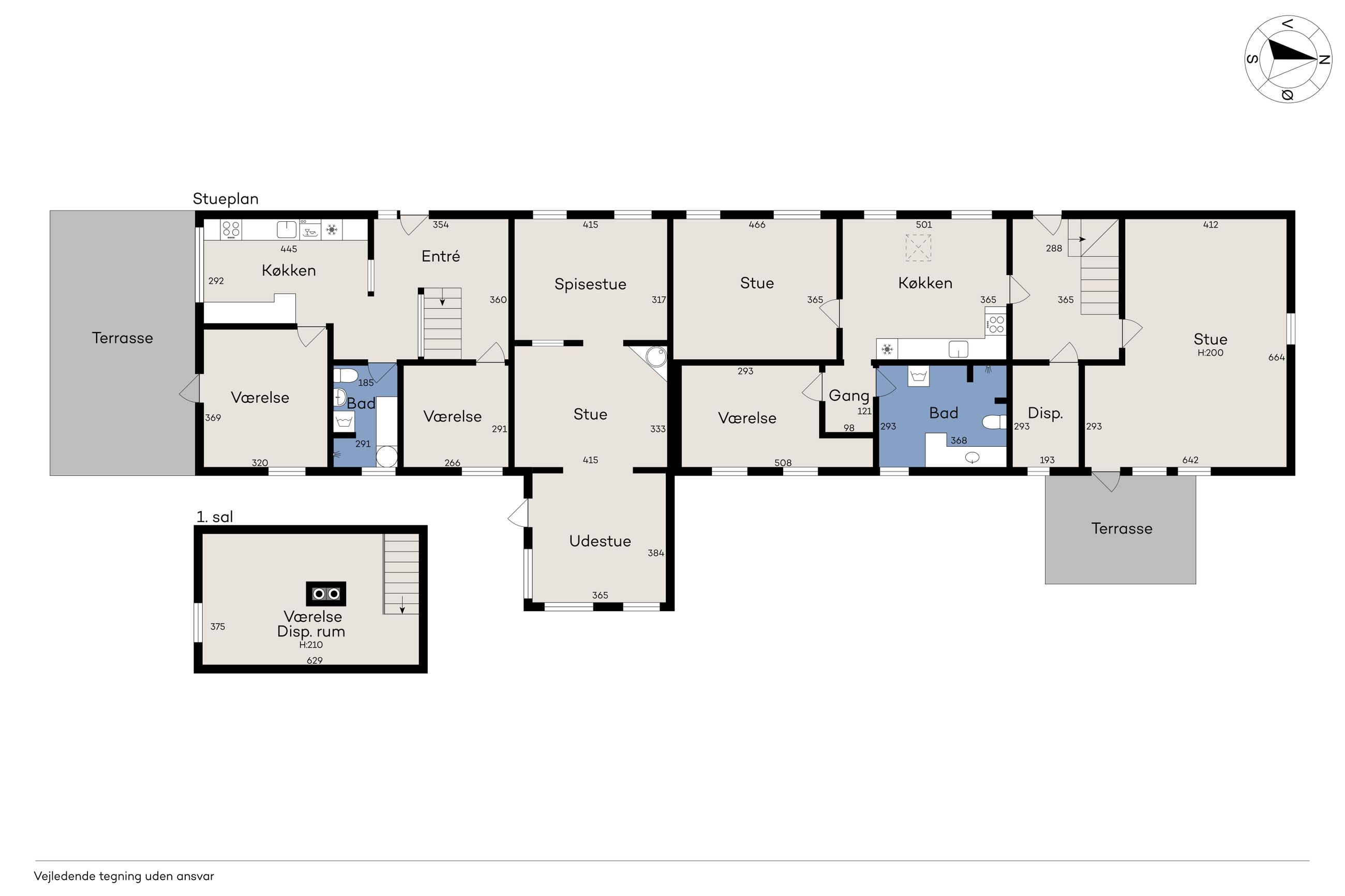 Dette rummelige 2- familieshus er beliggende i Skellet område , ca 15 km øst for Aalborg, umiddelbart vest for Mou by. Ejendommen er særdeles rummelig , pæn og velholdt med pæne rapporter. Huset er ideelt for de der ønsker en ejendom hvor der kan udlejes en lejlighed, eller hvor storfamilien kan rykke ind. Boligerne består af : Aalborgvej 70 : 83 m2 beboelse i stueplan, samt ca 20 m2 loftetage , der dog ikke er reg som bolig , men umiddelbart tilgængelig. Denne lejlighed indeholder rummelig entre , køkken/alrum, TV stue, godt badeværelse, soveværelse , stor stue i åben forbindelse til skøn, lys og præsentabel udestue. Aalborgvej 70A : 127m2 renoveret og nymalet lejlighed. Super indflytningsklar. Stor entre / forgang. Rummeligt køkken/alrum. Fint bryggers. Godt stort badeværelse , stor stue samt 3 gode værelser. Ejendommen opvarmes via kvalitets varmepumpeanlæg luft / vand , installeret 2018. Til ejendommen hører der 40 m2 udhus / garage , samt 32 m2 carport, der hører til nr 70.Grundarealet er rimelig stort, da bygningsparcellen er på 1.458 m2 med skøn have.Vedr. afløbsforhold: Ejendommen er pt. under omkloakering og ejendommen tilkobles indenfor nær fremtid til offentlig kloak. Omkostninger herved ca kr 100.000 - Dette beløb afholdes af sælger !!