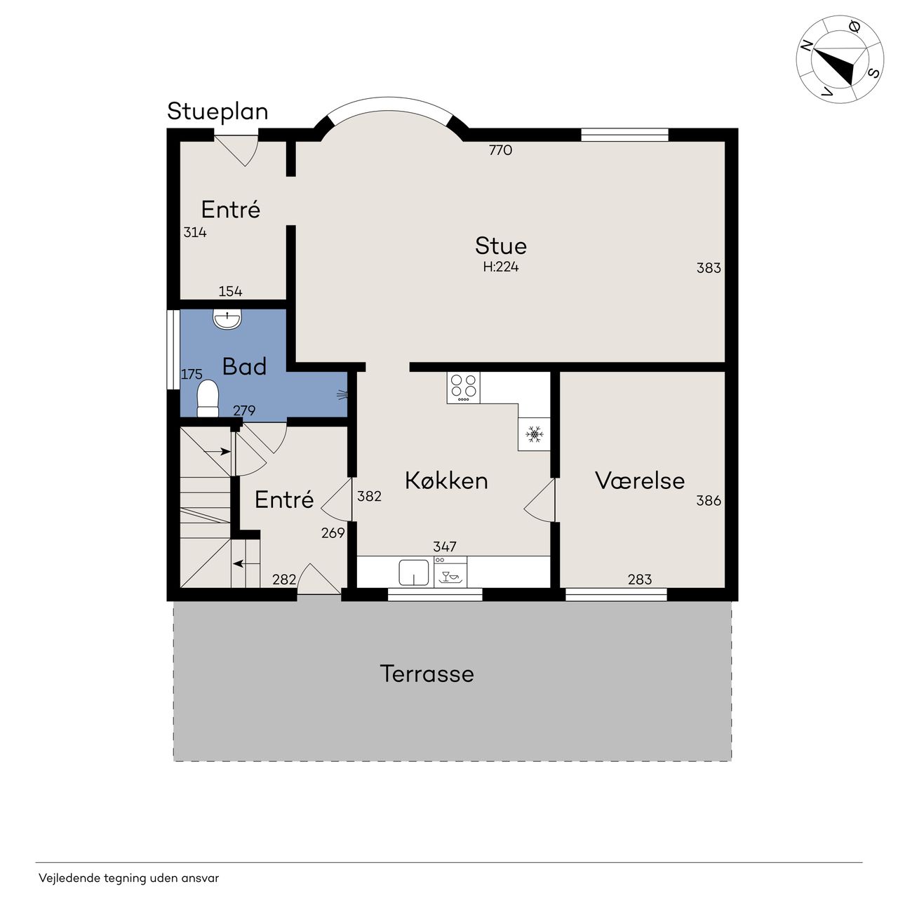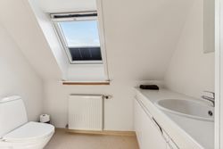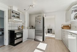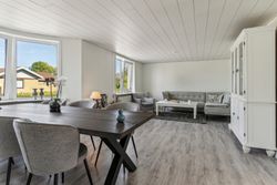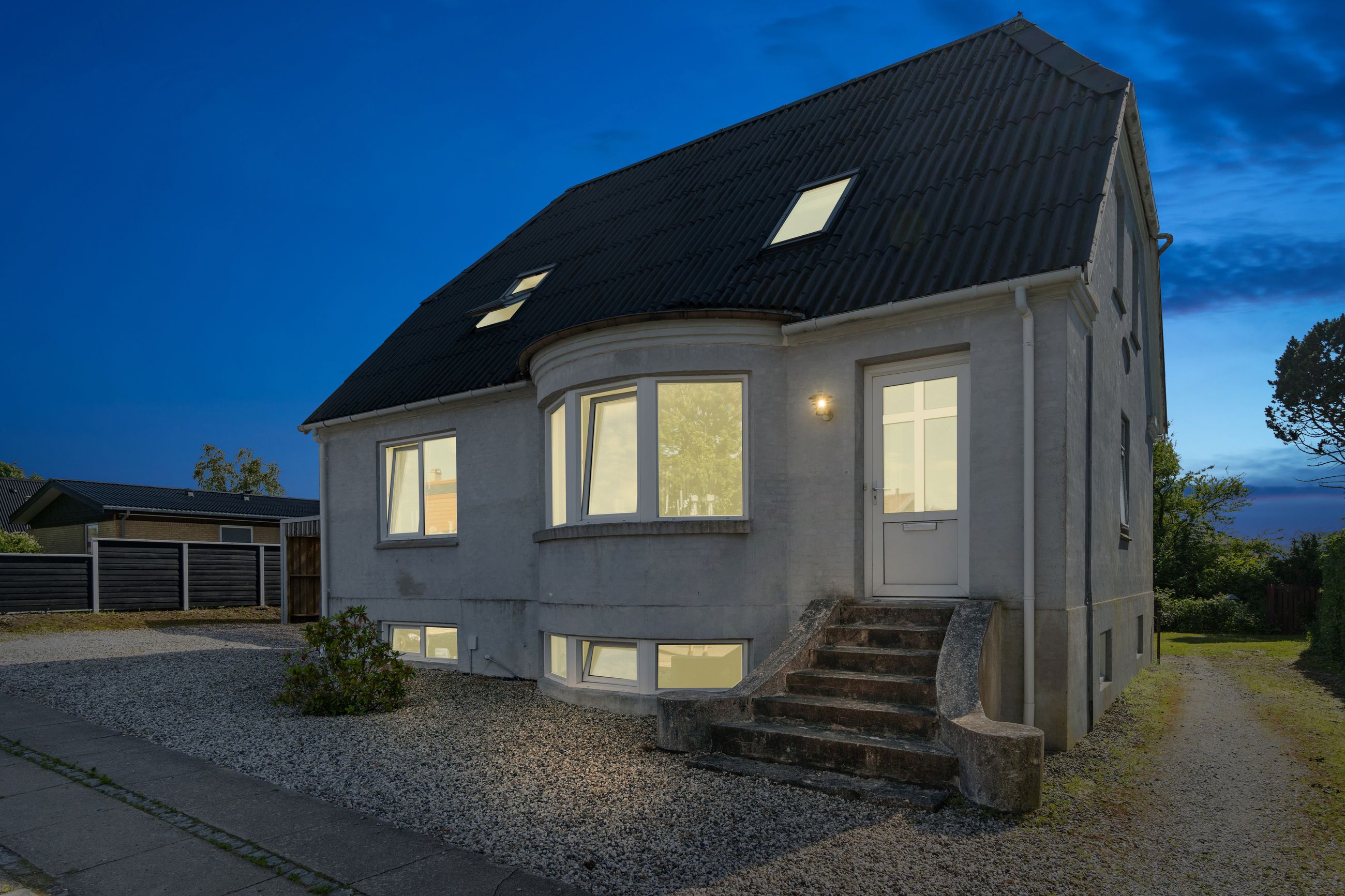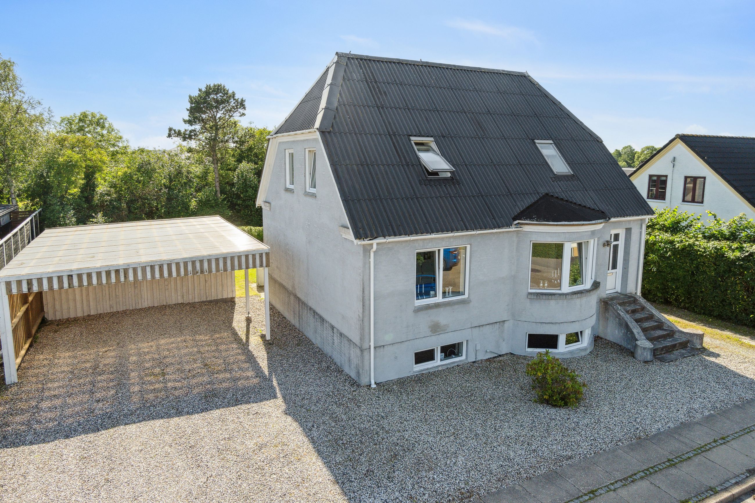 Denne velpassede villa er beliggende centralt i Terndrup by med kort afstand til alle byens faciliteter. Villaen er indrettet med stueplan , kælder og 1. sal og er gennem de seneste 20 år renoveret på mange punkter. Nyere eternit tagdækning Årg 2015 . Vinduer i plastkarme, og interiøret i huset har gennemgående fået renovering løbende. Kloakker er renoveret med nye rør fra hus til gaden i 2001 Villaen fremstår med pæn, lysgrå, malet facade. Velkommen til en praktisk og god entre, flisebelagt med 60/60 klinker i lysgrå. Rummeligt badeværelse med bruseniche og bademiljø. I badeværelset er der klinkegulve , ligeledes med 60/60 fliser som entre. Godt og praktisk, rummeligt køkken i lyse farver. Fra køkkenet er adgang til et værelse, der tidligere var en del af køkkenområdet og , hvis ønsket, kan adskillelsen umiddelbart fjernes igen. Husets stue er lys og rummelig med karnap mod gaden. Gulvbelægningen er præsentable laminatgulve i gråt look. I forbindelse med stuen er der entre, med adgang fra gaden. God lofthøjde i stueplan ca 2,25 m.Fra baggangen er trappe til 1. sal , der er indrettet med fordelingsgang, 3 store værelser , hhv. 10 m2 , 14 m2 og 17 m2. godt toilet / bad ( ej reg. i BBR) og fordelingsgang. Gulvene på 1. sal er flotte slebne plankegulve der fremstår i naturtræ. Lofthøjde på 1. sal er 2,32 på de vandrette flader.Huset er indrettet med god og anvendelig kælder på 86 m2 jvf BBR, hvor der findes vaskerum samt flere gode depotrum. Lofthøjde 2,05 m. Der er adgang til kælderen, både fra baggangen , samt fra havesiden. På vestsiden af huset er der terrasse i husets længde. Nem have med græsbelægning. Til huset hører dobbelt carport med tilhørende udhus 25 m2.Huset opvarmes via fjernvarme. Senest årlige udgift hertil er ca kr 17.000-