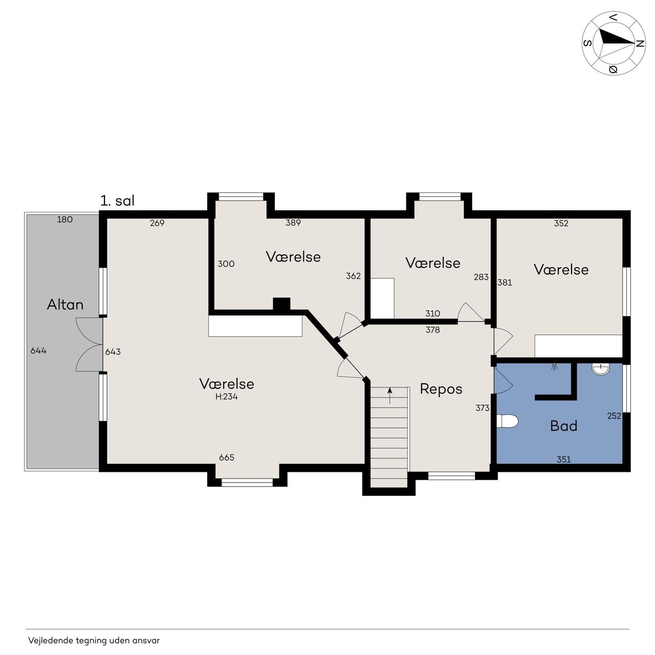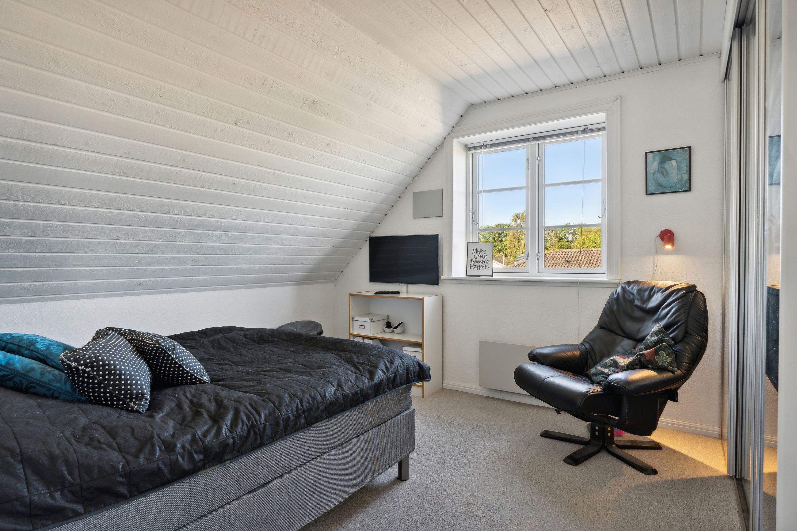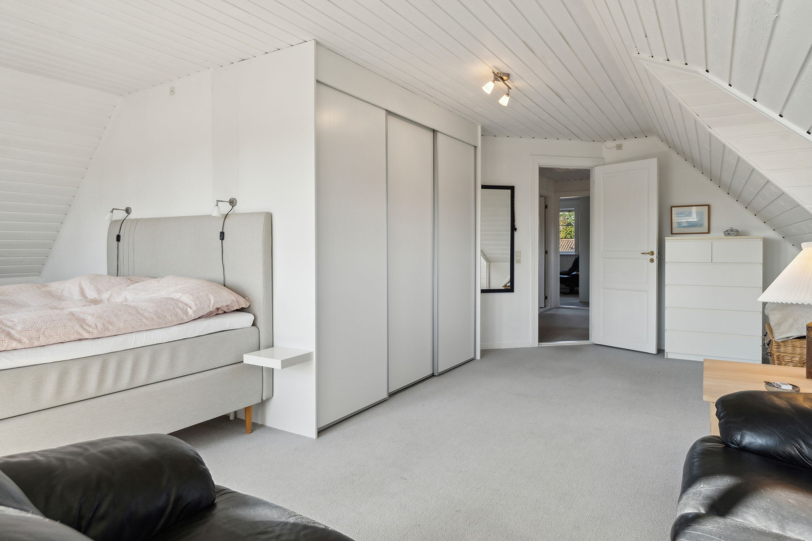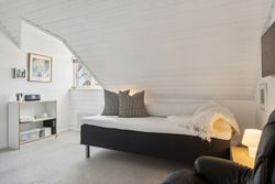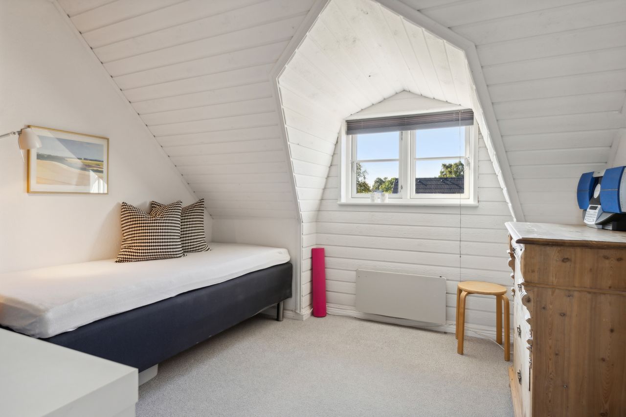 Fra trappegangen kommer man op til et stort repos der giver mulighed for kontorhjørne i forbindelse med de indbyggede kviste der giver fornødent lysindfald. De øvrige værelser kan let tilpasses familiens skiftende behov – hvad enten det drejer sig om børneværelser, kontor eller hobbyrum.