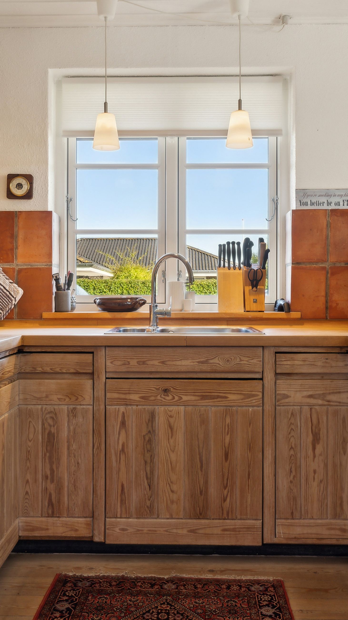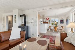 Indenfor mødes du af en rummelig atmosfære fordelt over to etager. Fra entreen er adgang til det praktiske og originale køkken , med spiseafdeling. Husets opholdsstue er forsynet med brændeovn , der kan supplere fjernvarmeforsyningen. Fra stuen er adgang til både sydvendt skøn og lukket terrasse samt den vestvendte udestue.