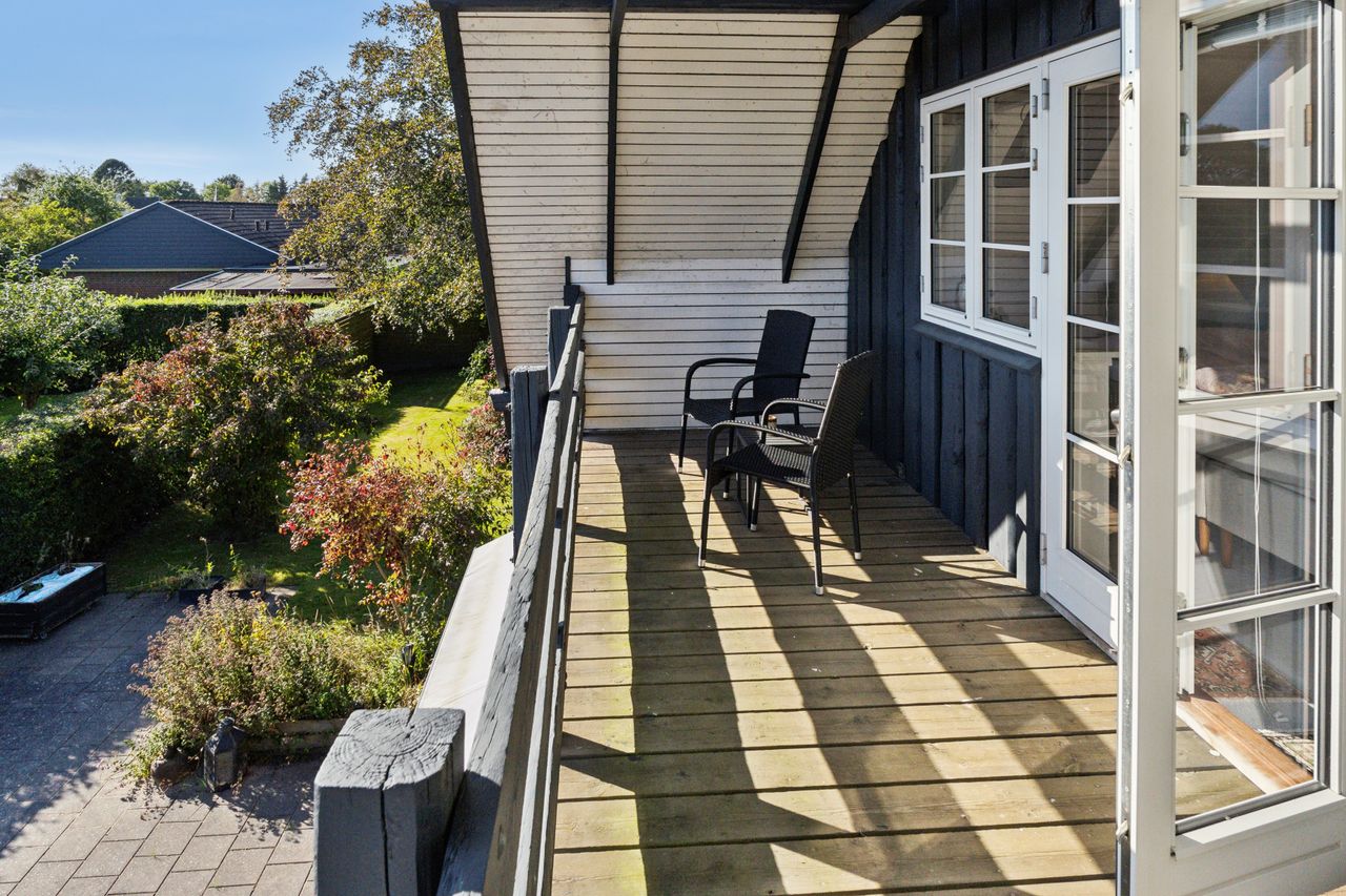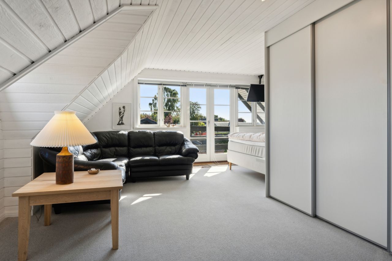 Huset rummer seks gode værelser, inklusive et imponerende master bedroom, som kan blive din private oase. Her er der plads til at indrette både soveværelse og eventuelt en hyggelig læsekrog eller arbejdsplads efter behov. Fra Masterbedroom er der adgang til stor sydvendt svalegang.