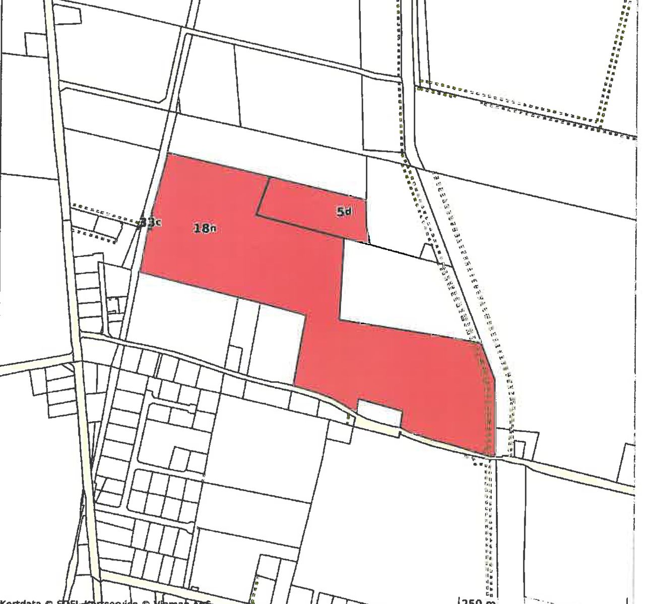 Ejendommen er bygningsløs , og skal ved salg, sammenlægges med anden landbrugsejendom med bygninger.