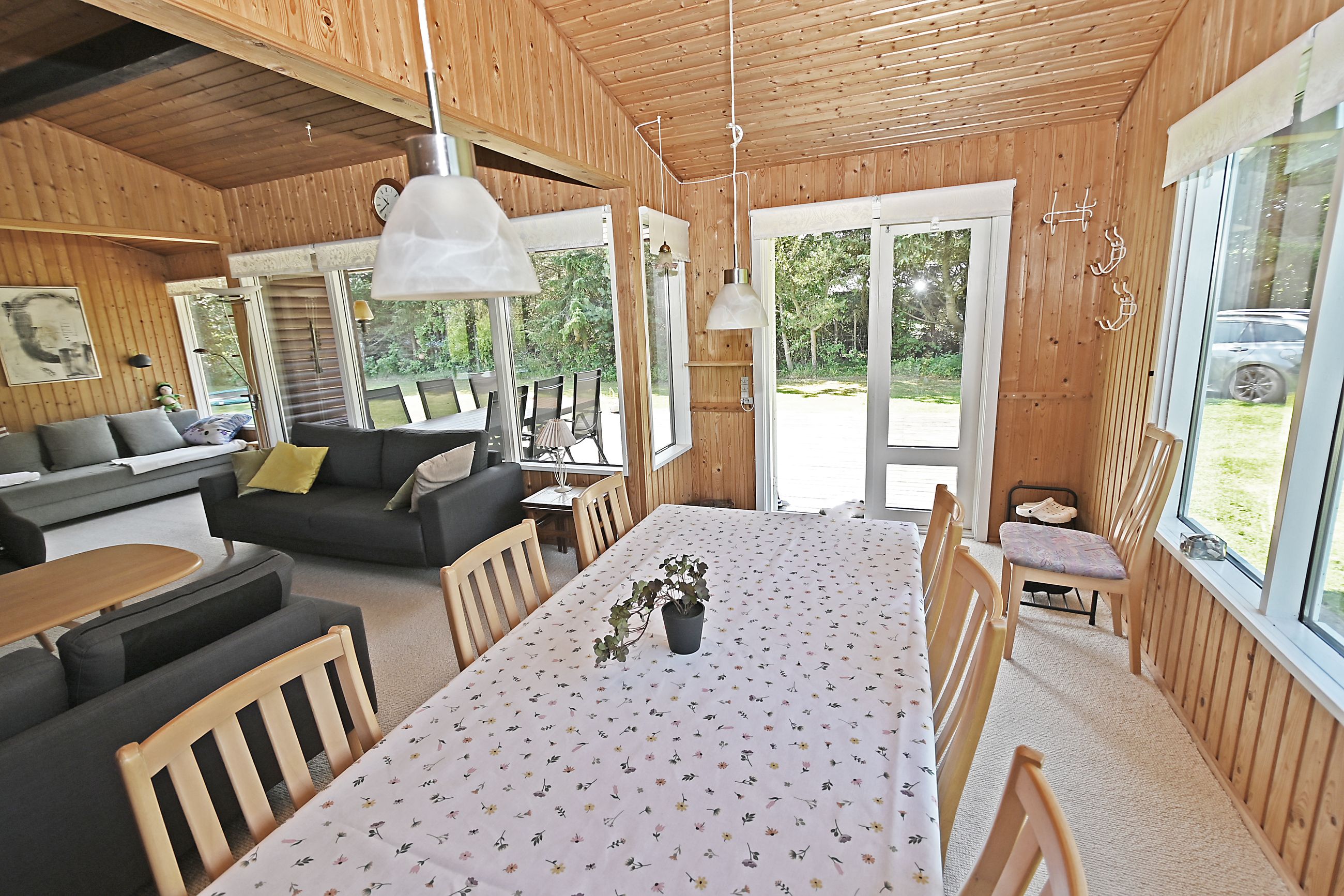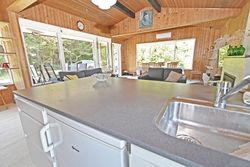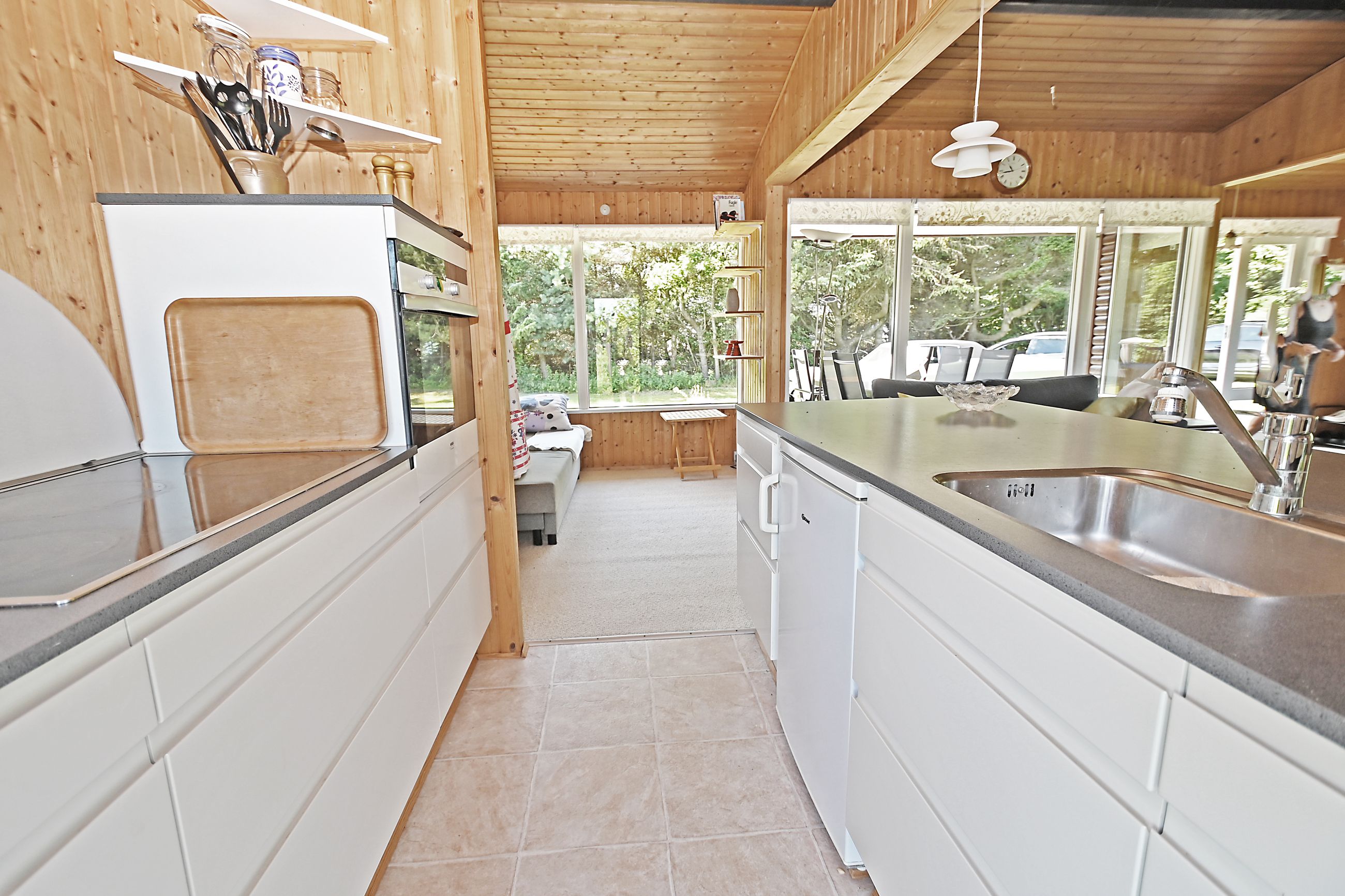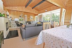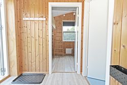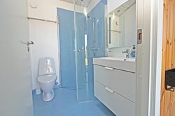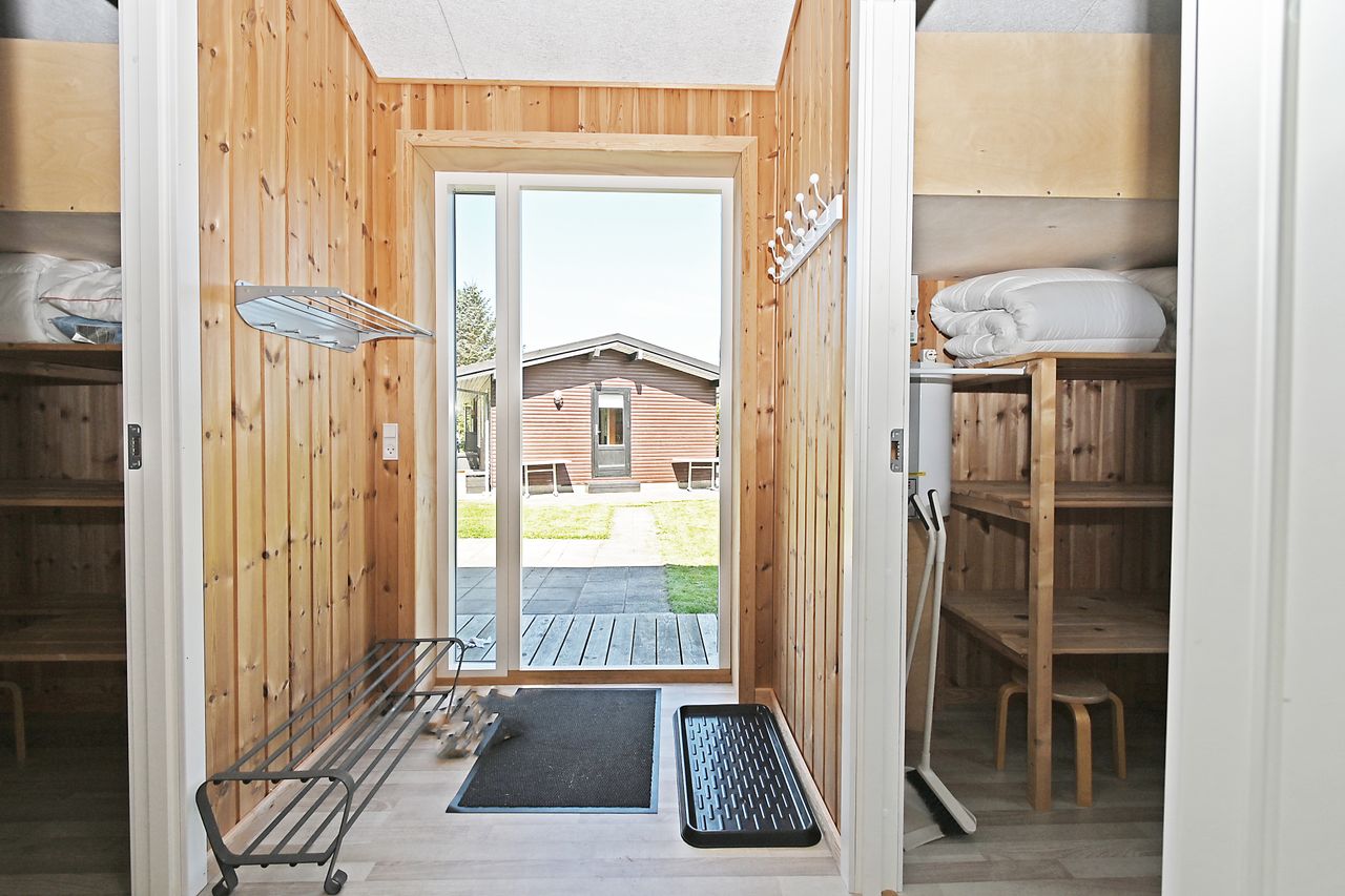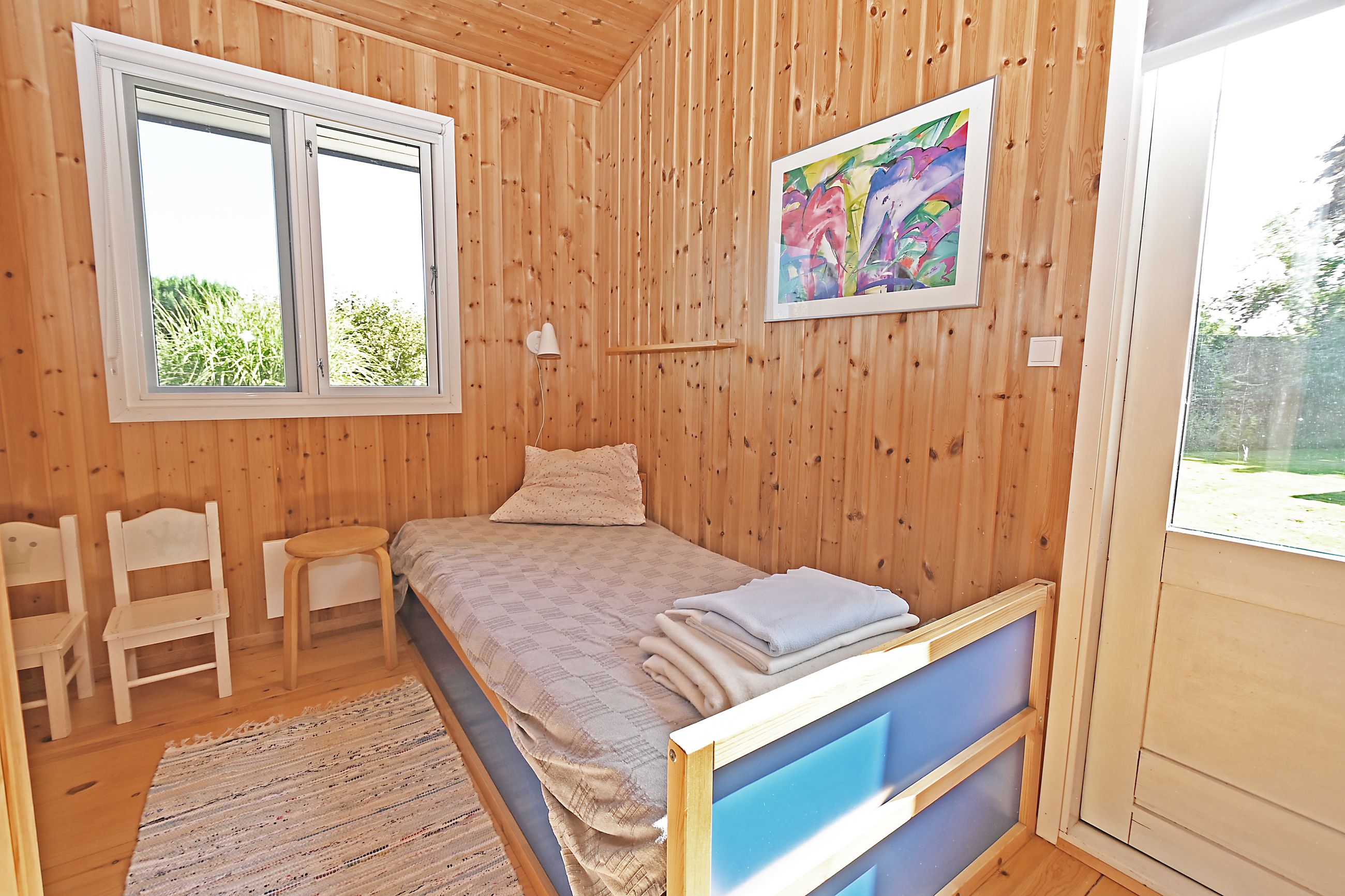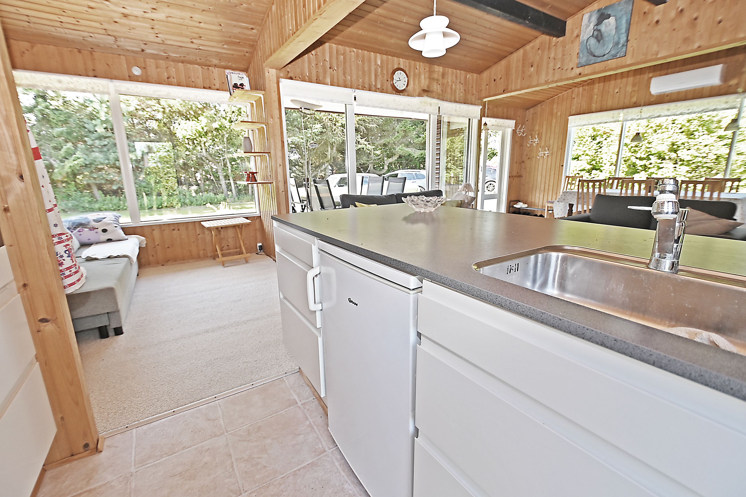 Fra køkkenet er adgang til den nordlige del af huset. Fra stuen er adgang til husets værelsesafsnit via fordelingsgang, der giver adgang til rummeligt badeværelse med bruseniche samt bademiljø. Huset rummer 3 gode værelser/køjerum, med ialt 5 sovepladser. Det ene værelse har adgang til østvendt terrasse , og fra stuen er der adgang til skøn, sydvendt træterrasse på ca + 30 m2.