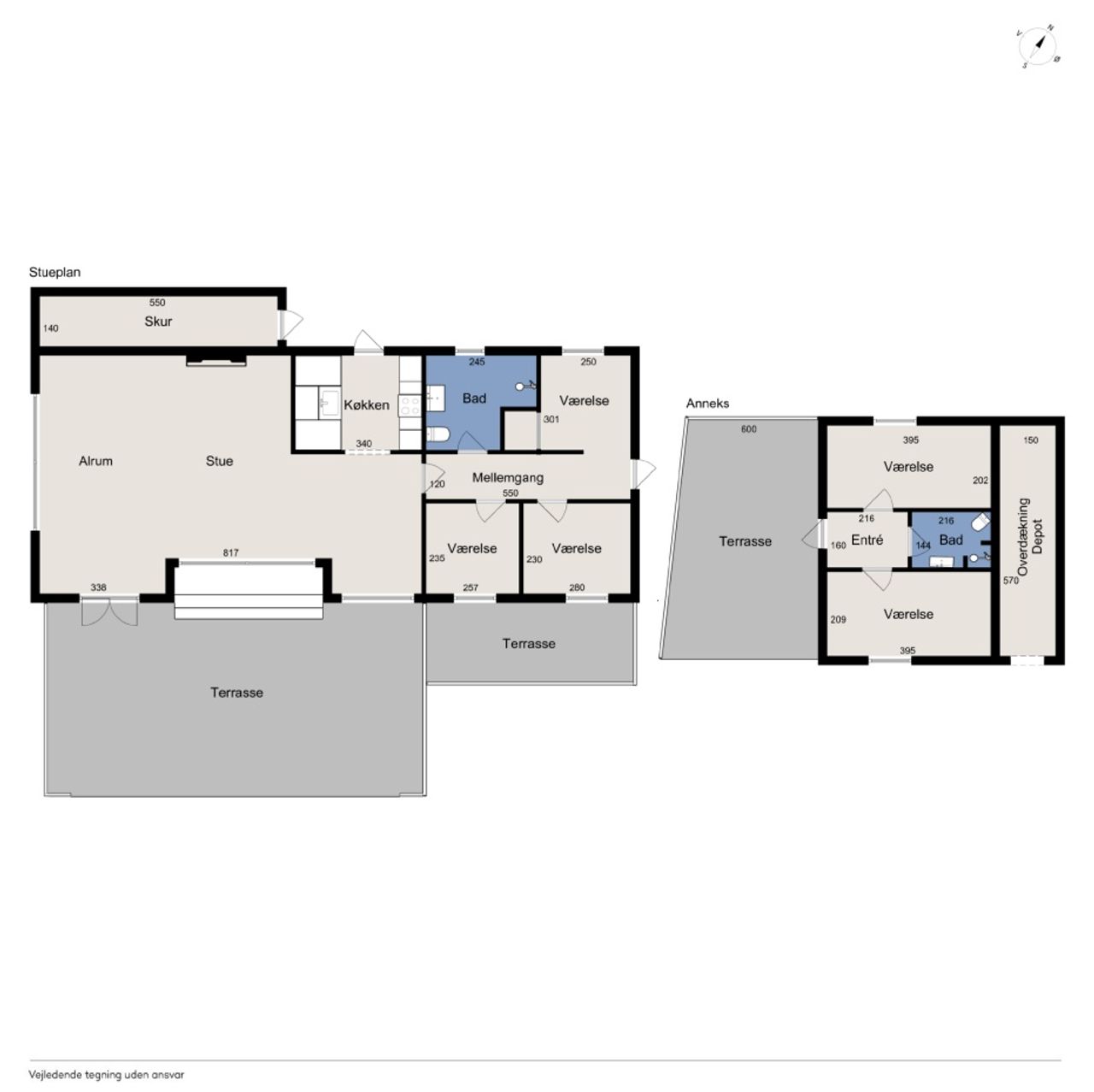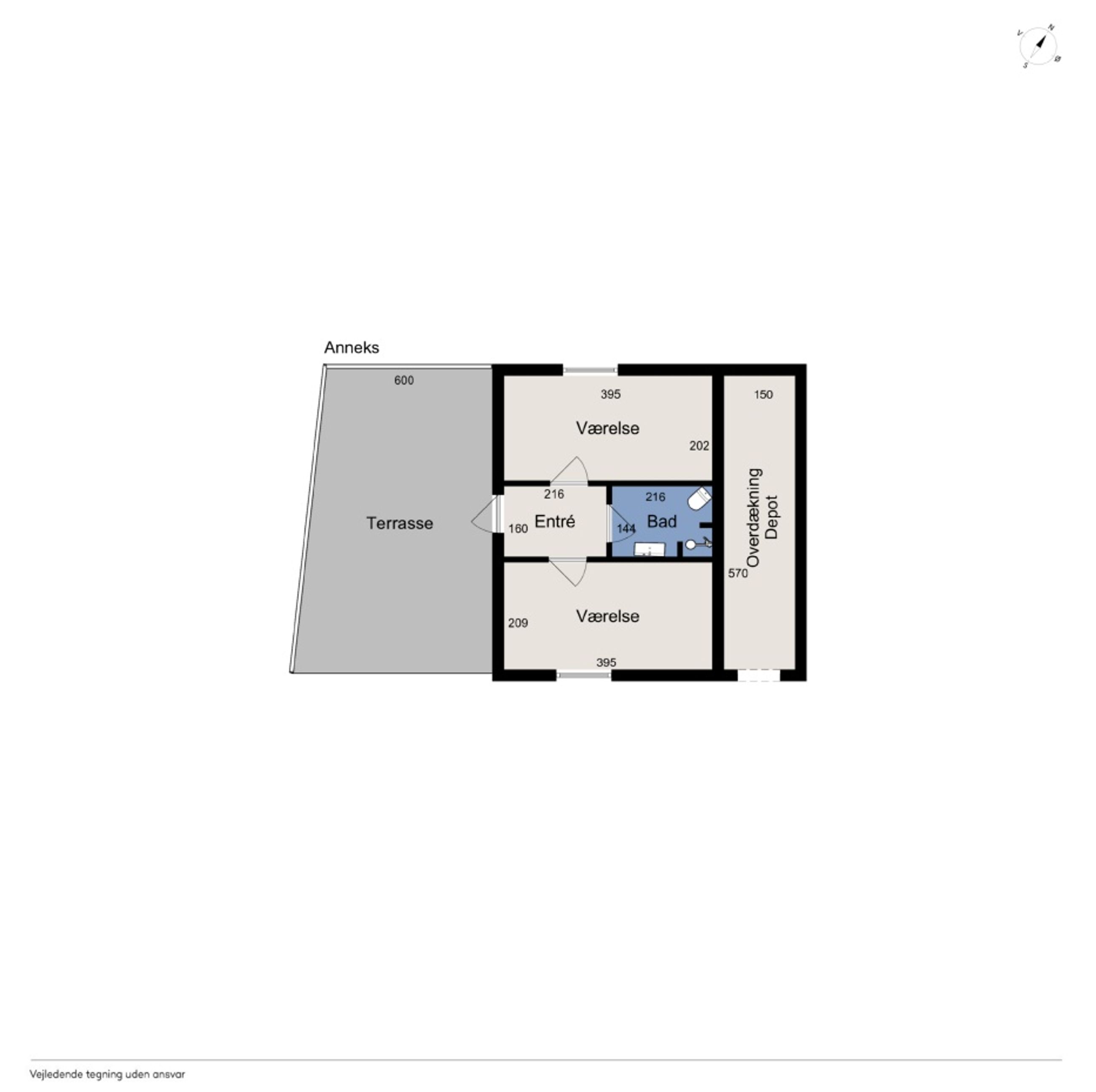 Særdeles indbydende og velbygget anneks på 28 m2 registreret til beboelse. Denne skønne supplerende mulighed for ophold og bolig byder på indgang til rummelig fordelingsgang med garderobe og plads til fodtøj etc. og med adgang til : Godt, rummeligt, lyst og tiltalende badeværelse med bruseniche og bademiljø. I badeværelset findes godt lysindfald via Velux tagvindue. Annekset rummer desuden 2 værelser a ca 8 - 9 m2 der faktisk giver mulighed for ialt 8 sovepladser. Anneksbygningen er velisoleret , opført med fast sokkel, hævet fra terræn. opført med træbeklædning med tagdækning i eternit.