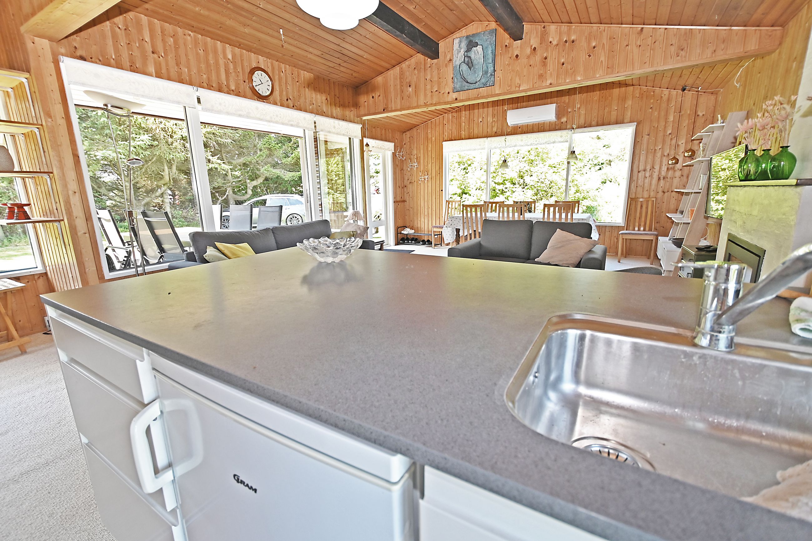 Velkommen indenfor til en rummelig stue, der byder på masser af hygge og atmosfære. Loft til kip, der giver den gode rumfornemmelse. Stuen byder på spiseafdeling med plads til 8-10 personer , åbent køkkenafsnit i lyse elementer årg 2021 , plads til sofagrupper samt masser øvrig plads . I stuen findes indbygget pejs ,alder ukendt, samt varmepumpe luft/luft installeret 2024. Stuen giver mulighed for ekstraordinær udnyttelse med flere siddegrupper tillige med den relativt store spiseafdeling.