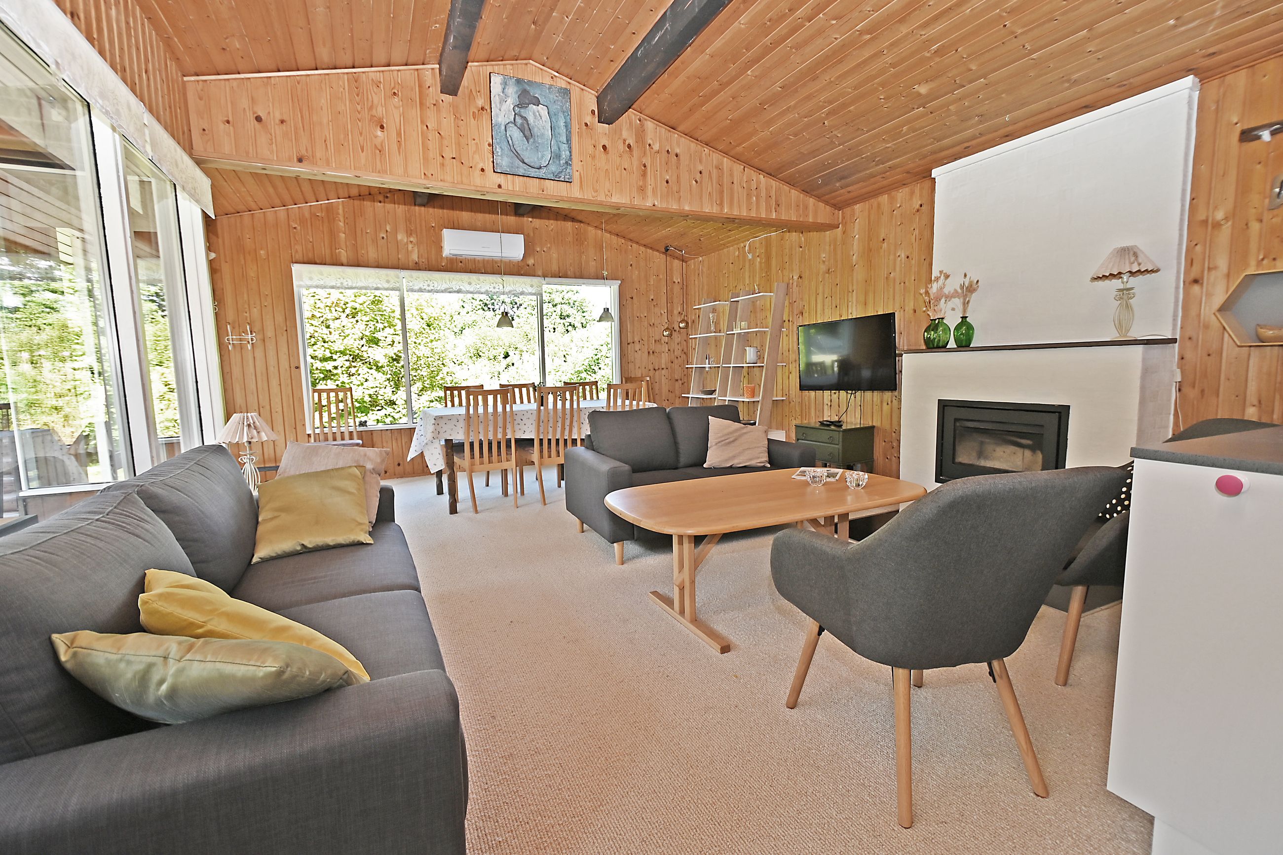 Det primære hus opvarmes via luft/luft varmepumpe årg 2024 samt indbygget pejs.