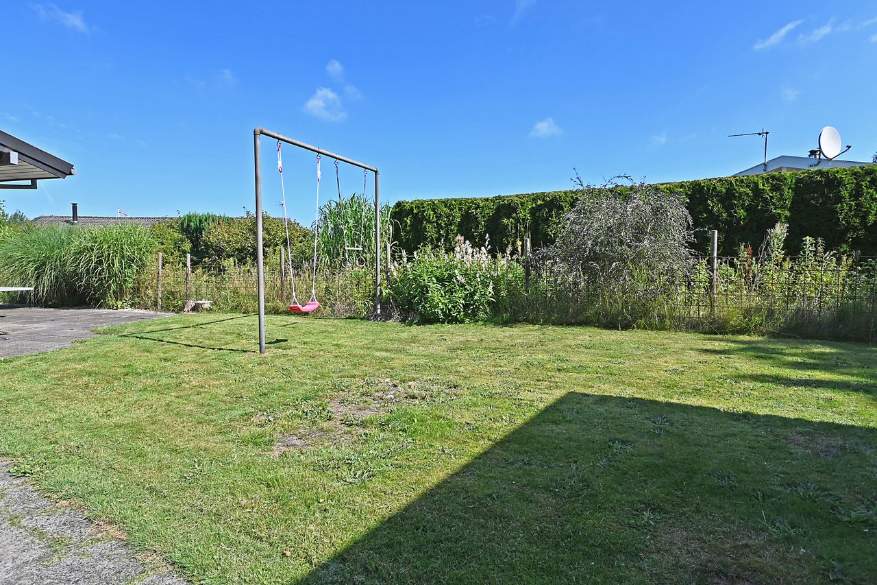 På nordsiden af boligen er der indrettet lille redskabshus/værksted med teknikafdeling.