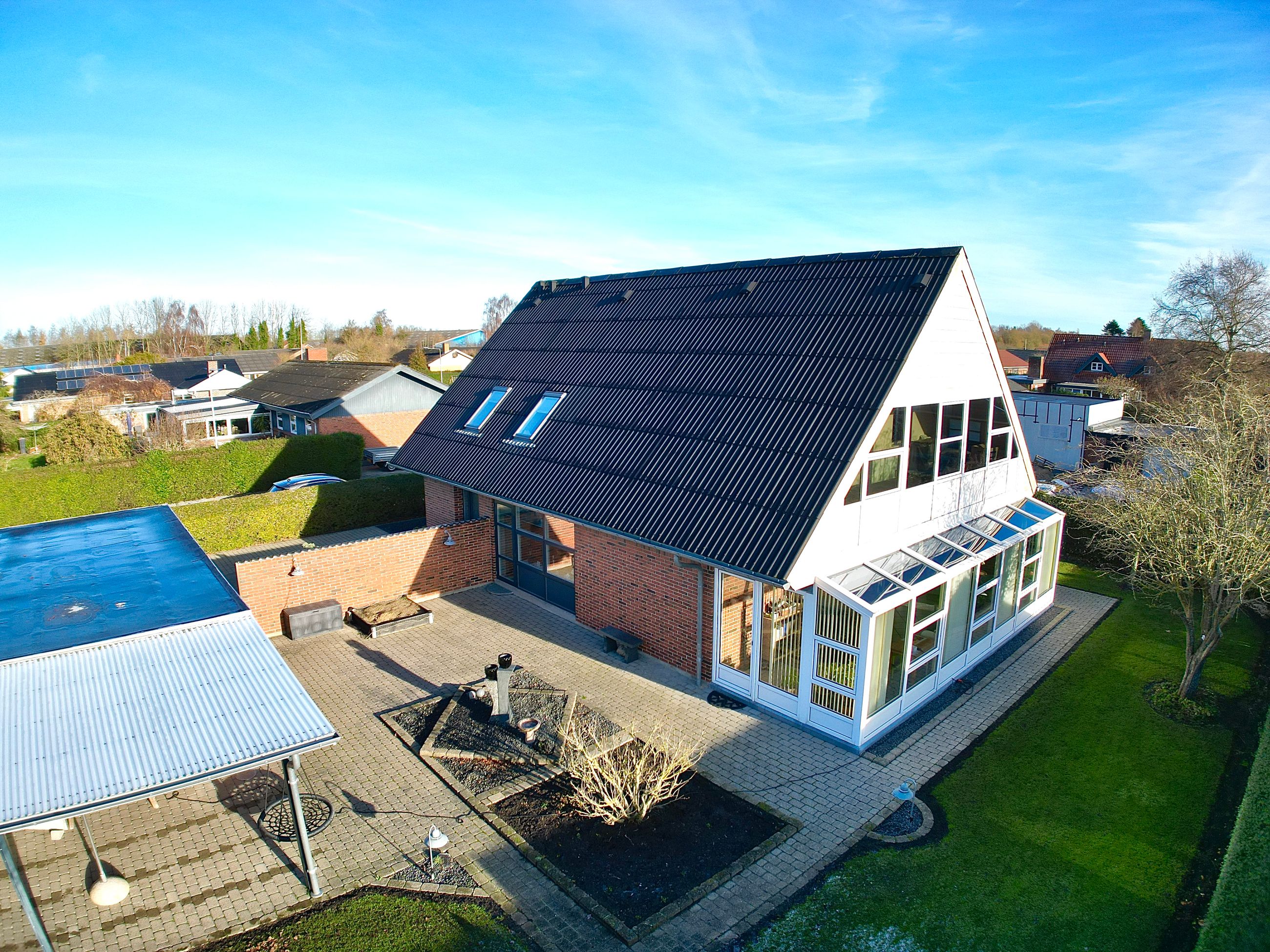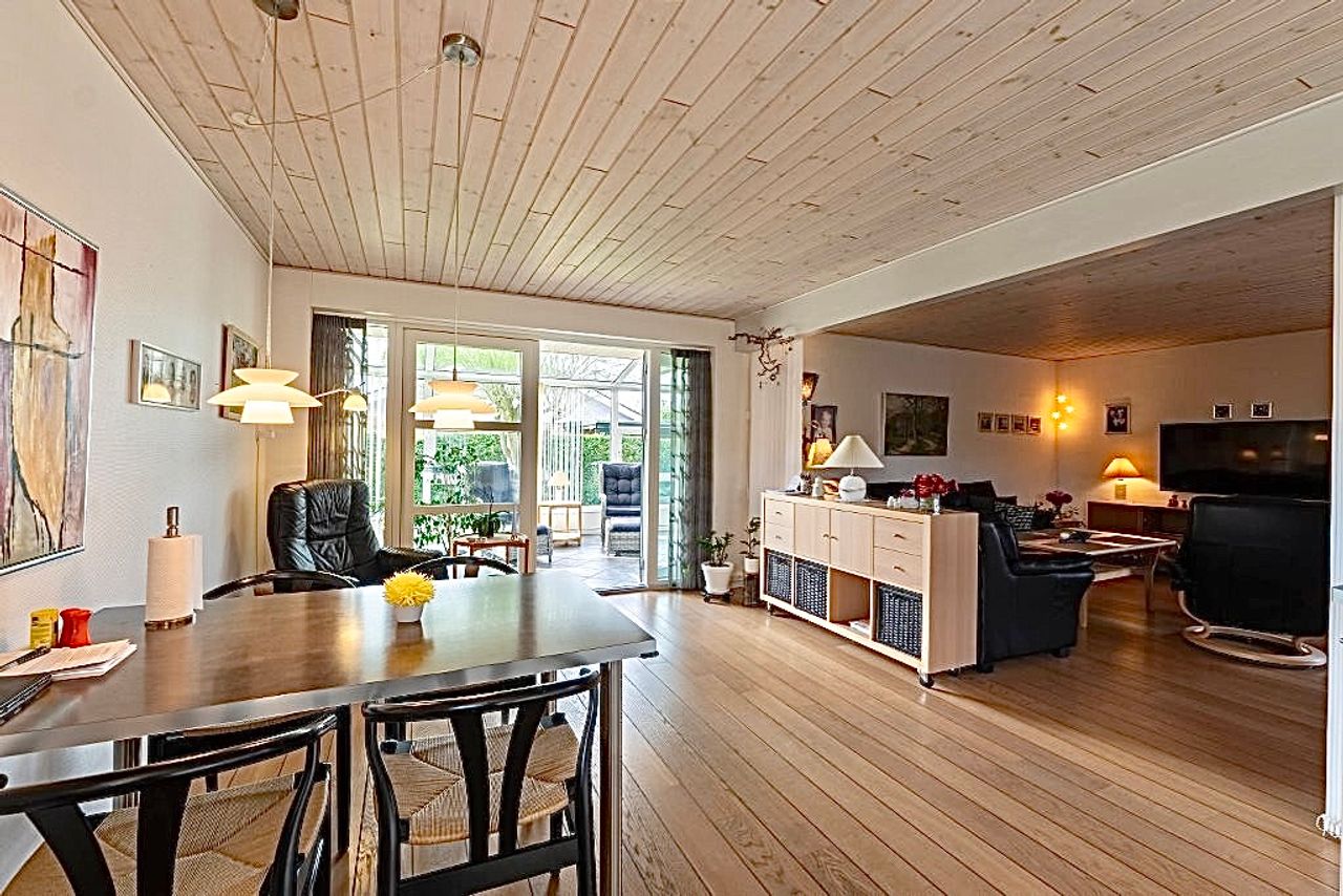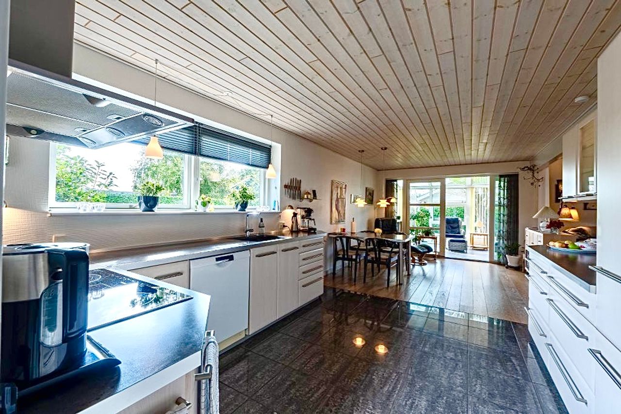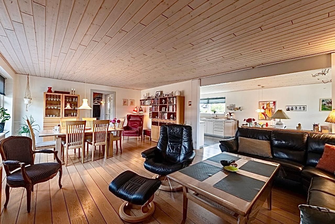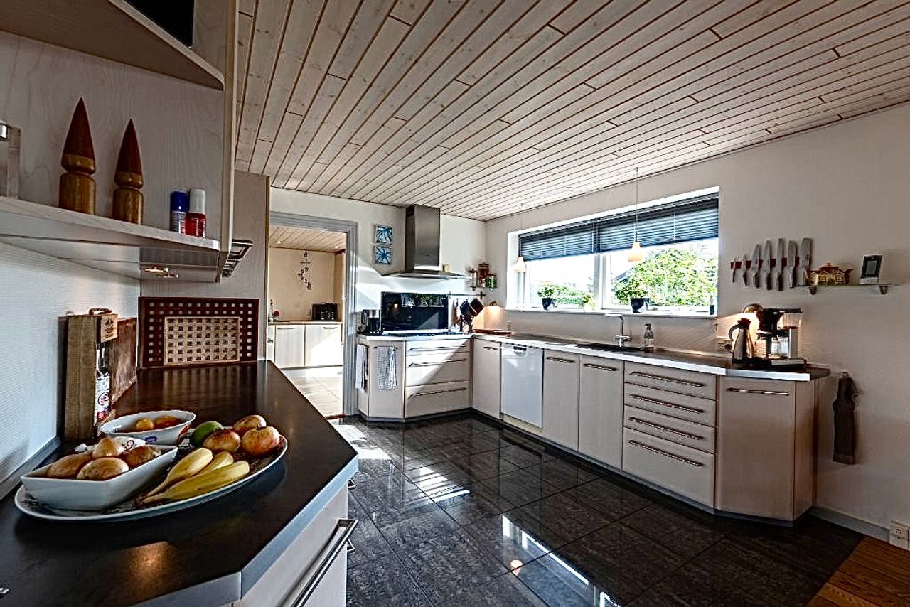 Flot og velpasset villa. 198 m2 + 77 m2 garageanlæg.