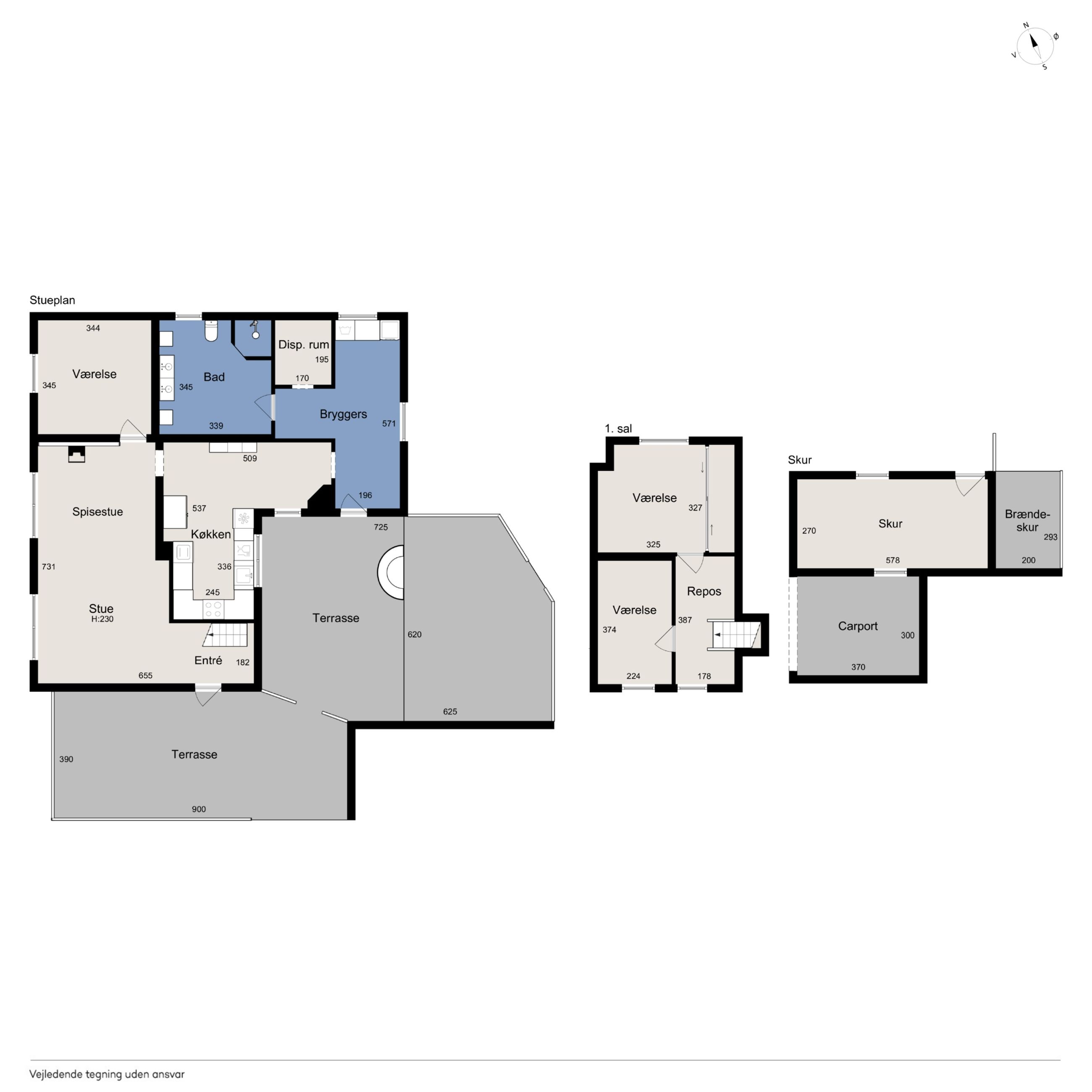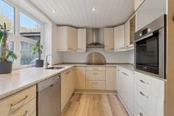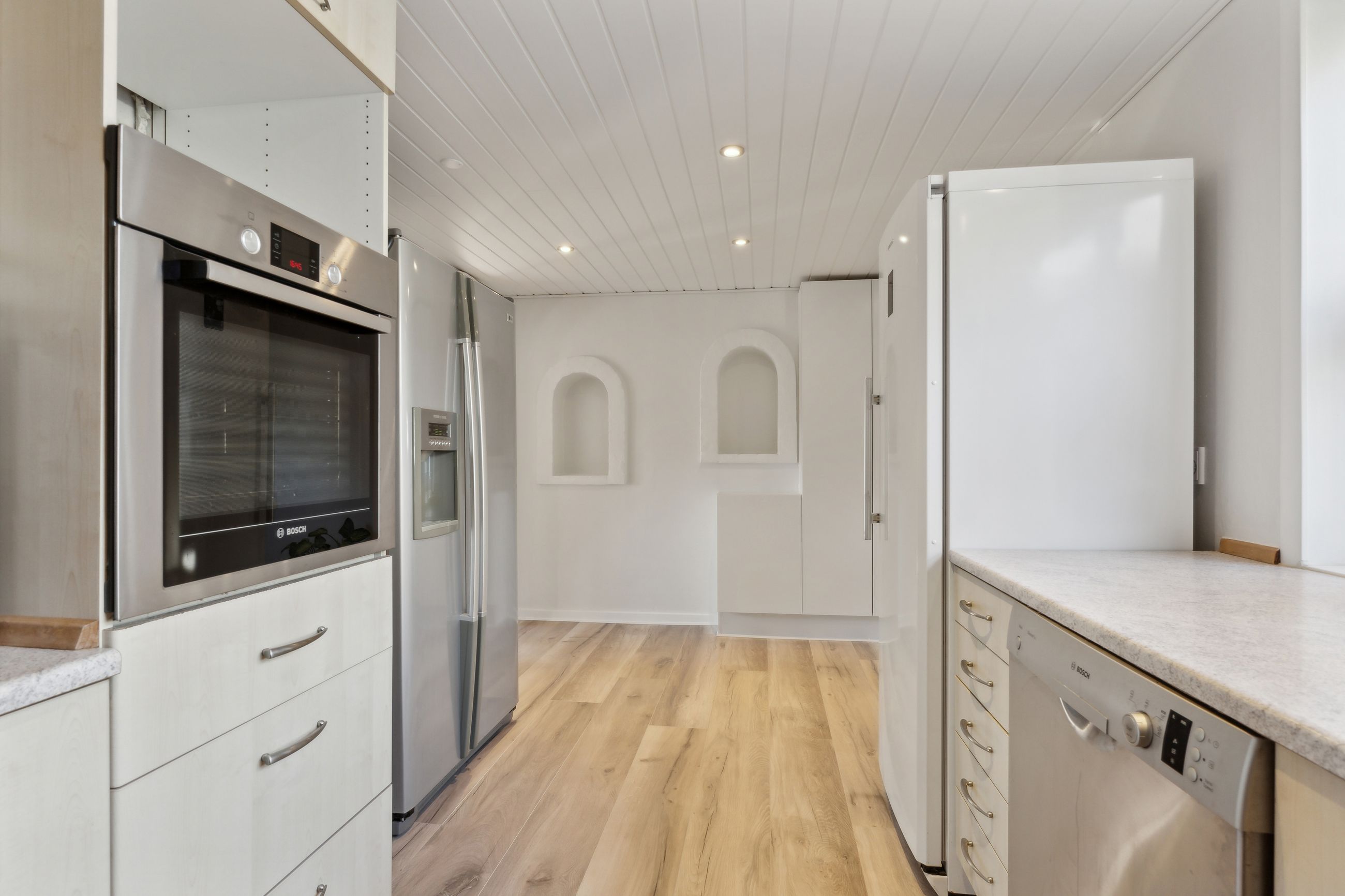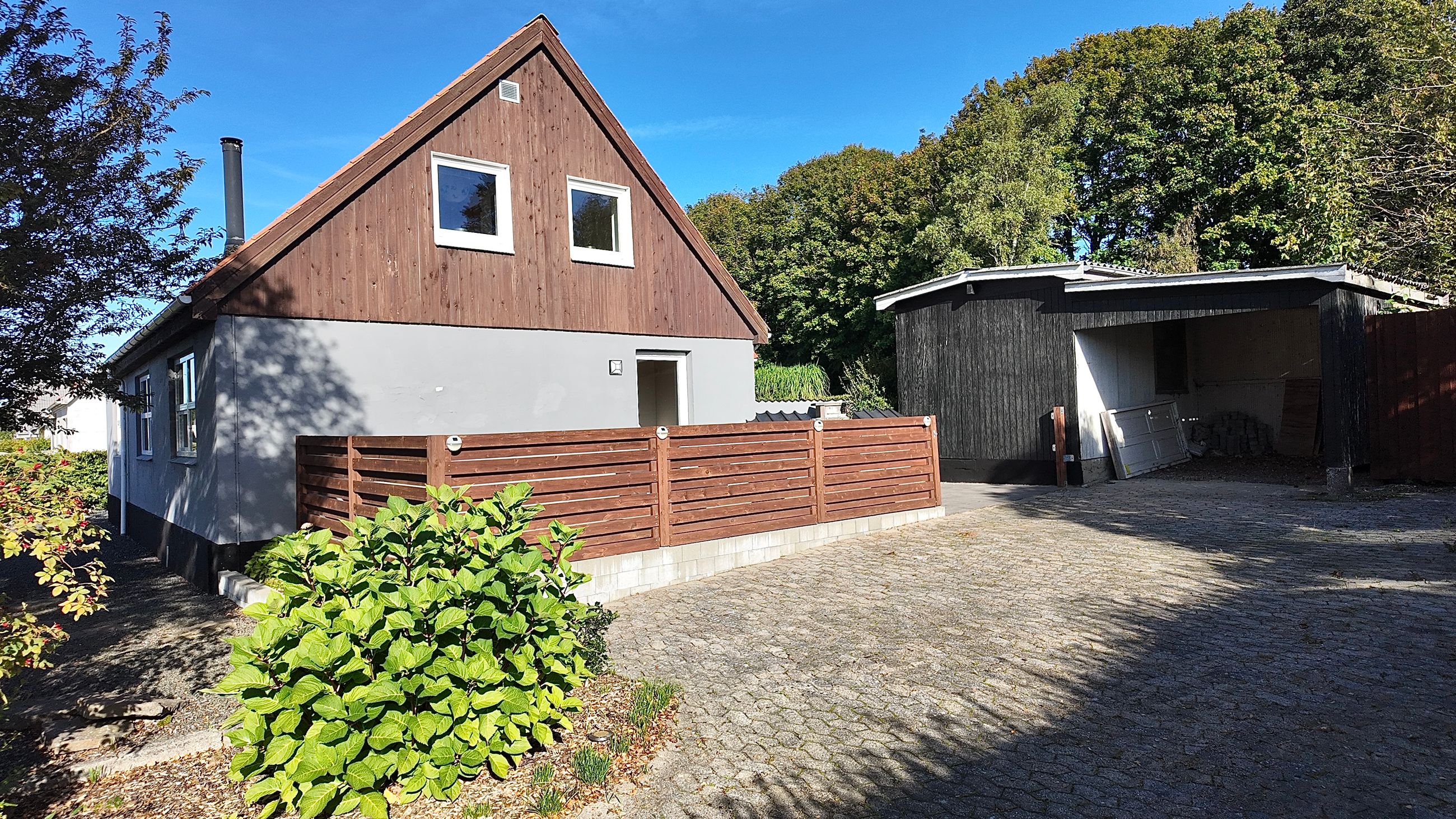 Pæn og renoveret. 141 m2 bolig + udhuse,. Lukket vænge. Stor grund.