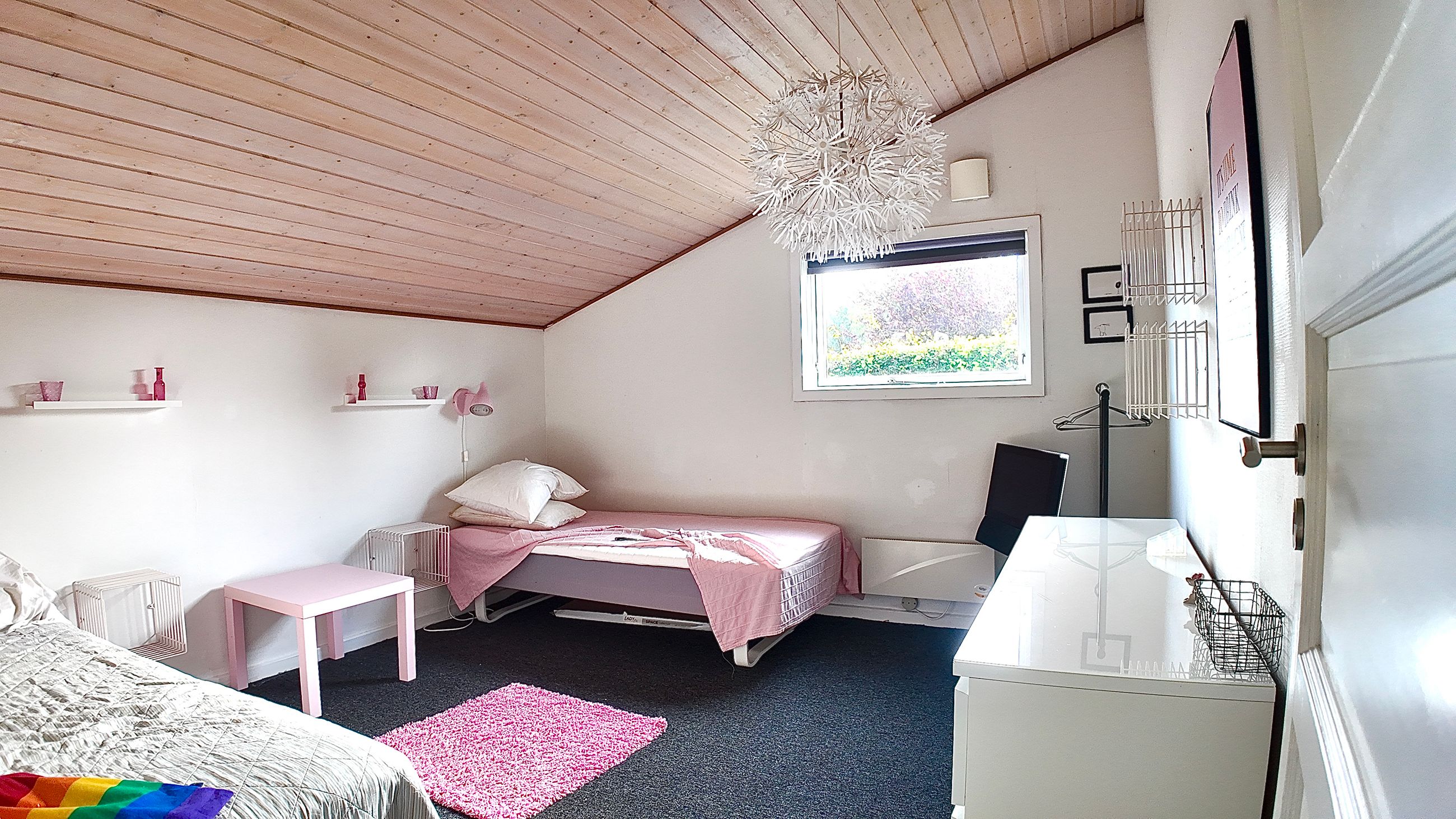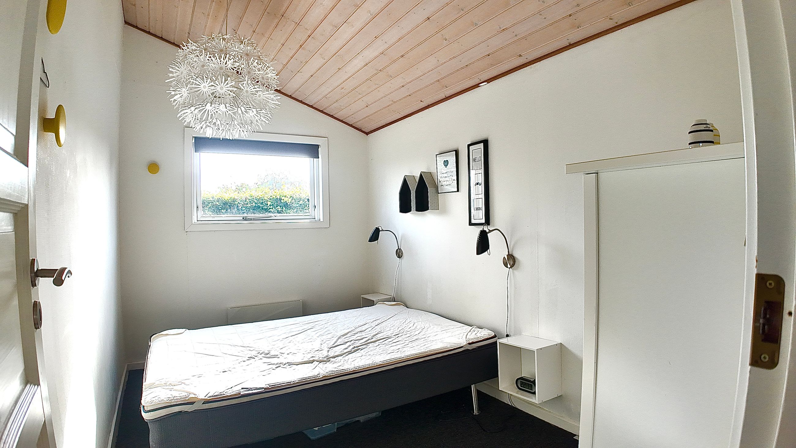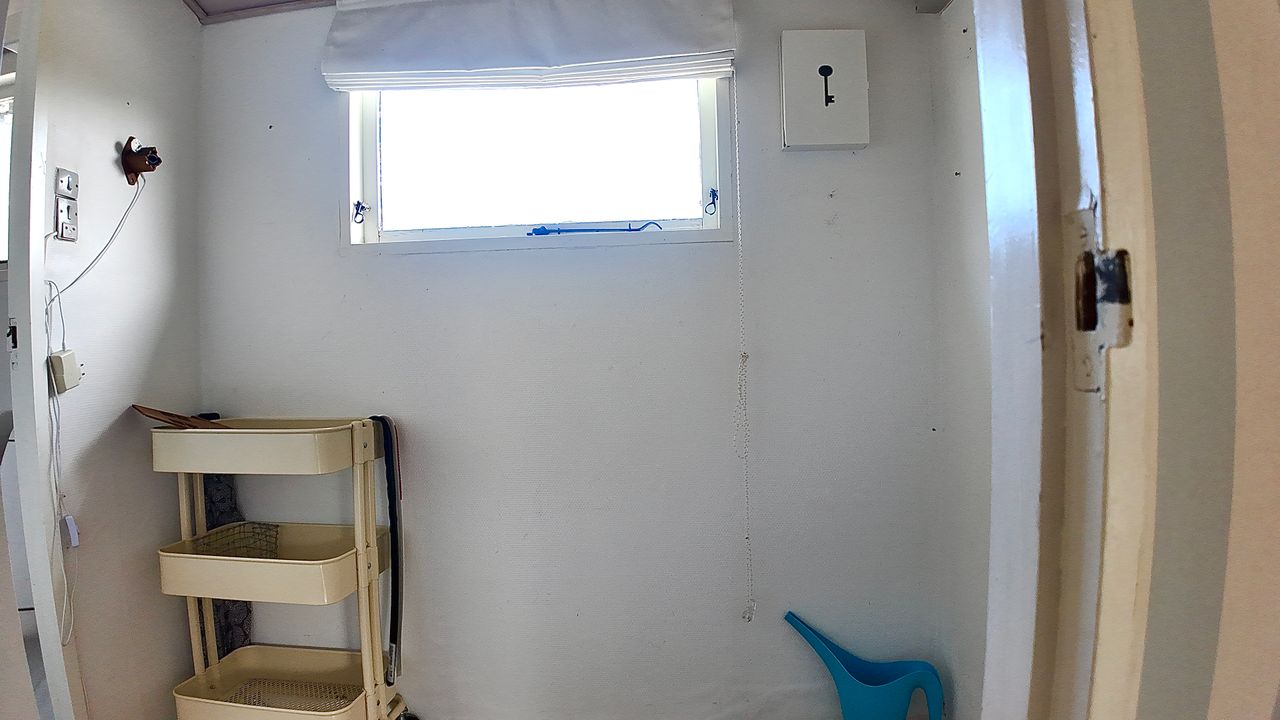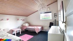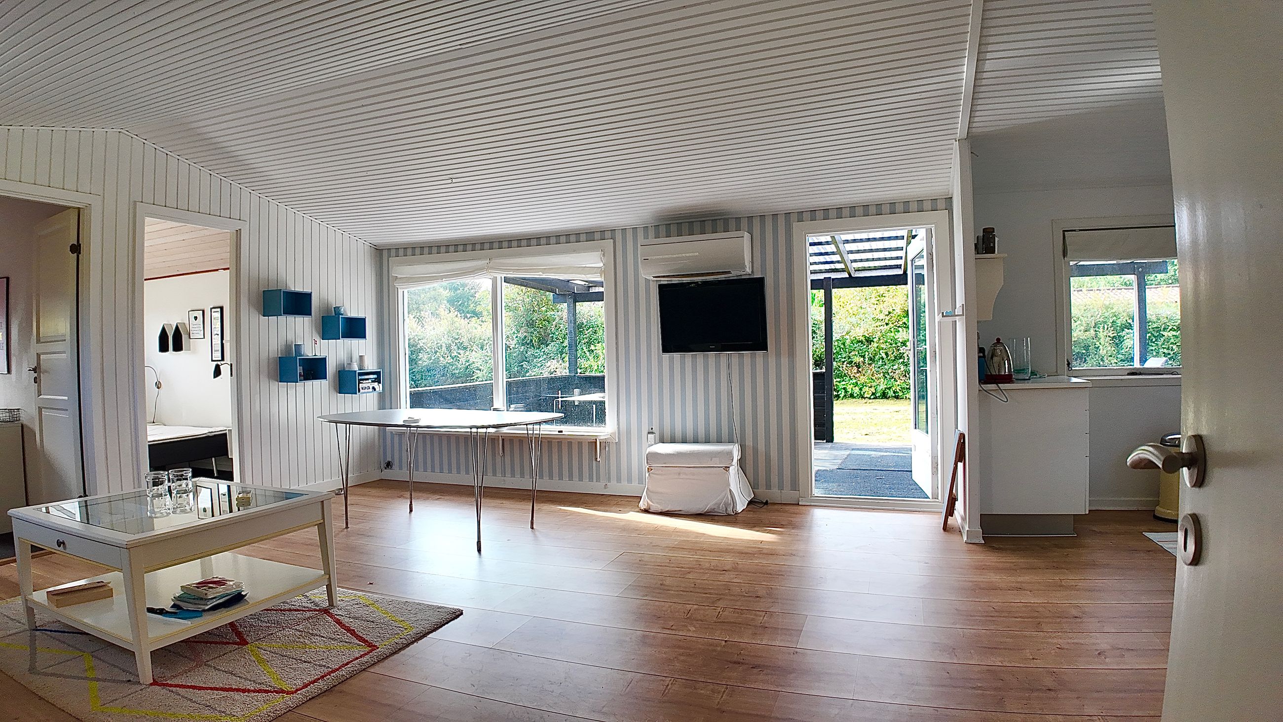 Lille entre, med adgang til badeværelse med lyst interør , bademiljø samt rummelig bruseniche. Fra entre er adgang til husets store stue , der er kombineret med åbent køkkenafsnit. Særdeles rummelig stue med både opholds - og spiseafdeling. Fra stuen er adgang til 2 store værelser. ( Gulve i værelser skal undersøges for ujævnheder) Huset køkkenafsnit er ved vestgavl og fremstår med lyse elementer. Huset opvarmes via Elpaneler og Luft/Luft varmepumpe.