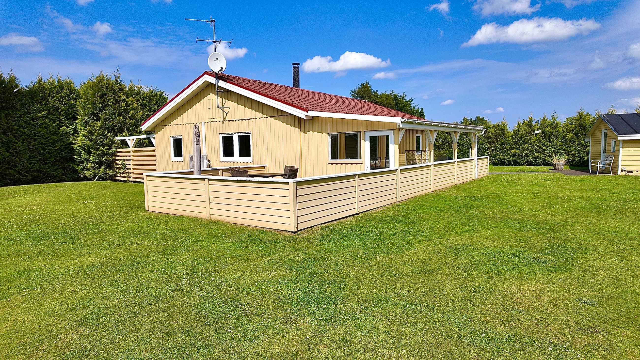 Dette flotte og særdeles velpassede og opdaterede sommerhus, fremstår med facade i træbeklædning samt tagdækning i røde betontegl. Den rummelige bolig har en fin planløsning med godt lysindfald fra de talrige vinduer i husets sydlige facade.