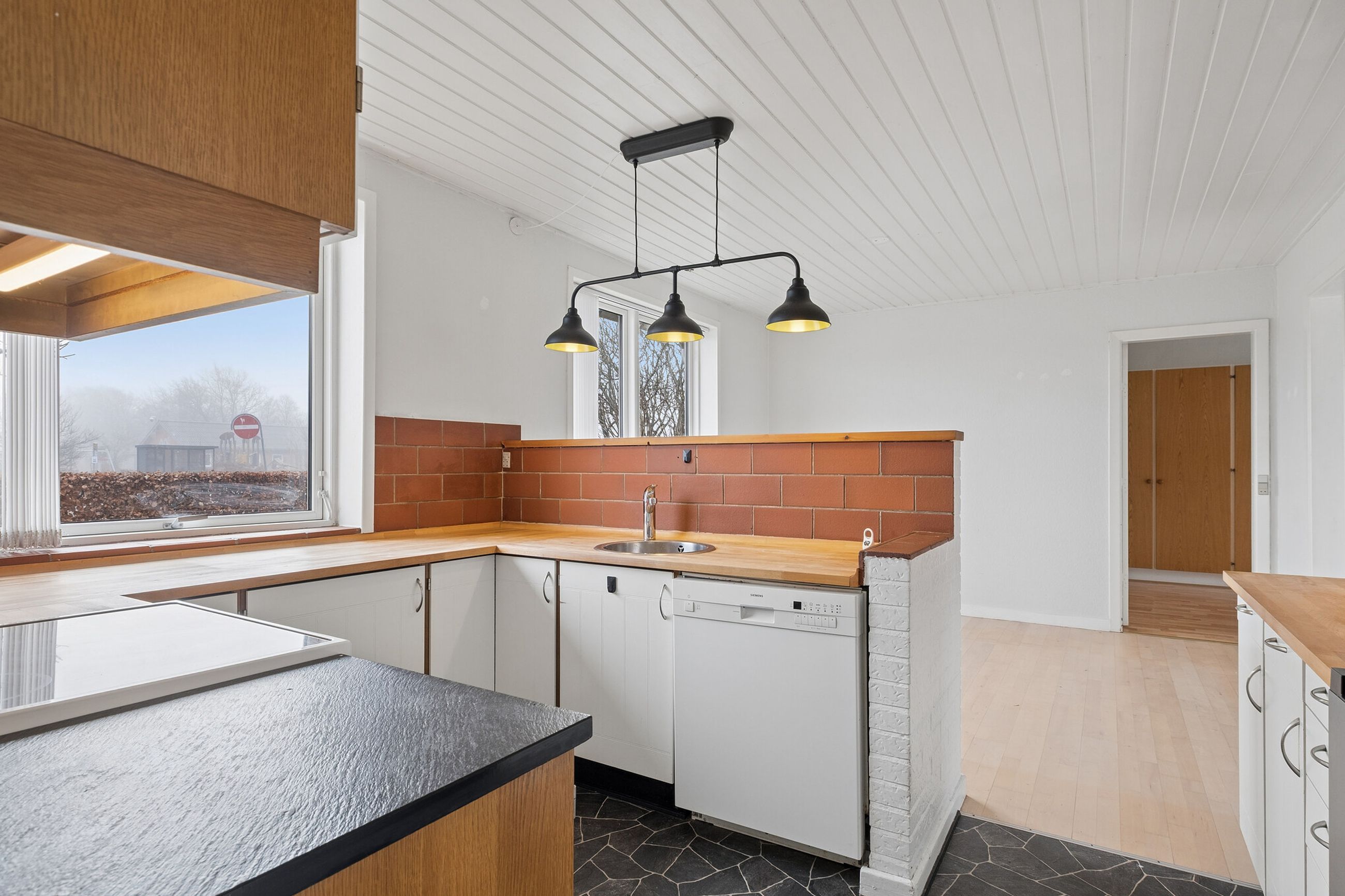 Velbeliggende og velpasset gulstensvilla nær skole og idrætsfaciliteter. Med denne velindrettede villa, med hele 4 værelser,får du plads til hele familien. Villaen er opført i gule tegl med tagdækning i eternitskifer. Beliggenheden er i sydlige del af Mou by, i umiddelbar nærhed af Mou Skole, Børnehaven, idrætshal og øvrige idrætsfaciliteter.Velkommen indenfor til rummelig entre/fordelingsgang der ligger i den centrale del af villaen. Fordelingsgangen giver adgang til 3 af de 4 værelser i boligen , pænt gæstetoilet, samt adgang til husets bryggers, der rummer vaskemaskine og tørretumbler. Desuden teknikafdeling. Husets køkken er lyst og rummeligt, med masser af skabsplads og er adskilt fra det store alrum via halvmur. Fra køkken/alrummet er åben forbindelse til den rummelige stue, med adgang til den store vestvendte have. Der er installeret brændeovn mrk RAIS i stuen. Husets forældresoveværelse ligger i den sydlige del af boligen, og er indrettet med skabe. Husets rummelige badeværelse findes i forbindelse med soveværelset. Badeværelset fremtræder i flot stand, med bademiljø, stor bruseniche samt skabsarrangement. Boligen opvarmes via fjernvarme med supplement af varme fra brændeovnen der er installeret i stuen. Til boligen hører 24 m2 garage med redskabsrum. Husets store have er vestvendt og giver fred og ro, da den er omkranset af bevoksning. Mou by ligger ca et kvarters kørsel fra Aalborg, og byder på mange gode muligheder for børnefamilier - gode skole - og børnepasningsforhold, gode sportsanlæg og mulighed for rekreative tiltag i den skønne natur der omgiver byen. Kun ca 1,5 km mod nord ligger Limfjorden med Mou Havn - og mod syd er der kun 3 km til LILLE VILDMOSE, der med sit store og varierede dyre- og planteliv året rundt, giver mulighed for utallige timer i naturen. Området består af Høstemark skov , og syd for dette hegnede område, findes tidligere tørvegravningsområde, der nu ligger hen i natur og dyrereservat. Pt. er Danmarks første Elgereservat blev etableret i 2016 i et 21 km2 stort hegn. Masser af skønne naturoplevelser venter. LILLE VILDMOSE CENTRET er beliggende i sydenden af mosen, og centret formidler de igangværende aktiviteter, samt mosens historie etc. Syd for førnævnte ligger det endnu større naturområde Tofte Skov. MASSER AF SKØN NATUR!