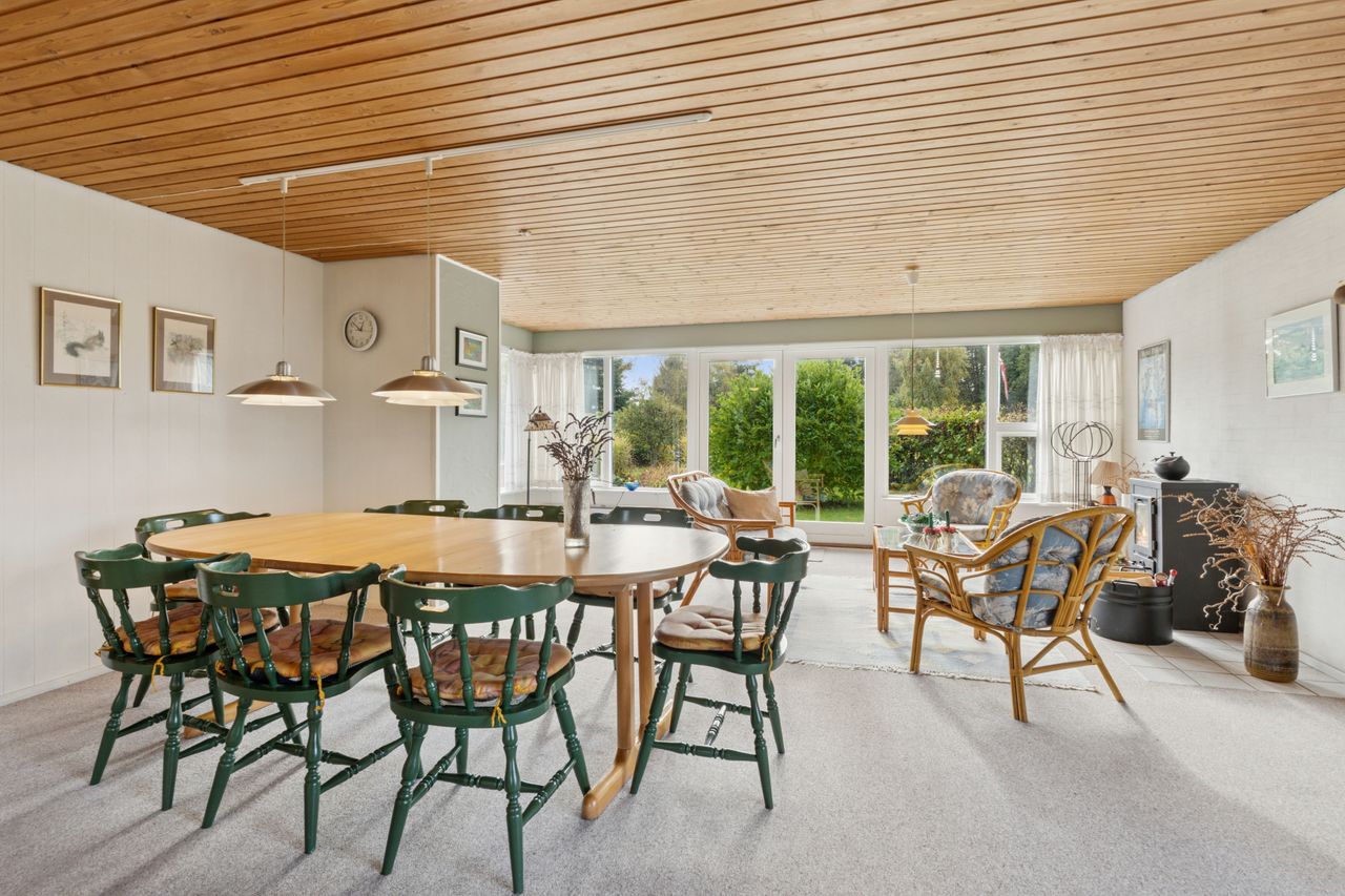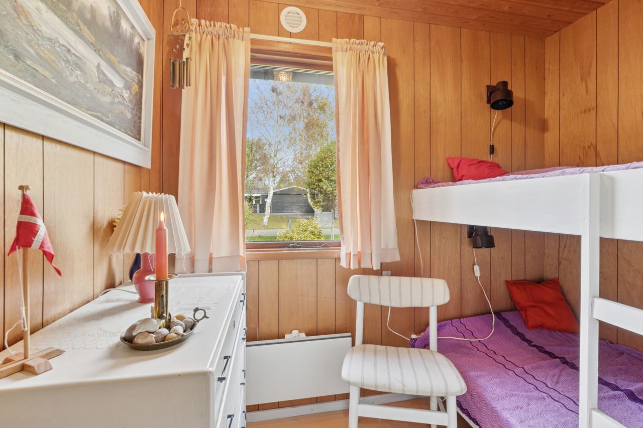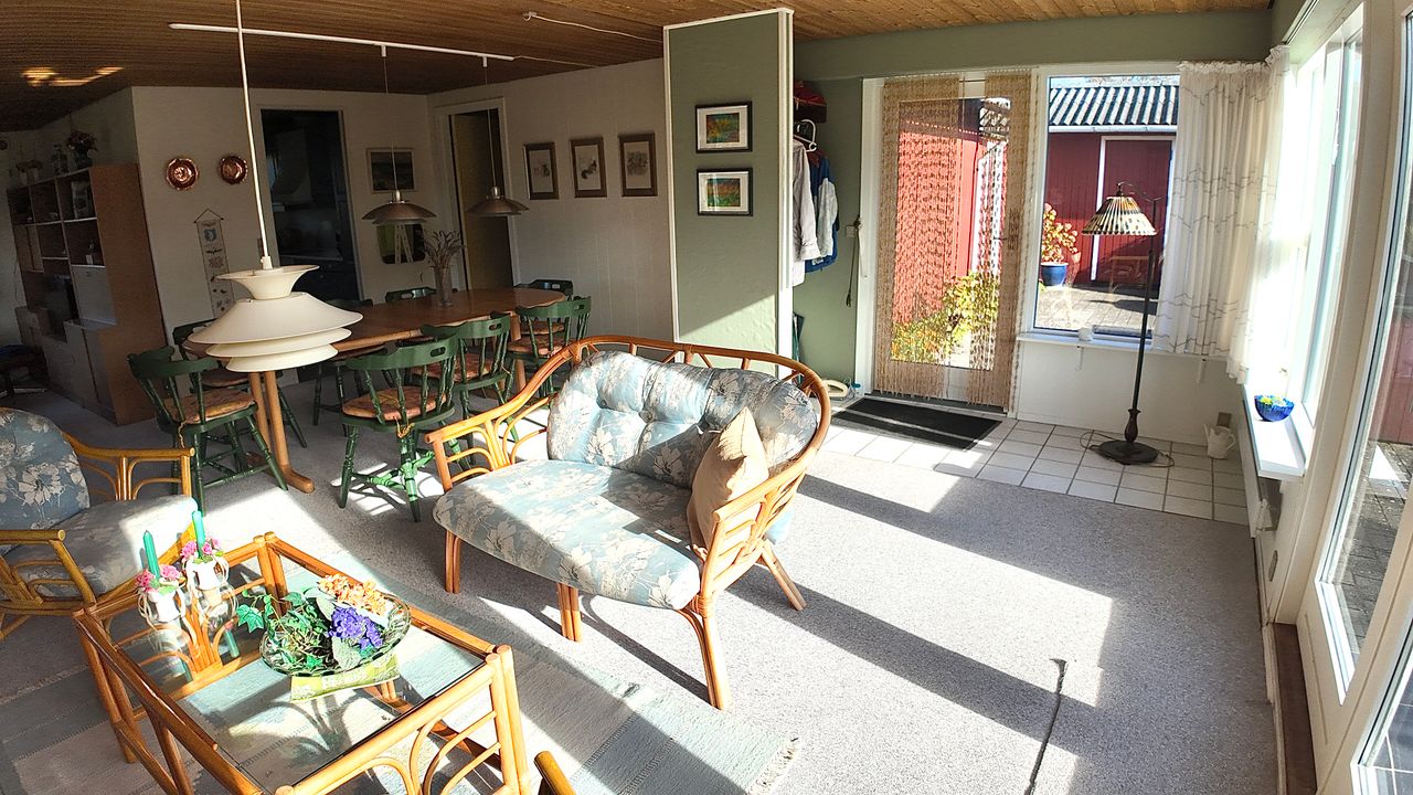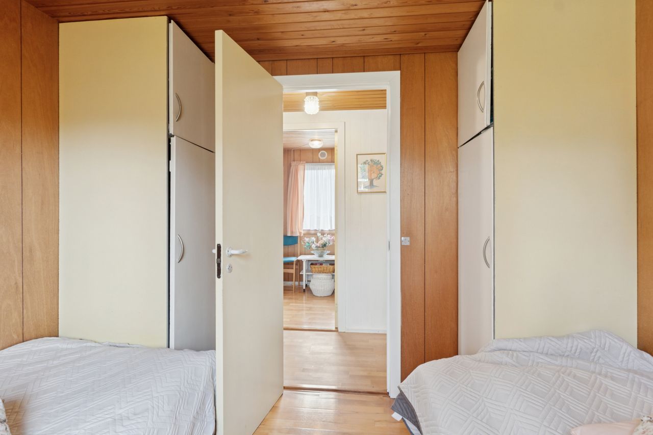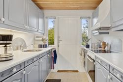 Sommerhuset er løbende opdateret og har indenfor de seneste år fået stor del af tagdækningen skiftet på boligen, så det fremstår i fin stand. God facade i træbeklædning. Huset er indrettet med indgang til rummelig sydvendt og lys stue, med lille garderobe umiddelbart ved indgangsdøren. Som nævnt er stuen rummelig og med godt lysindfald. Stuen har udgang via fløjdør til den store lukkede have. Husets køkken er separat og umiddelbart ved stuen. 3 gode værelser i varierende størrelse, og der er skabe på alle værelser. Godt stort badeværelse med rummelig bruseniche .