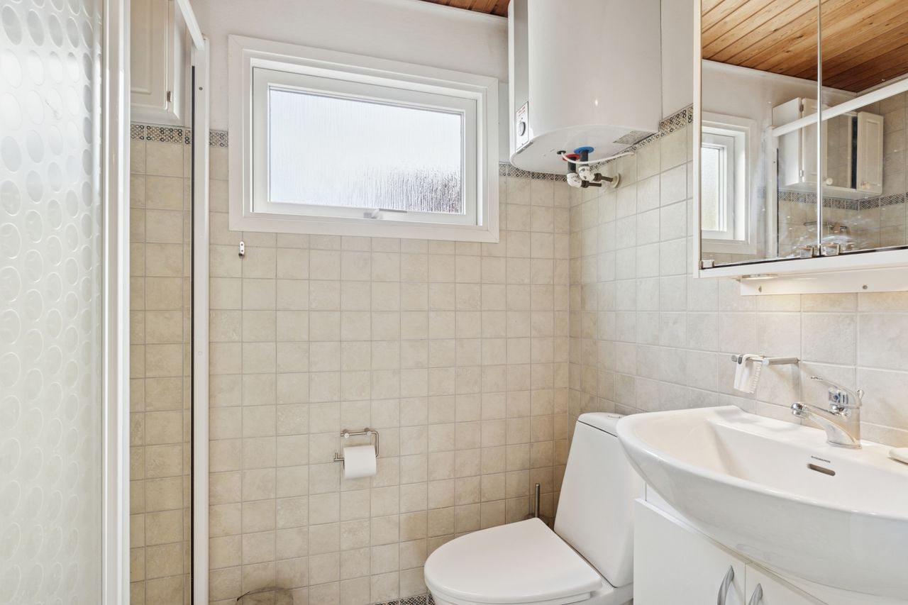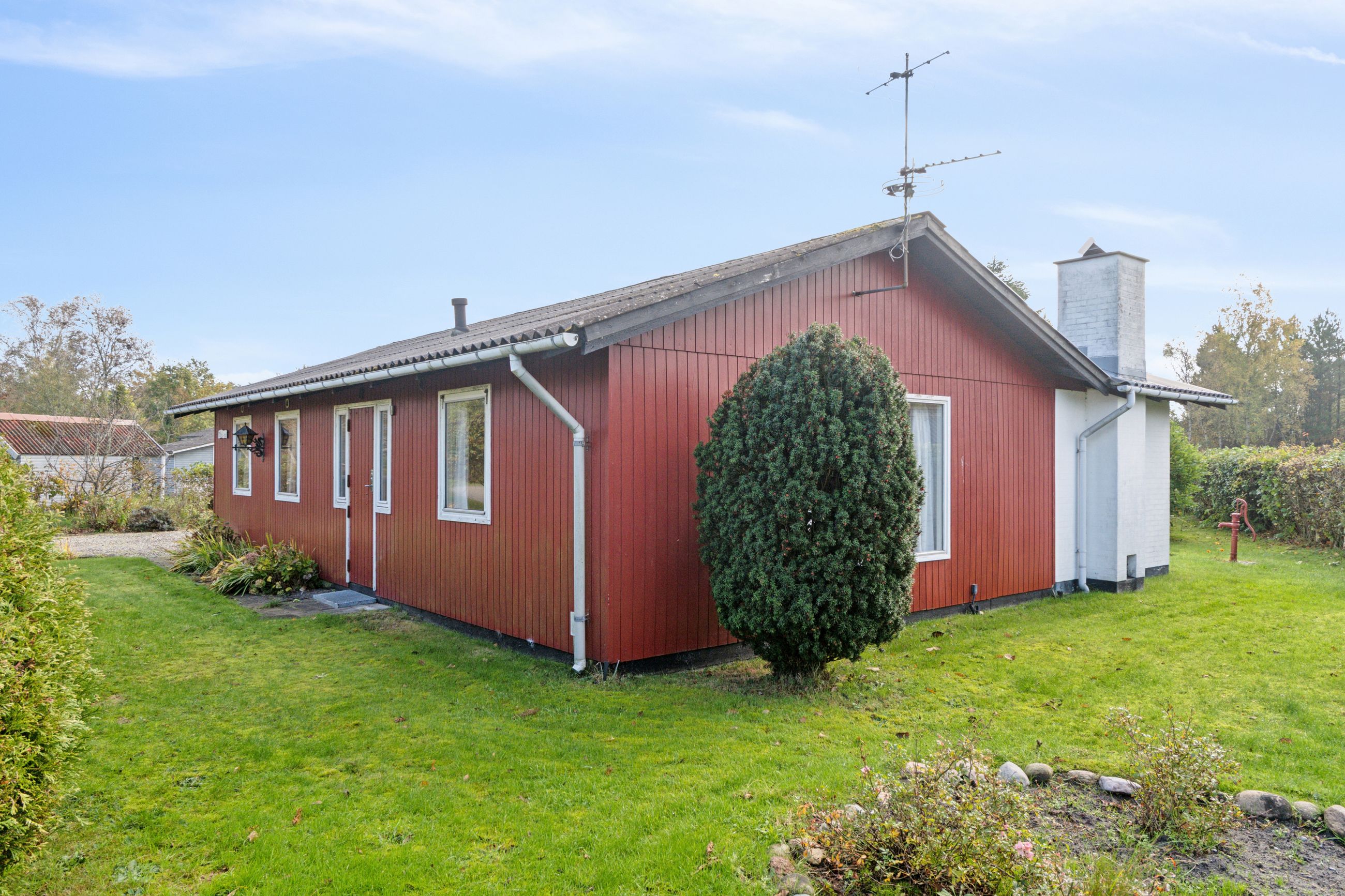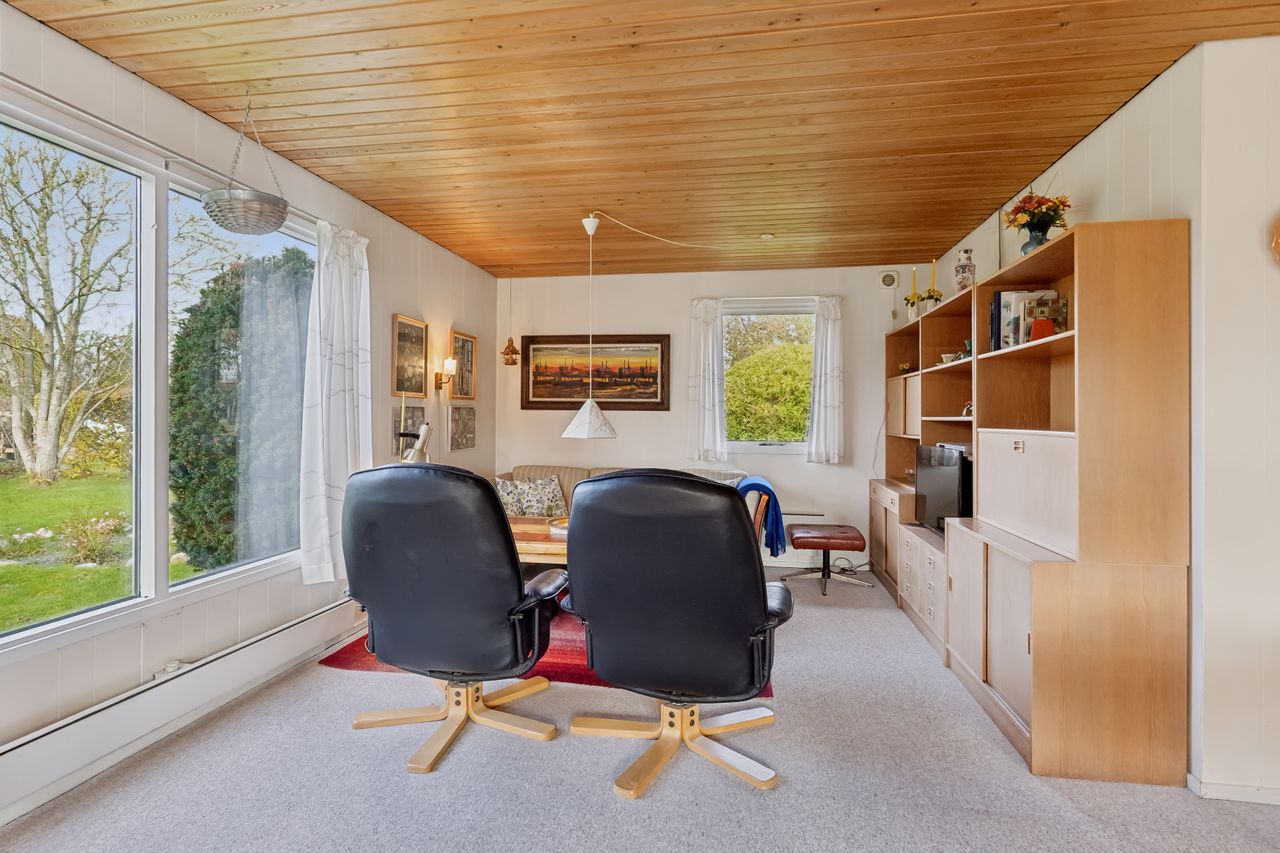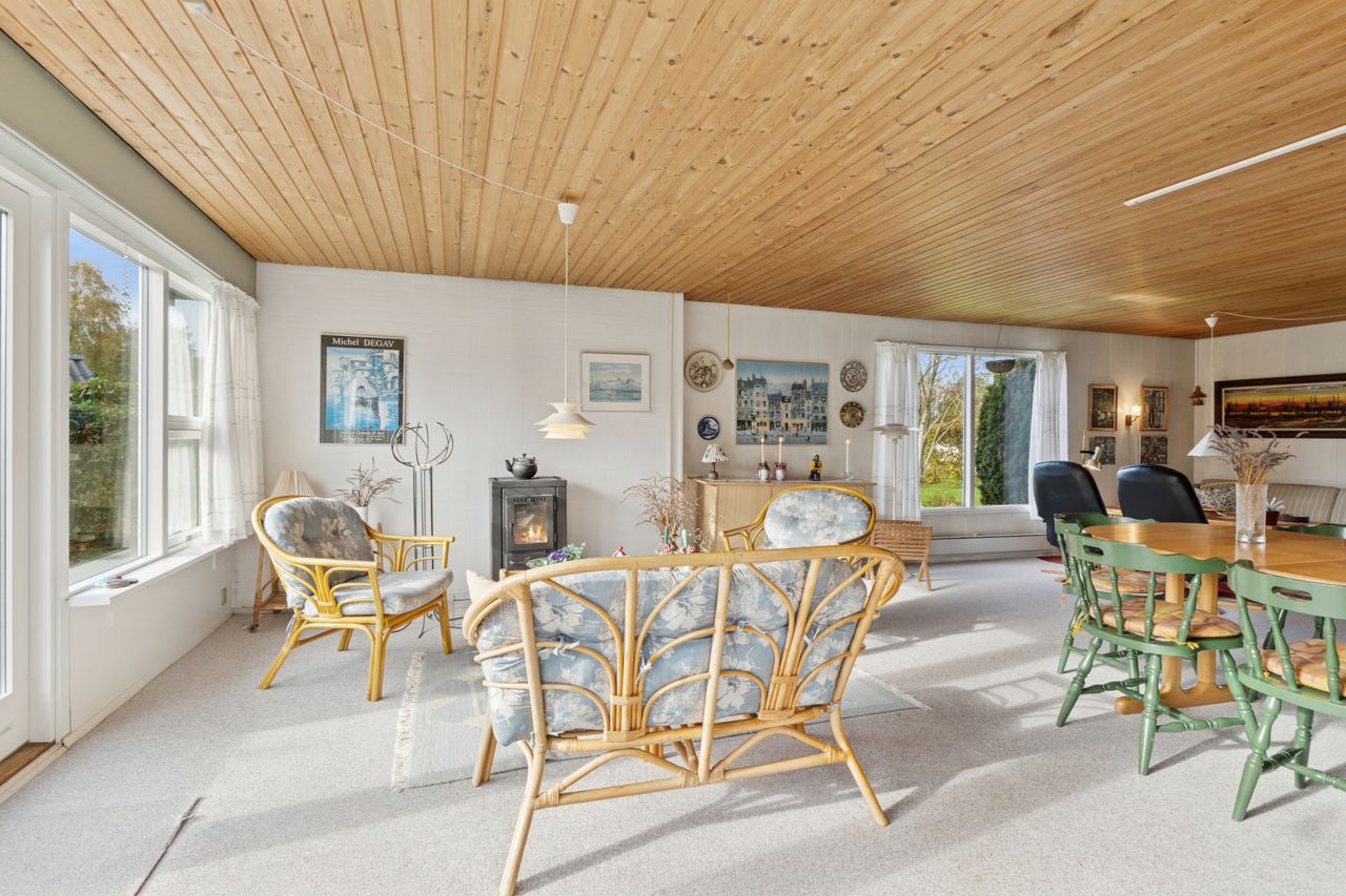 Sommerhuset er løbende opdateret og har indenfor de seneste år fået stor del af tagdækningen skiftet på boligen, så det fremstår i fin stand. God facade i træbeklædning. Huset er indrettet med indgang til rummelig sydvendt og lys stue, med lille garderobe umiddelbart ved indgangsdøren. Som nævnt er stuen rummelig og med godt lysindfald. Stuen har udgang via fløjdør til den store lukkede have. Husets køkken er separat og umiddelbart ved stuen. 3 gode værelser i varierende størrelse, og der er skabe på alle værelser. Godt stort badeværelse med rummelig bruseniche .