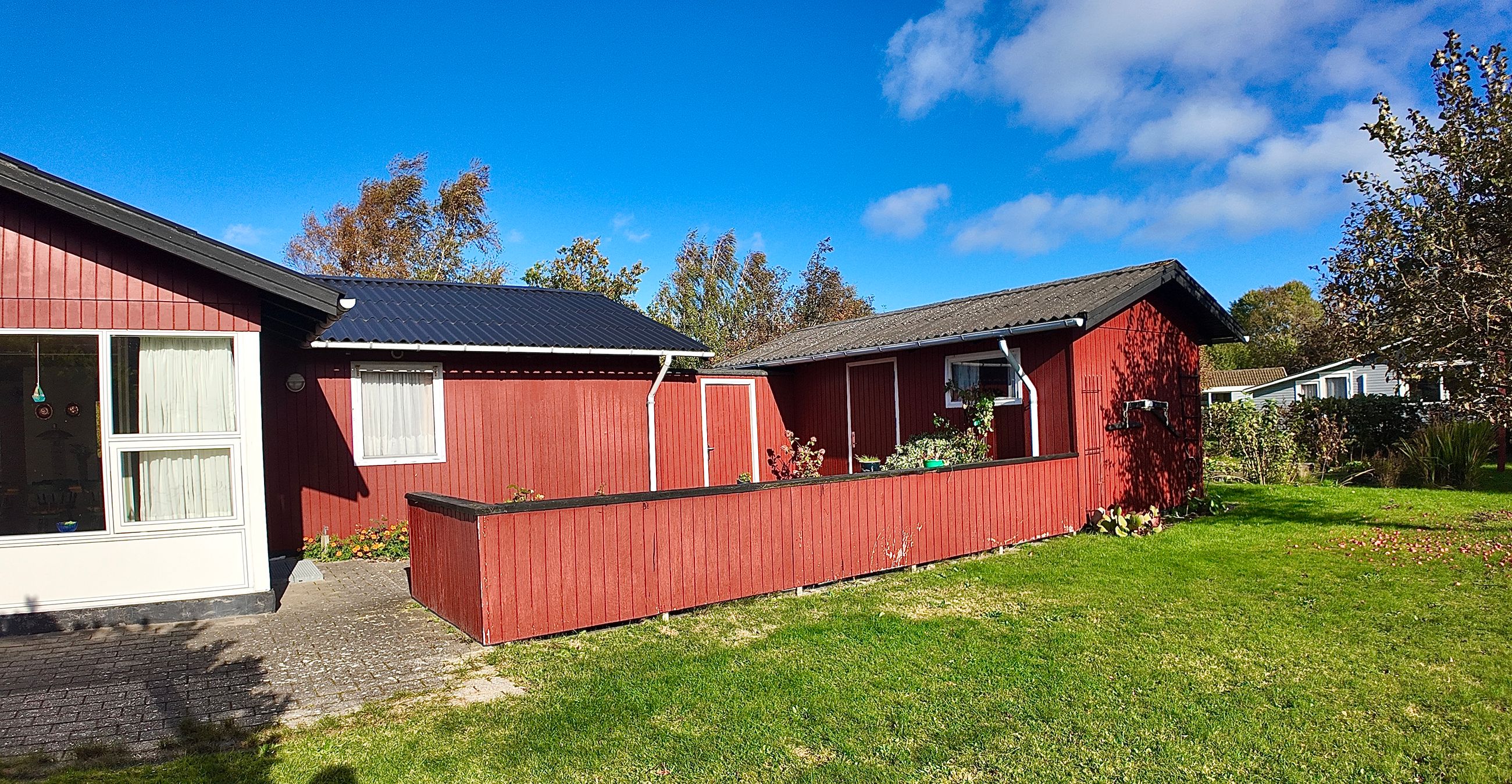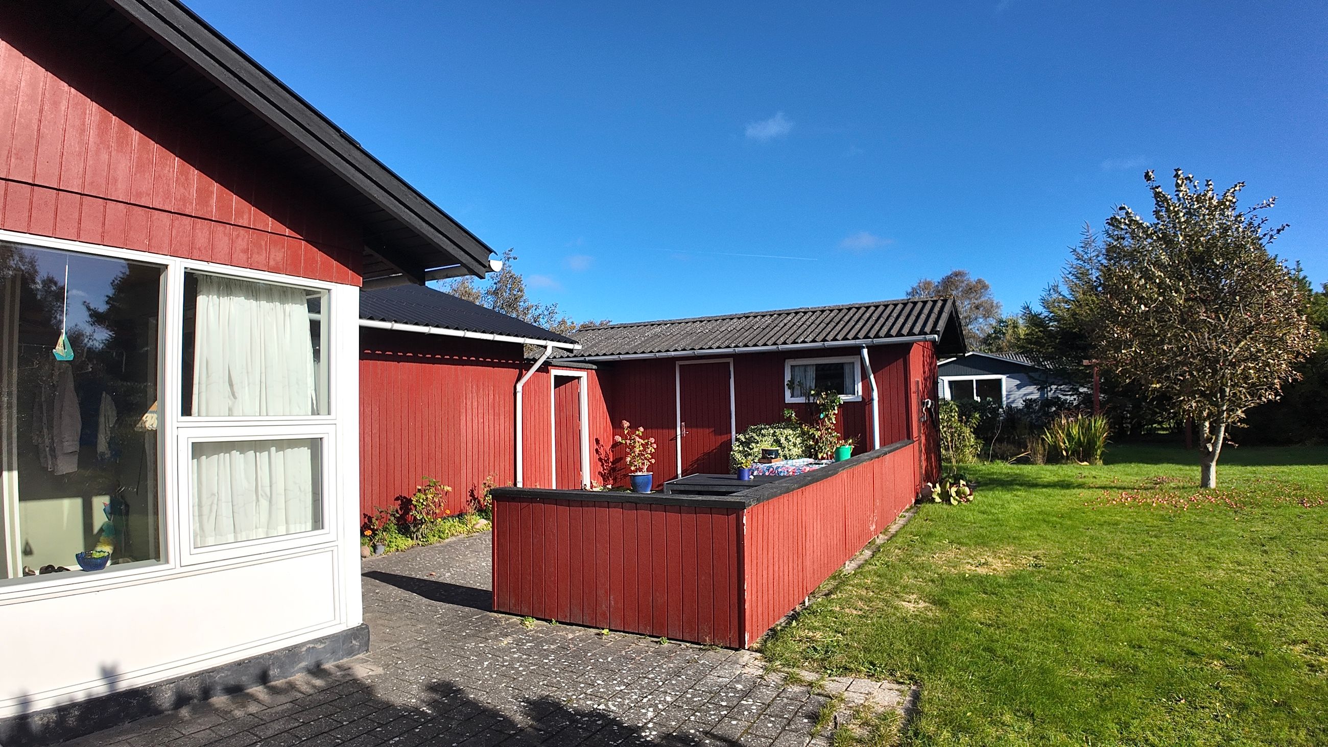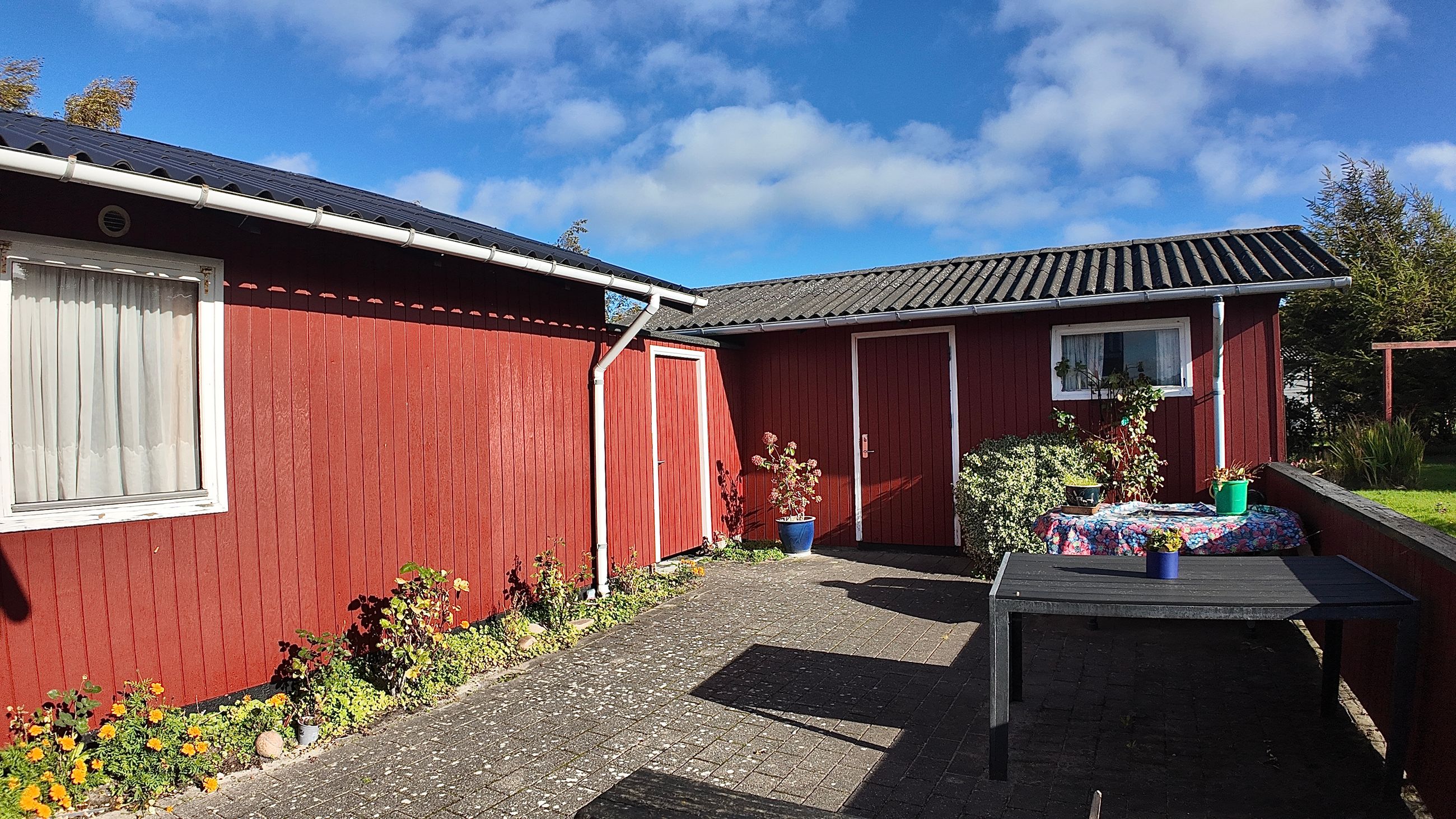 Husets grundareal er hele 1.390 m2 og henligger med flot haveanlæg med høj bevoksning rundt skel og man kan færdes ugenert på ejendommen. Stor sydvendt terrasse der forbinder hus og garage.