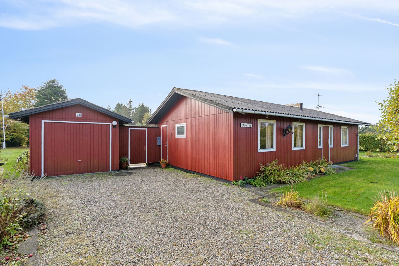 På denne stille vej i Egense Sommerhusområde finder du Revlevej 14. Et velpasset eenejershus der ligger med en skøn lukket have, 84 m2 velindrettet bolig, og 18 m2 garage. Og med kort afstand til Limfjorden , Kattegat og iøvrigt færgen der går til Hals, områdets driftige handelsby.
