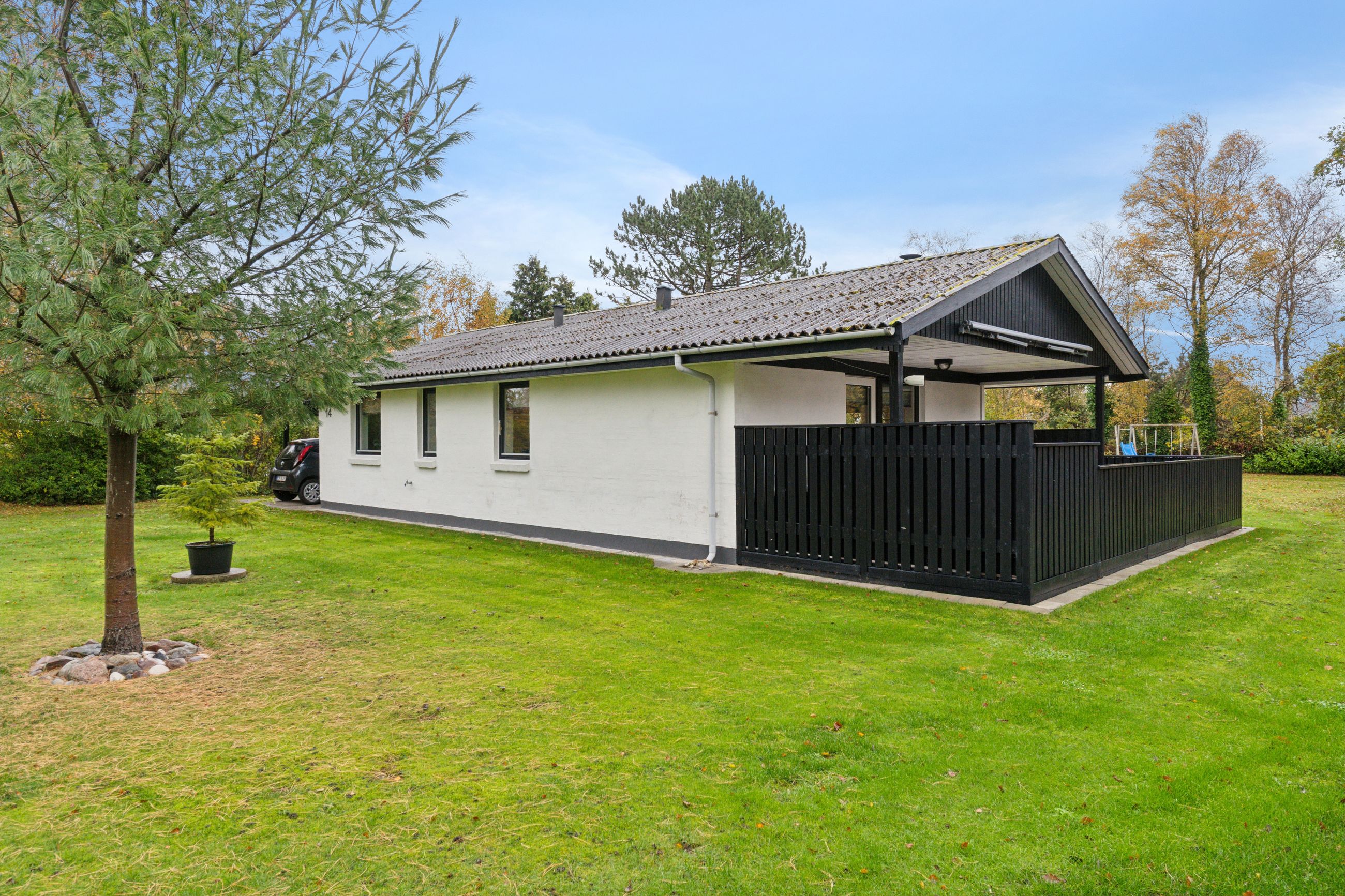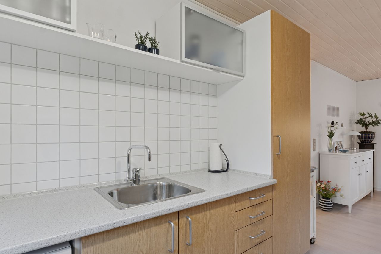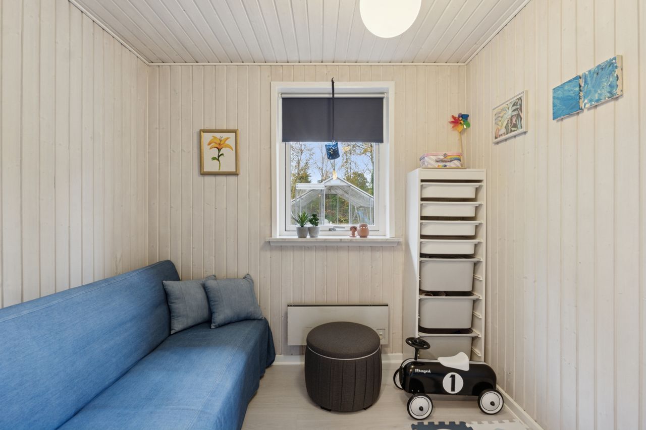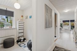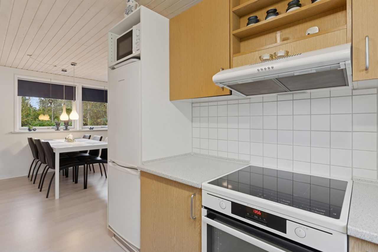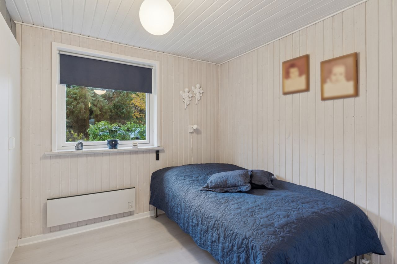 Velkommen indenfor via god overdækning, der fungerer som carport til god fordelingsgang og en fin planløsning. 3 gode værelser. Rummeligt og lyst badeværelse med bruseniche, bademiljø samt installeret vaskemaskine. Godt og praktisk køkken i forbindelse med den rummelige stue der fremstår lys og venlig. Fra stuen er udgang til god overdækket terrasse mod vest. Desuden findes stor træterrasse mod havesiden mod syd. Boligen opvarmes via varmepumpe årg 2024 samt Brændeovn årg 2023.