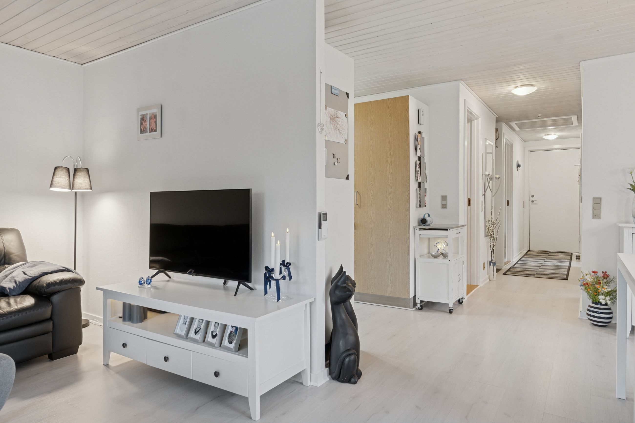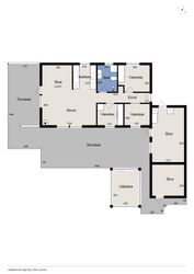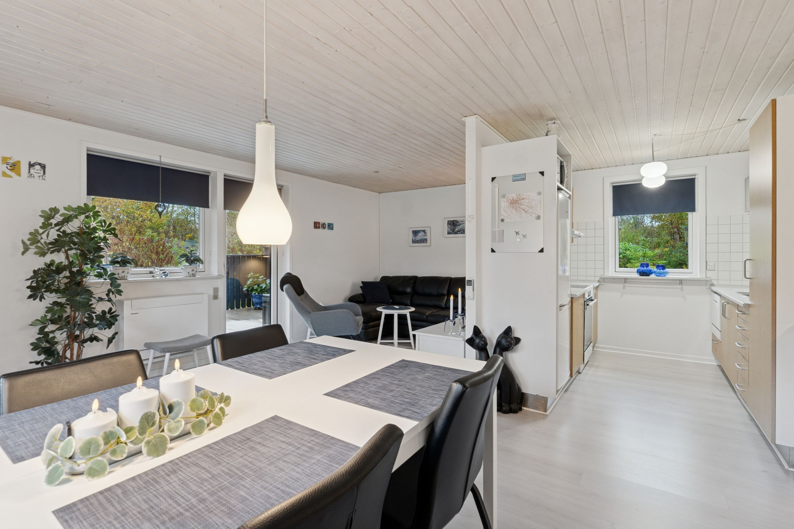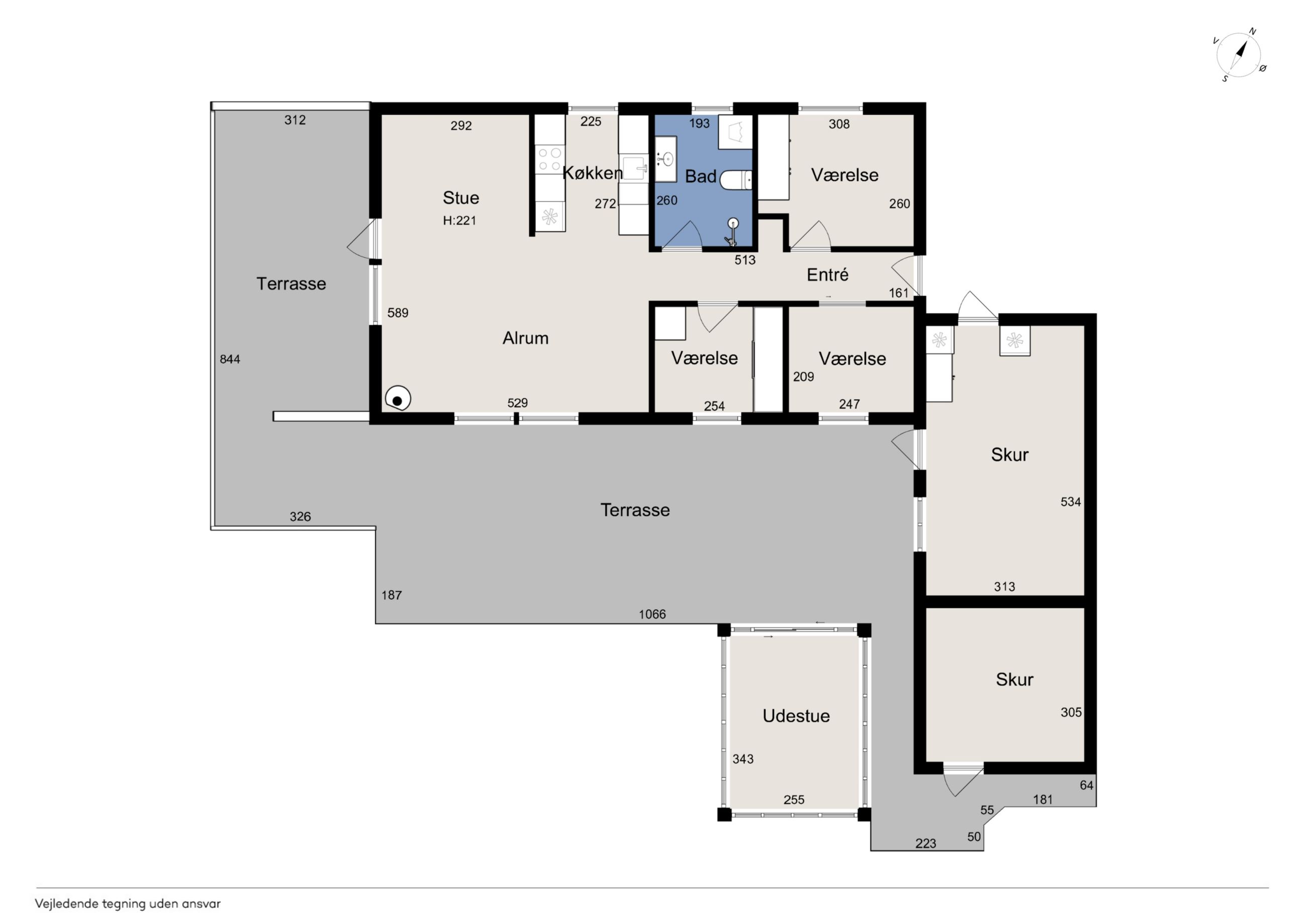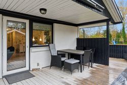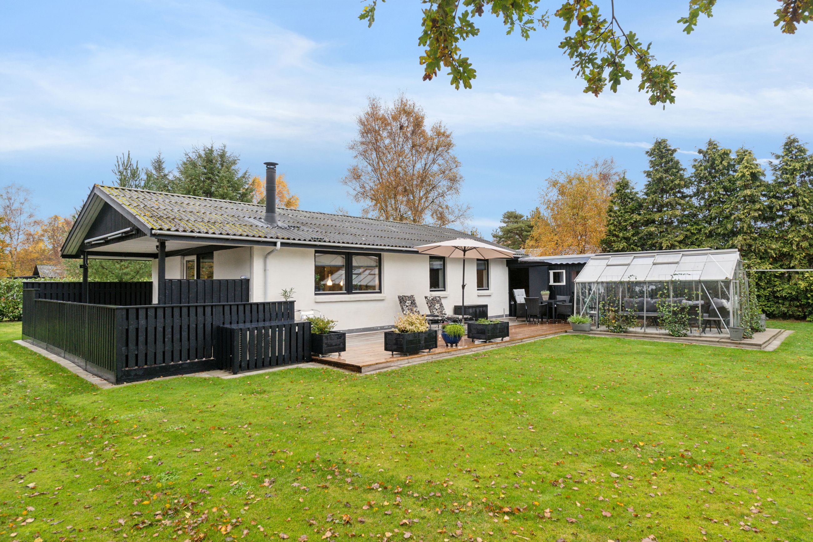 Velkommen indenfor via god overdækning, der fungerer som carport til god fordelingsgang og en fin planløsning. 3 gode værelser. Rummeligt og lyst badeværelse med bruseniche, bademiljø samt installeret vaskemaskine. Godt og praktisk køkken i forbindelse med den rummelige stue der fremstår lys og venlig. Fra stuen er udgang til god overdækket terrasse mod vest. Desuden findes stor træterrasse mod havesiden mod syd. Boligen opvarmes via varmepumpe årg 2024 samt Brændeovn årg 2023.