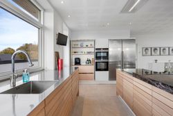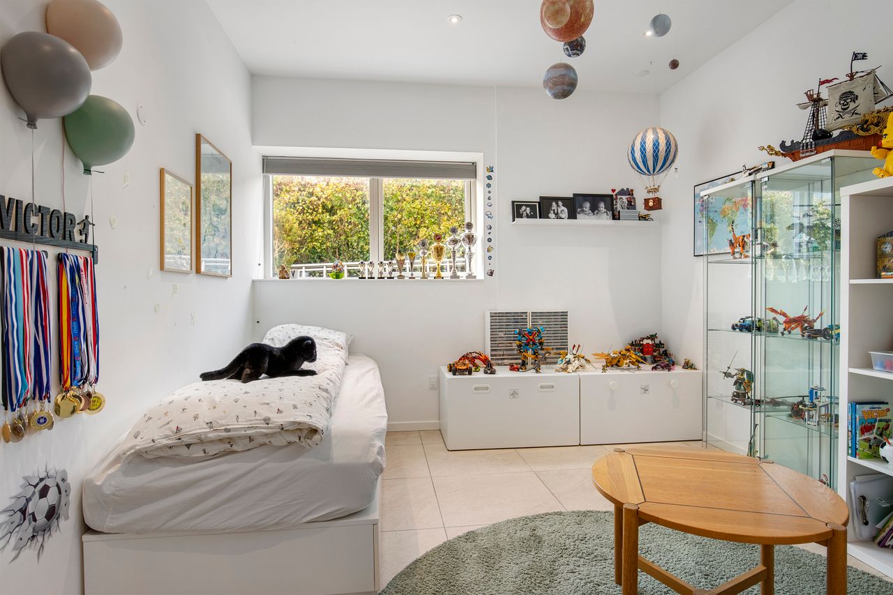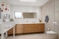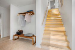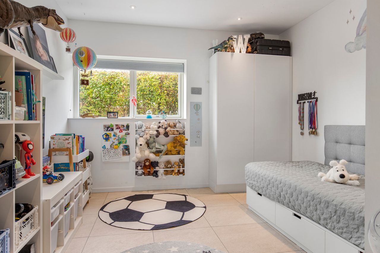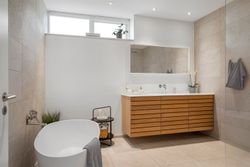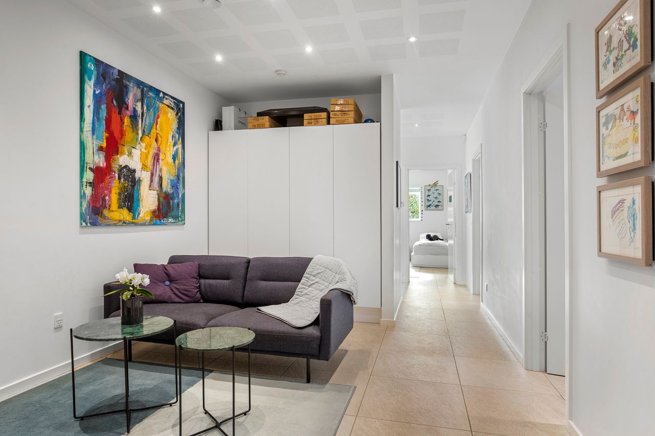 Den arkitekttegnede funkisvilla stod indflytningsklar i 2017. Villaen rummer alt, hvad hjertet kan begære, og ejendommen er opført i meget høj kvalitet. Her er ingen kompromiser, hverken hvad angår indretning eller materialevalg. Alt er gennemtænkt og kræset for ned til mindste detalje, og ejendommen er meget energivenlig med masser af naturligt lys på alle etager. Der er naturligvis gulvvarme og ventilationsanlæg i alle rum, og en rød tråd går igennem både inventar og design. Udvendigt er haven velanlagt og optimeret i forhold til solens stråler, og der er et separat udhus integreret i boligen mod øst. Desuden er der etableret flotte støttemure og flisebelægning rundt om grunden, og hækken har nu nået en højde, der sikrer fuld privatliv.