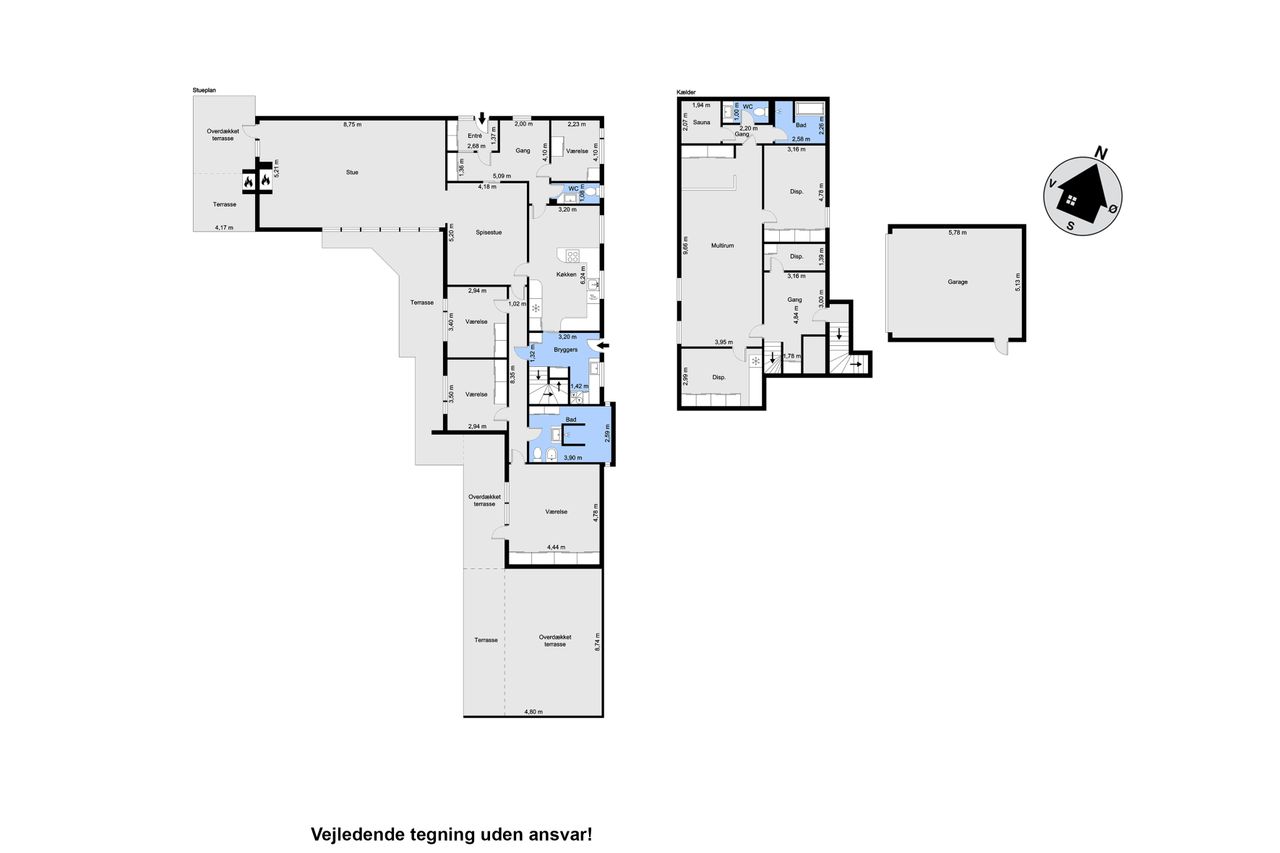 Underetagen er et kapitel for sig. Den er tør og særdeles brugbar med to store disponible rum samt flere mindre rum. Desuden er der et multirum, hvor kun fantasien sætter grænser. Derudover findes et moderniseret badeværelse med toilet og sauna. Der er også separat indgang, hvilket gør underetagen ideel som teenageafdeling.
