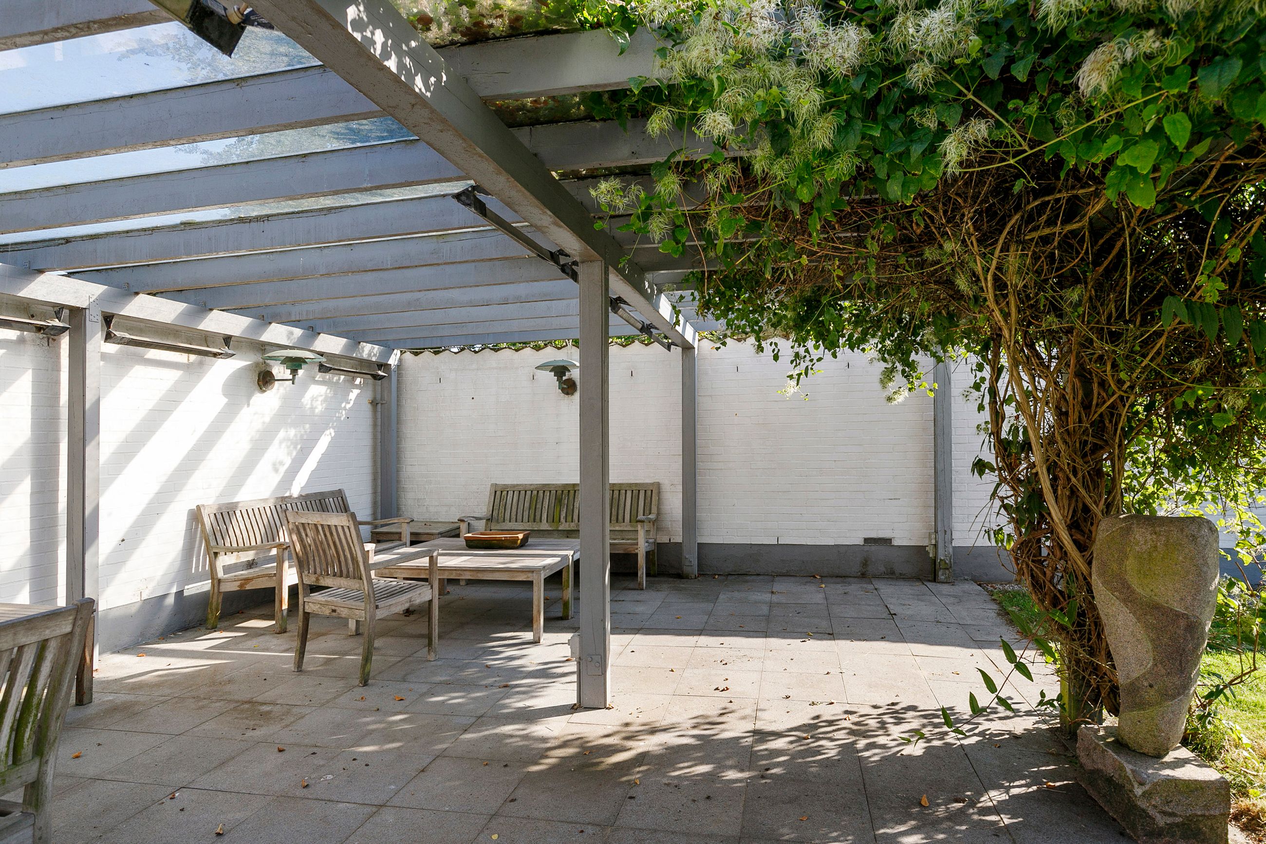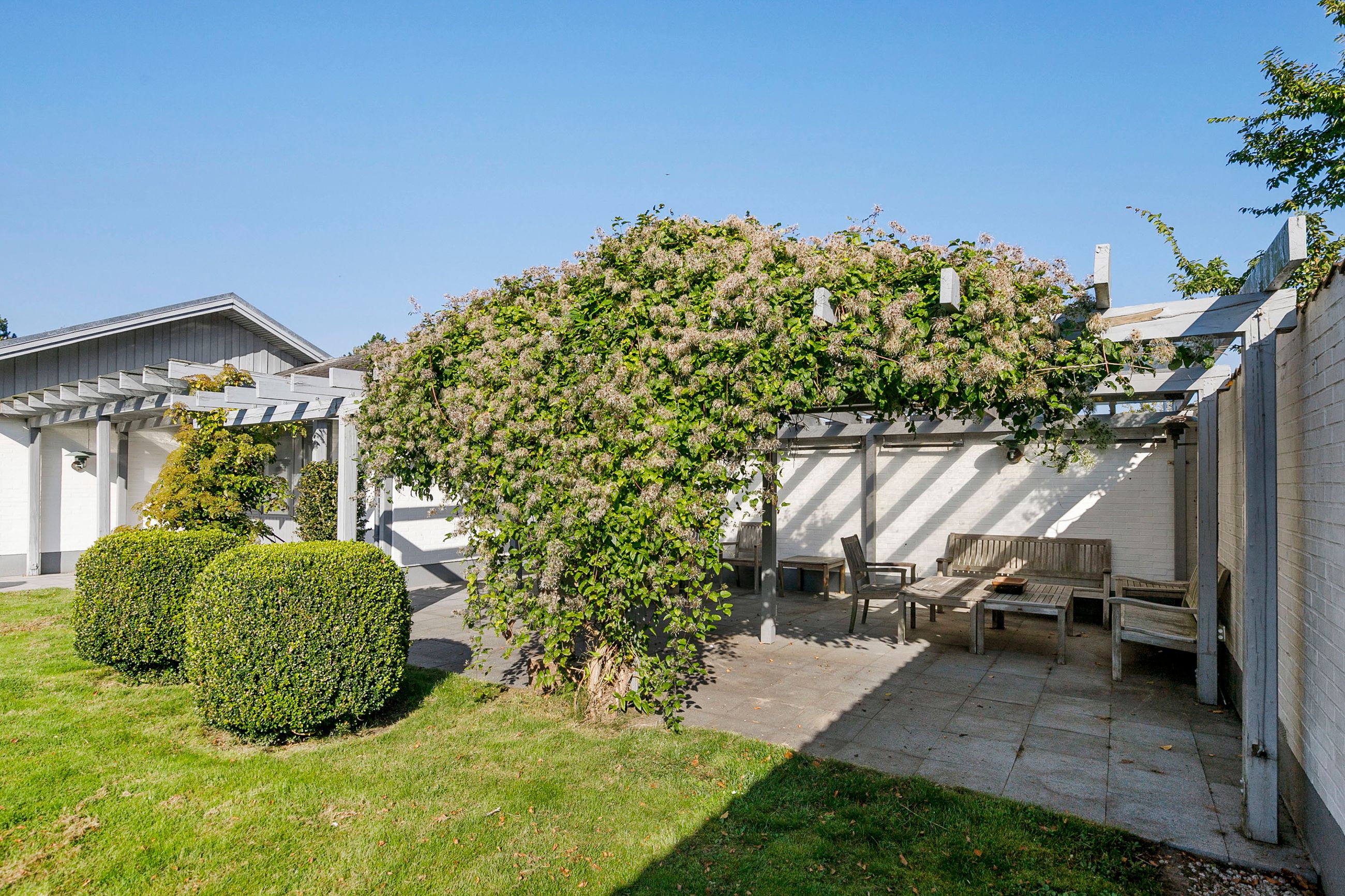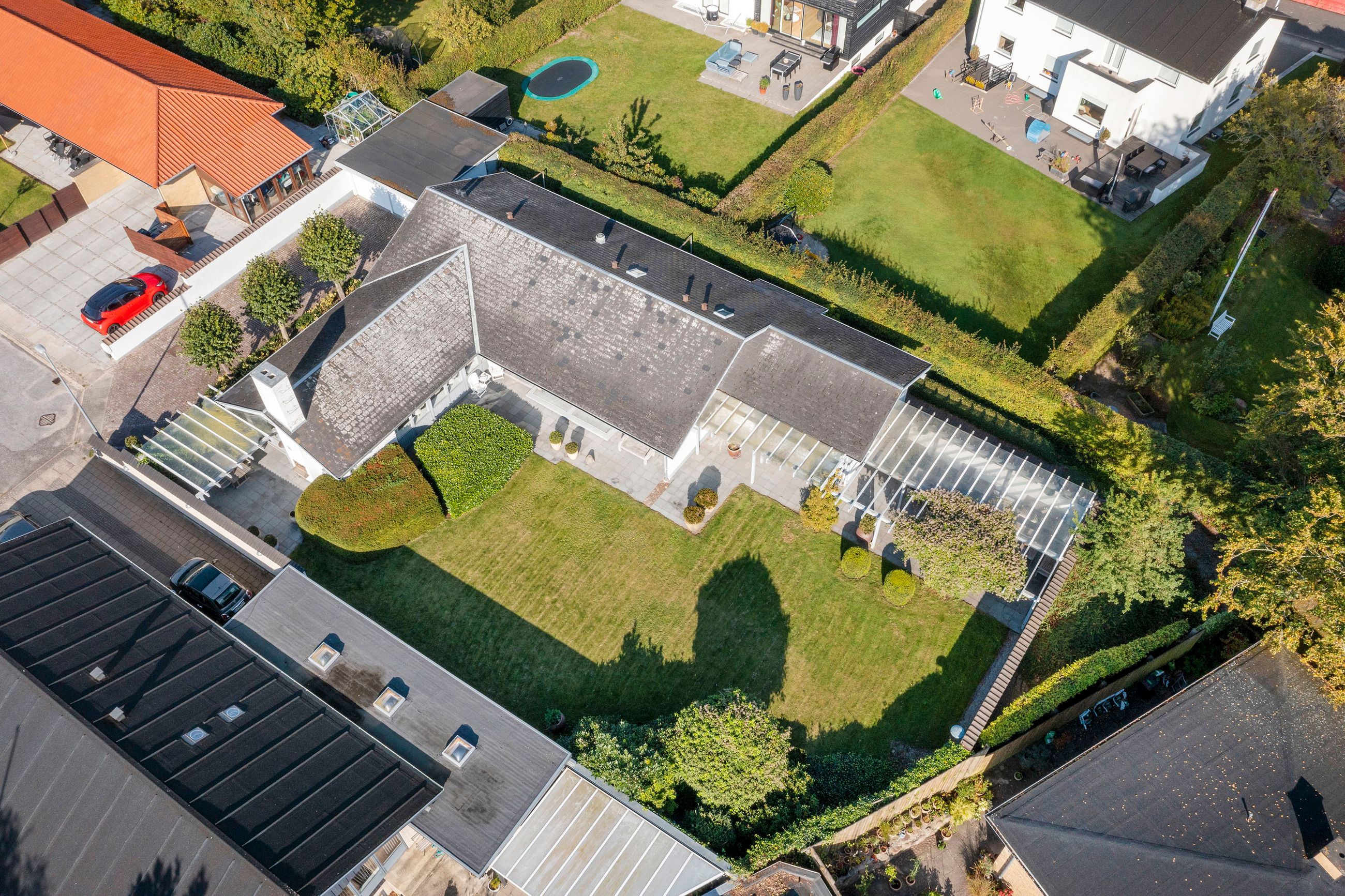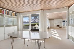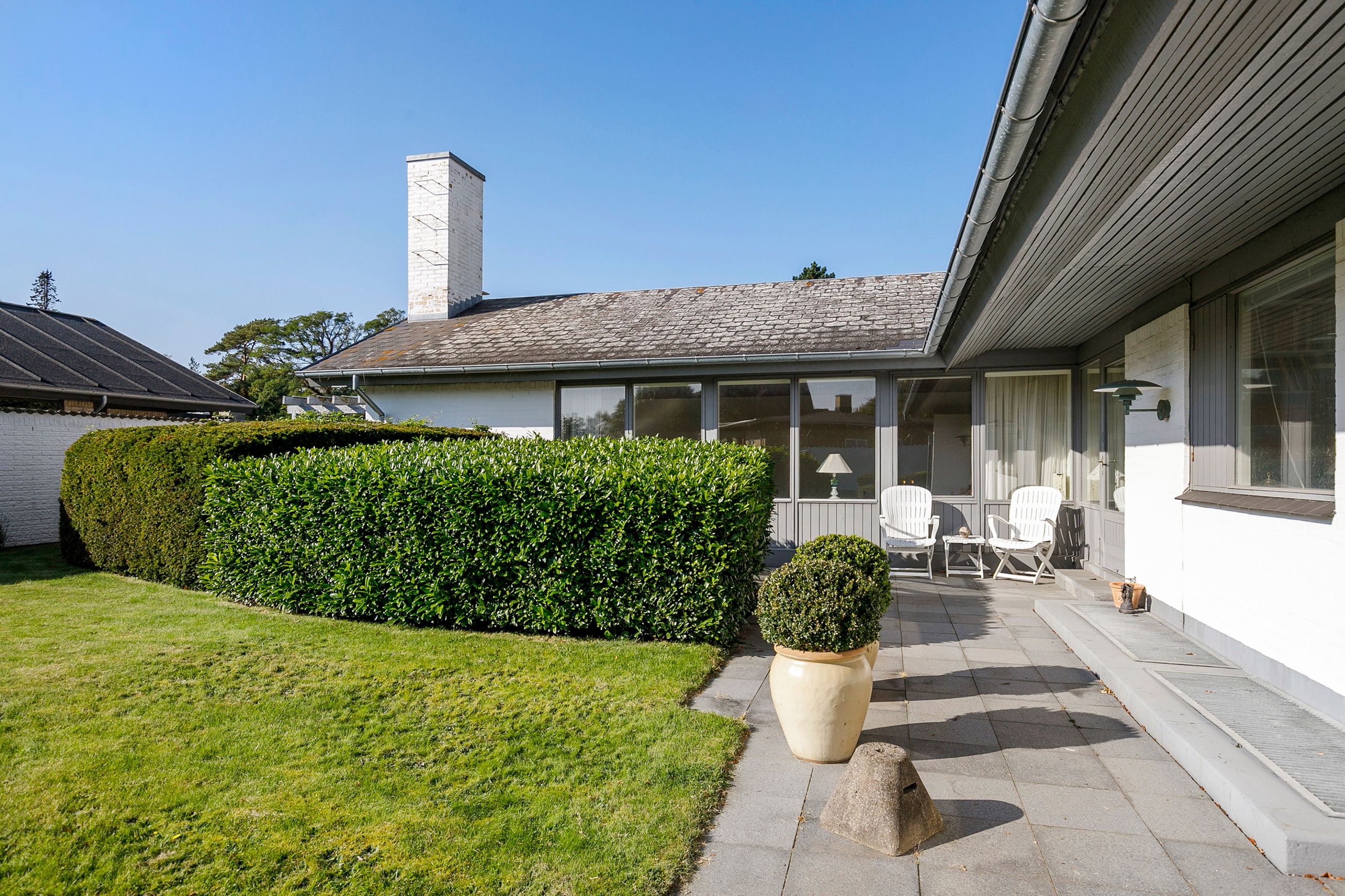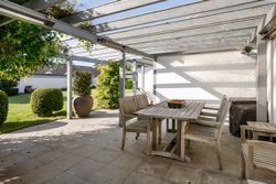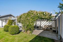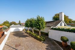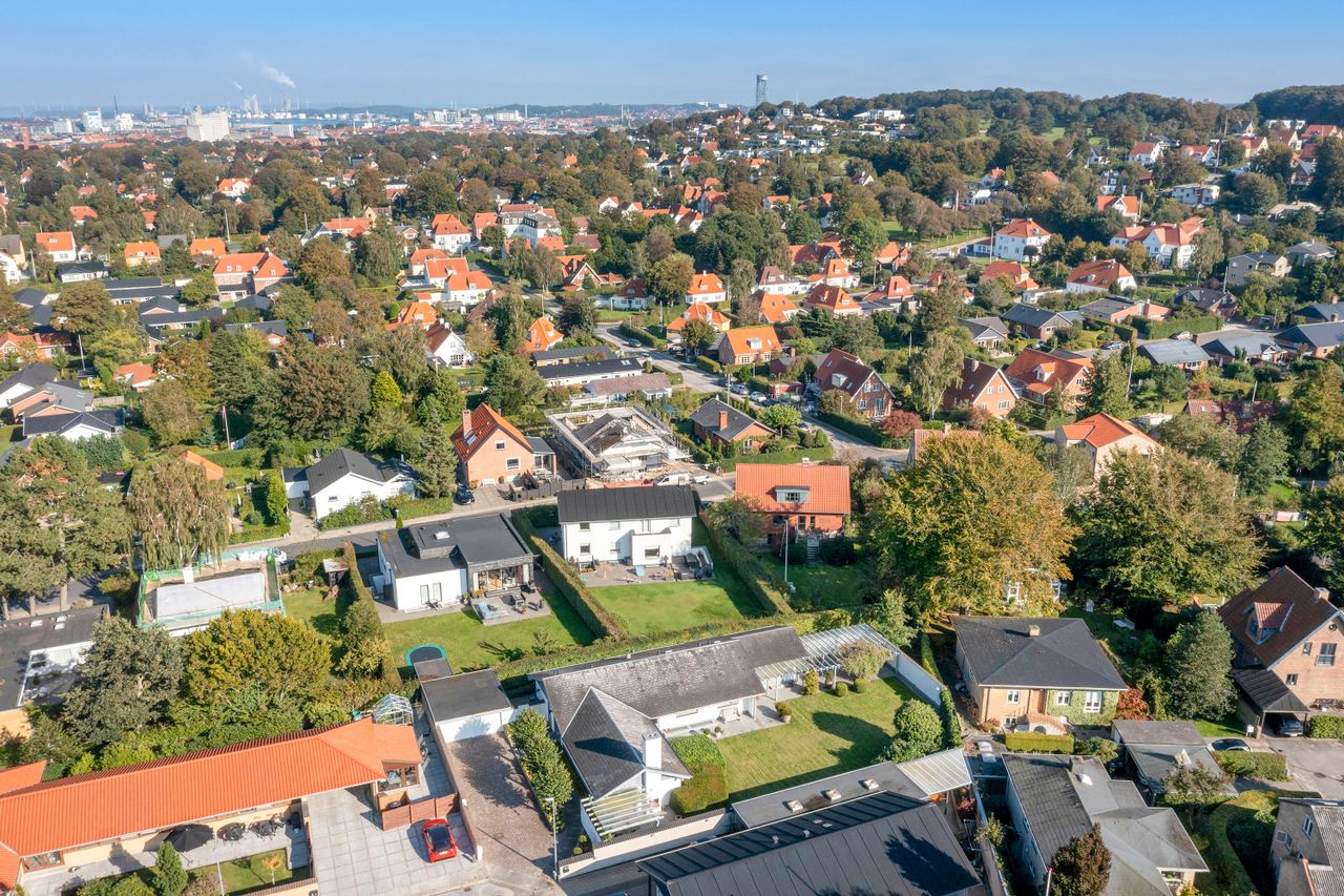 Villaen er en arkitekttegnet 1-plans villa, som fremstår meget velholdt og indbydende. Boligen rummer hele 207 kvm. i stueplan, og dertil kommer en god, tør og anvendelig underetage på 110 kvm. Til boligen hører også en 35 kvm. muret garage med el-port hvor bilen kan med udgang til baghaven og bryggers. Villaen er beliggende på en 1.026 kvm. stor solrig grund med en ugeneret sydvestvendt have. Haven fremstår meget velanlagt og byder derudover på store terrasser samt overdækkede arealer.