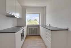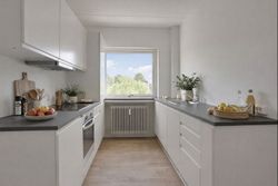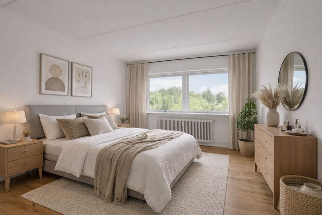 Stuen er sydvendt og har et skønt lysindfald gennem det store vinduesparti med udsigt til grønne arealer. Her er god plads til både sofa- og spiseafdeling. Soveværelset er placeret mod nord og fremstår lyst og rummeligt med plads til seng, skrivebord og opbevaring.