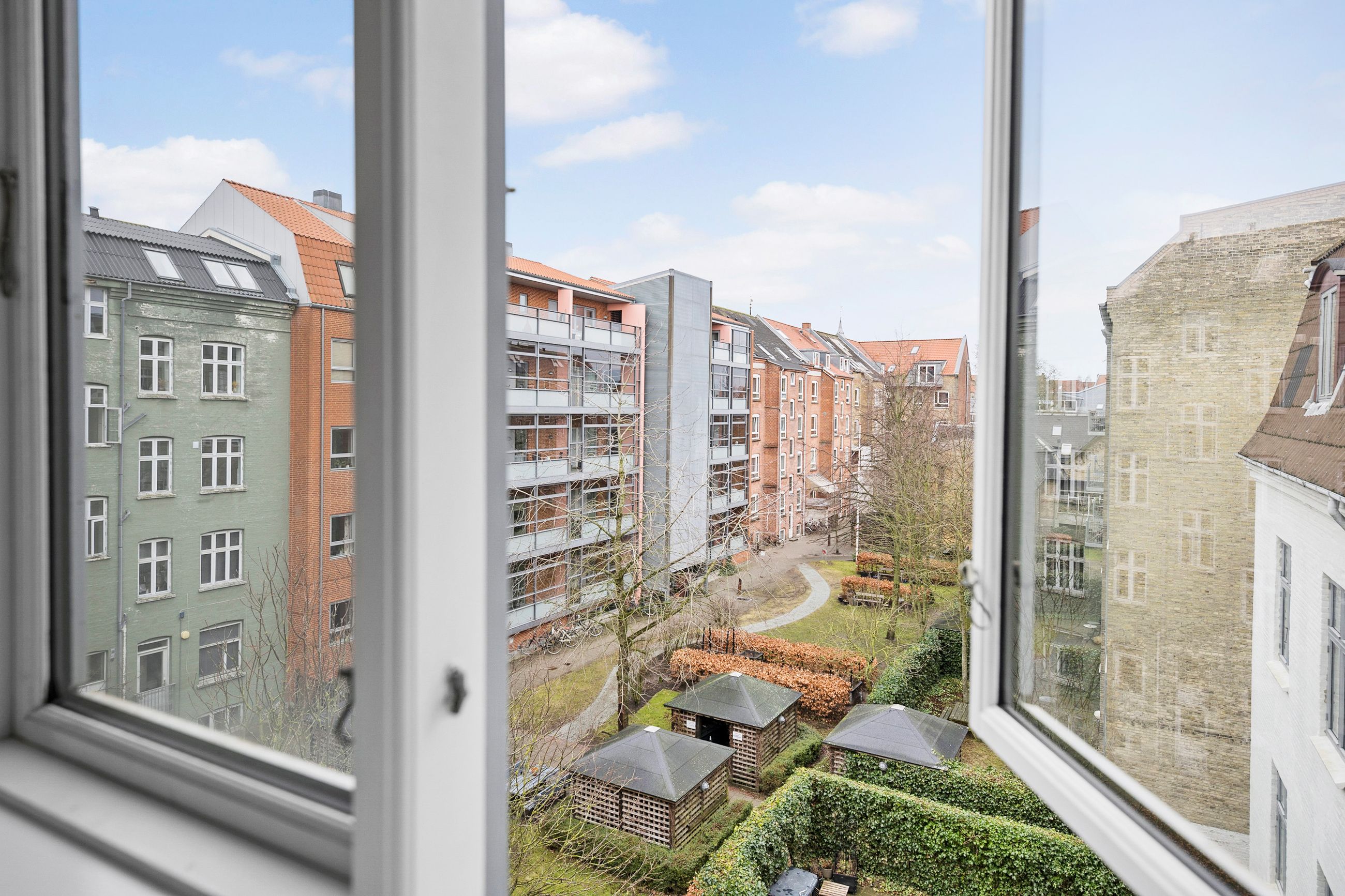 Adressen fører jer til et roligt område, selvom I bor i hjertet af Aalborg centrum, og dermed tæt på alle byens tilbud. Offentlig transport, indkøbsmuligheder, kulturoplevelser samt Aalborgs stemningsfulde gågade ligger alt sammen inden for gåafstand, ligesom caféer, restauranter, havnefronten og grønne områder som Kildeparken og Slotsparken.