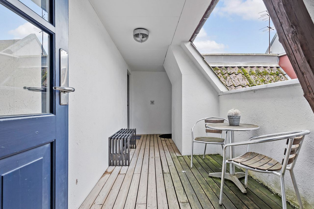 Lejligheden er ugeneret beliggende på 3. sal, hvilket sikrer fuldt privatliv. Planløsningen er optimal uden spildplads, og modsat andre lejligheder af samme størrelse har denne stadig alle de moderne bekvemmeligheder, som efterspørges.