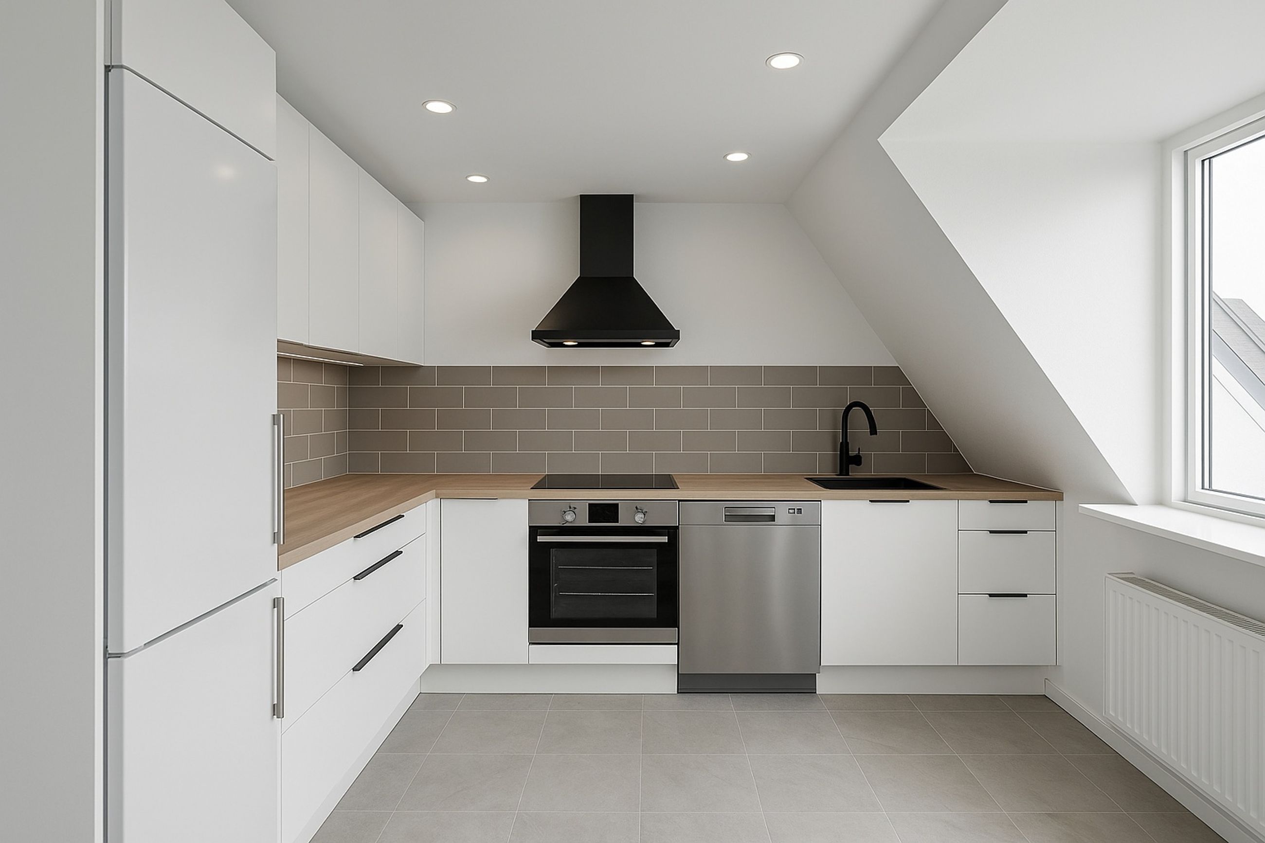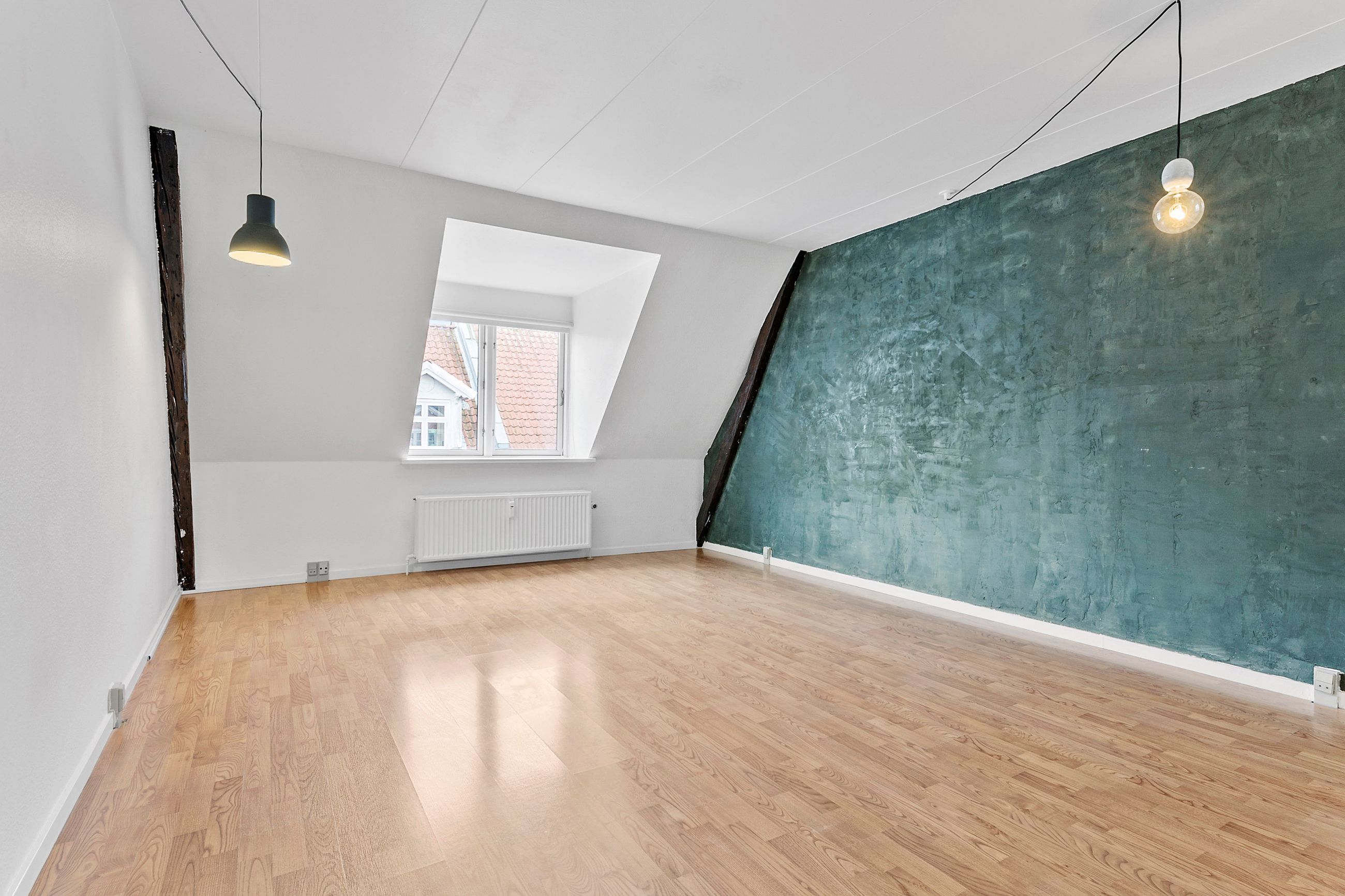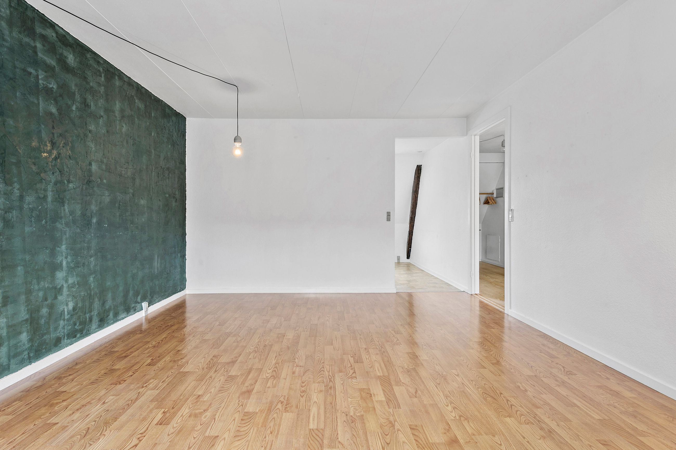 Der er mange indretningsmuligheder, og da stuen ligger ved siden af køkkenet, er det muligt og nemt at etablere et køkkenalrum, hvis ønsket.