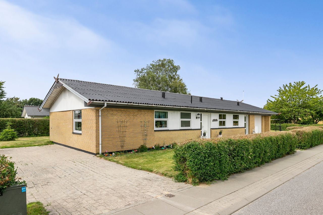 Villaen er opført i 1972 og ligger på en 805 m2 stor grund med masser af plads til både leg, afslapning og haveliv. Huset byder på 127 veludnyttede kvadratmeter og er godt vedligeholdt – både ude og inde. Til huset finder man også en dejlig stor og lukket garage med værksted for enden der også har udgang til den skønne have. Haven er stor, nem og solrig, så havearbejdet hurtigt kan klares og sommeren kan nydes.