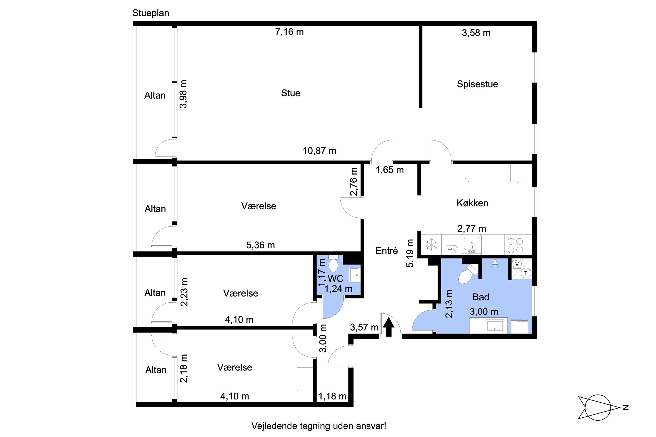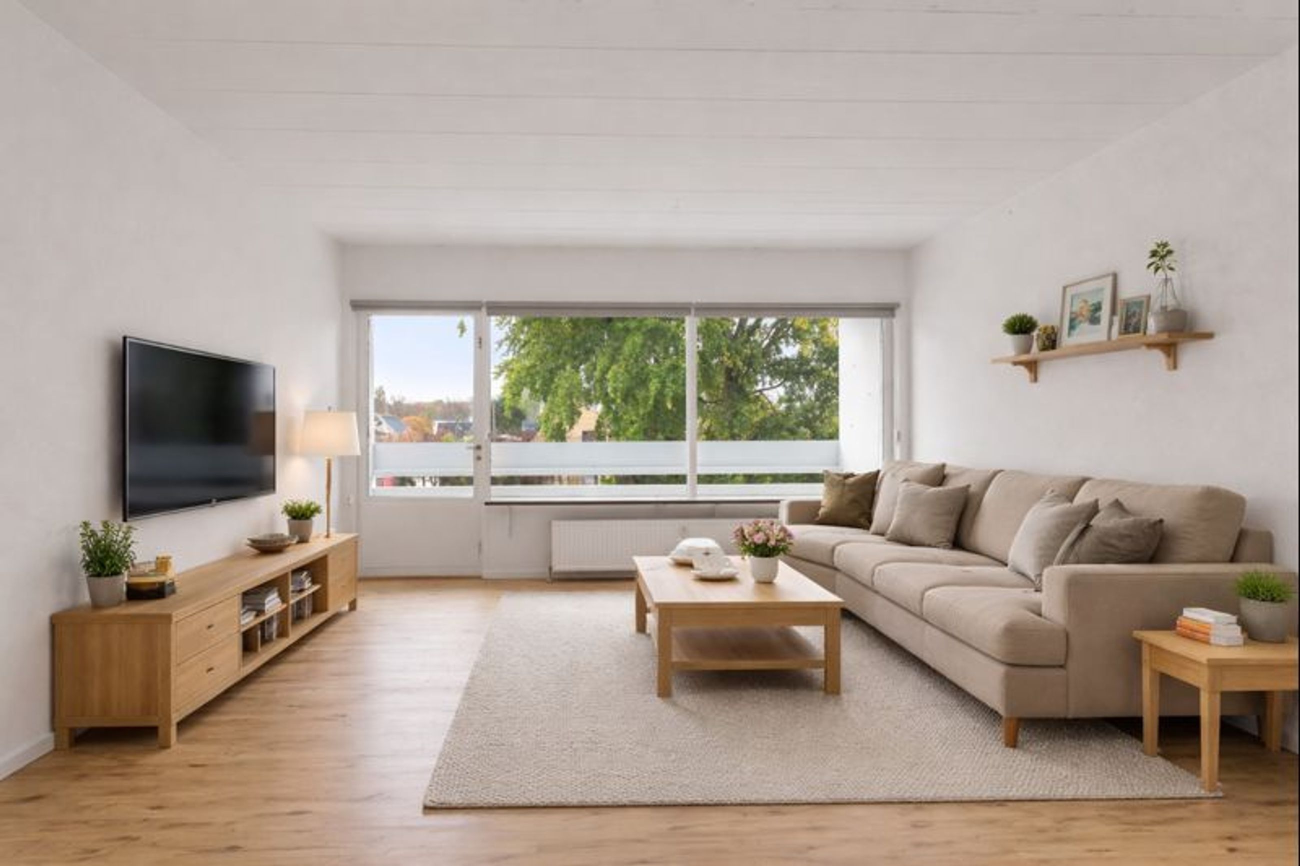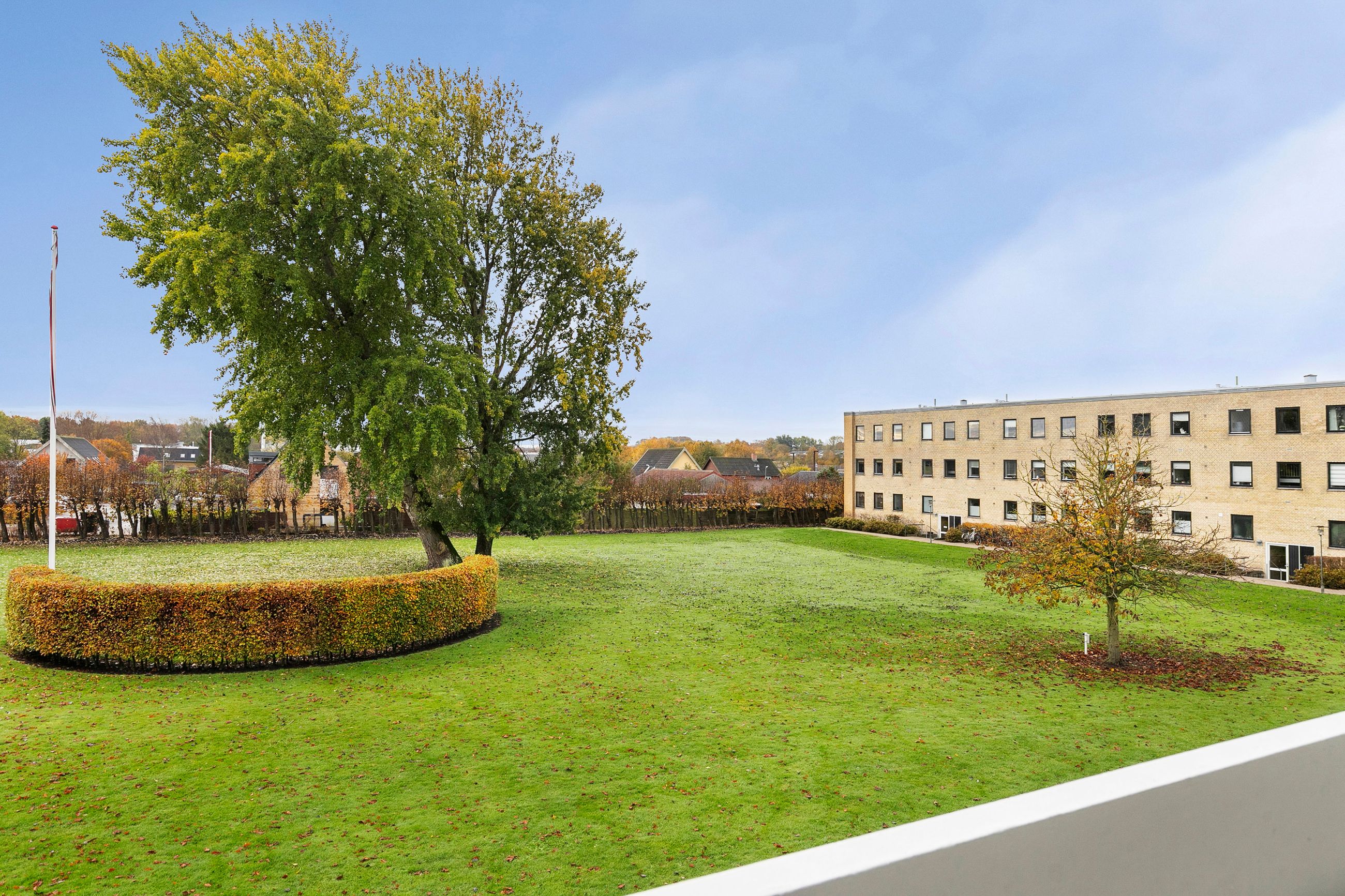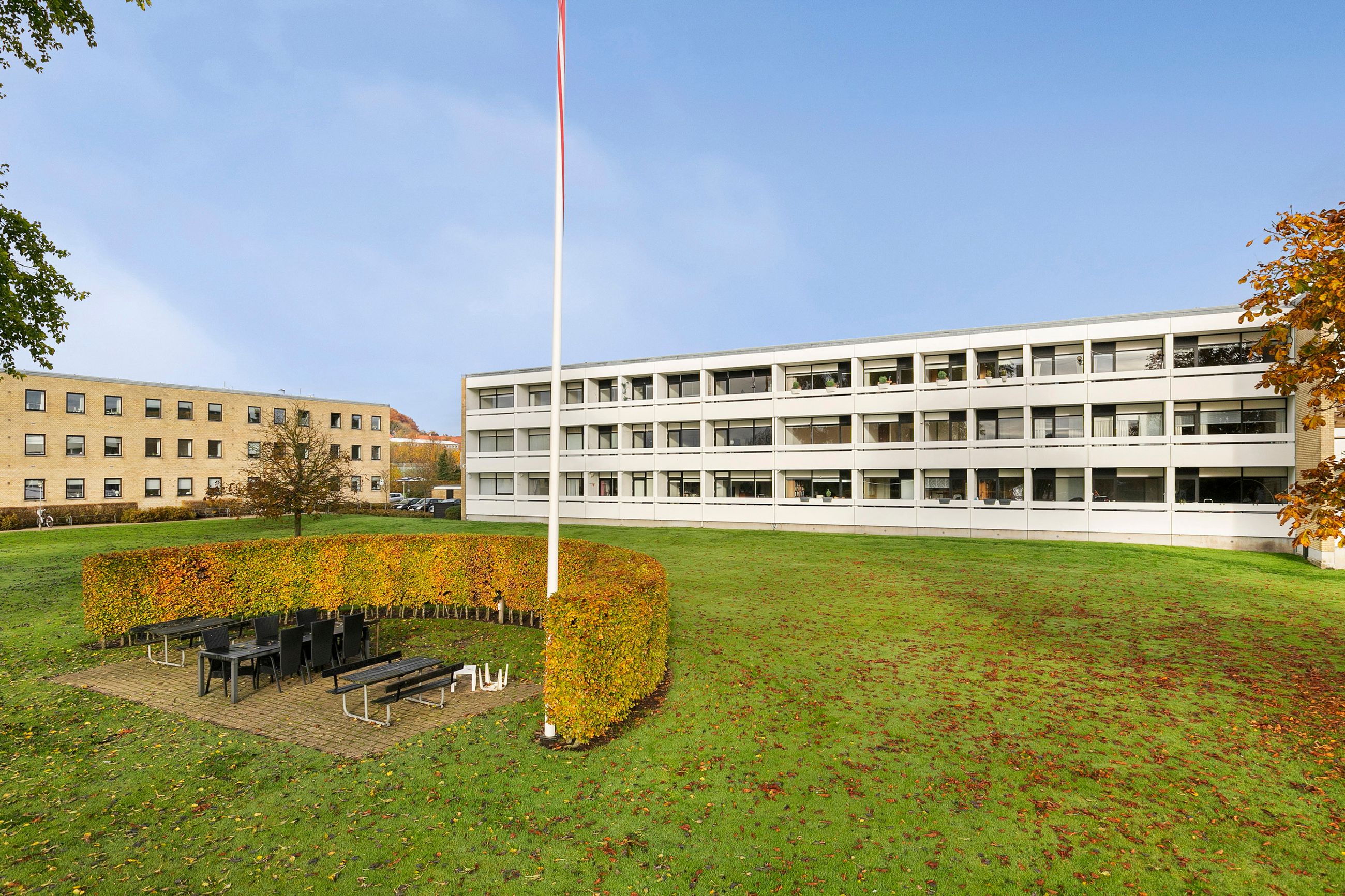 Boligen rummer hele tre store soveværelser, alle ugeneret beliggende mod syd og med egen altan ud mod de grønne fællesarealer. Køkkenet fremstår særdeles velholdt med god skabs- og bordplads samt alle nødvendige hårde hvidevarer. I forlængelse heraf ligger spisestuen, og ønsker man et moderne køkken-alrum, er der oplagte muligheder for dette. Endelig finder vi den store, lyse stue, som ligeledes har udgang til en sydvendt altan. Stuen giver rige indretningsmuligheder, uanset om man ønsker flere opholdszoner, hjemmearbejdsplads eller plads til hele familien.