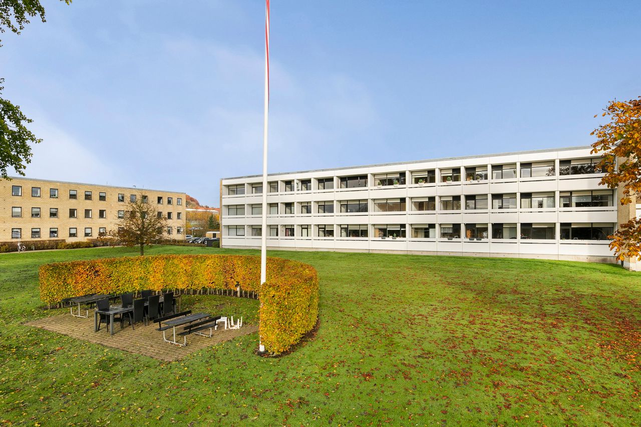 Lejligheden er beliggende i et velholdt, lavt etagebyggeri med skønne grønne fællesarealer og gode parkeringsforhold. Ejerforeningen fremstår veldrevet med sund økonomi, og der er ingen større projekter på vej. Til lejligheden hører eget, tørt kælderrum.