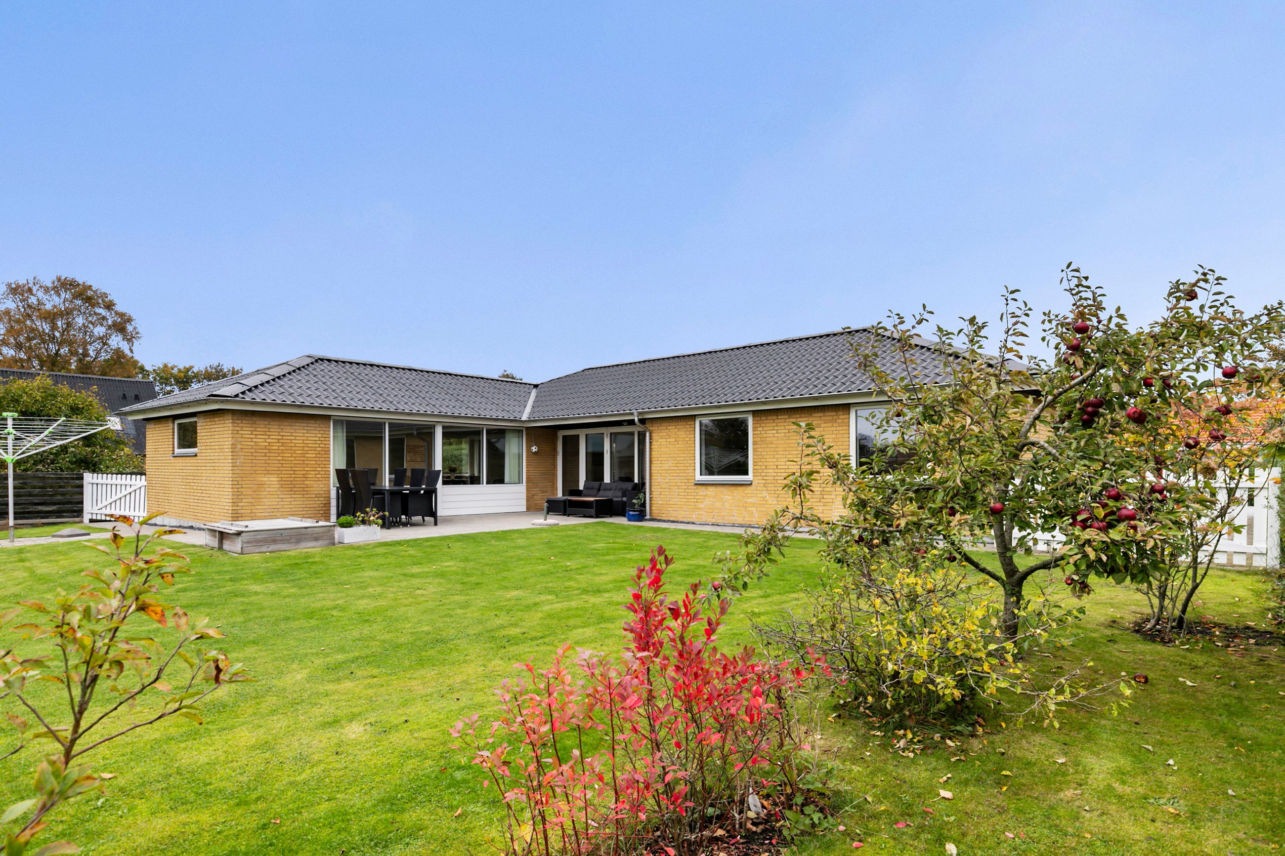 Udvendigt får I en velanlagt og børnevenlig have med flere skønne solkroge – og ikke mindst det flotte anneks, som giver uanede anvendelsesmuligheder året rundt.