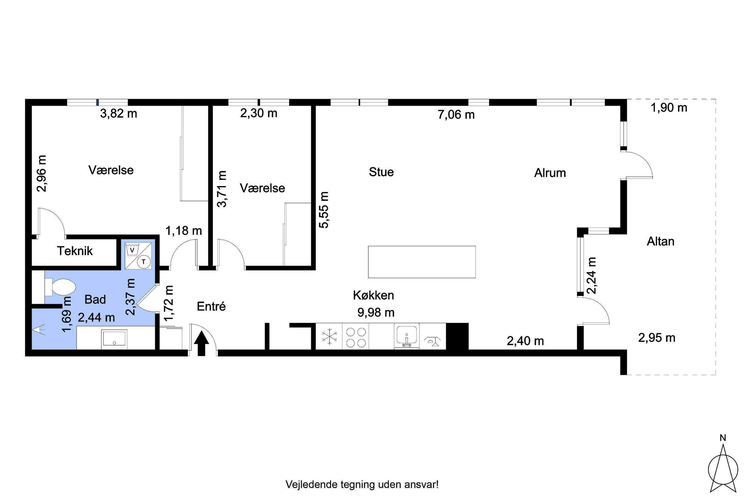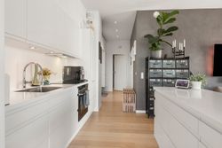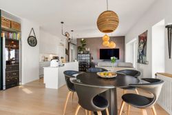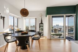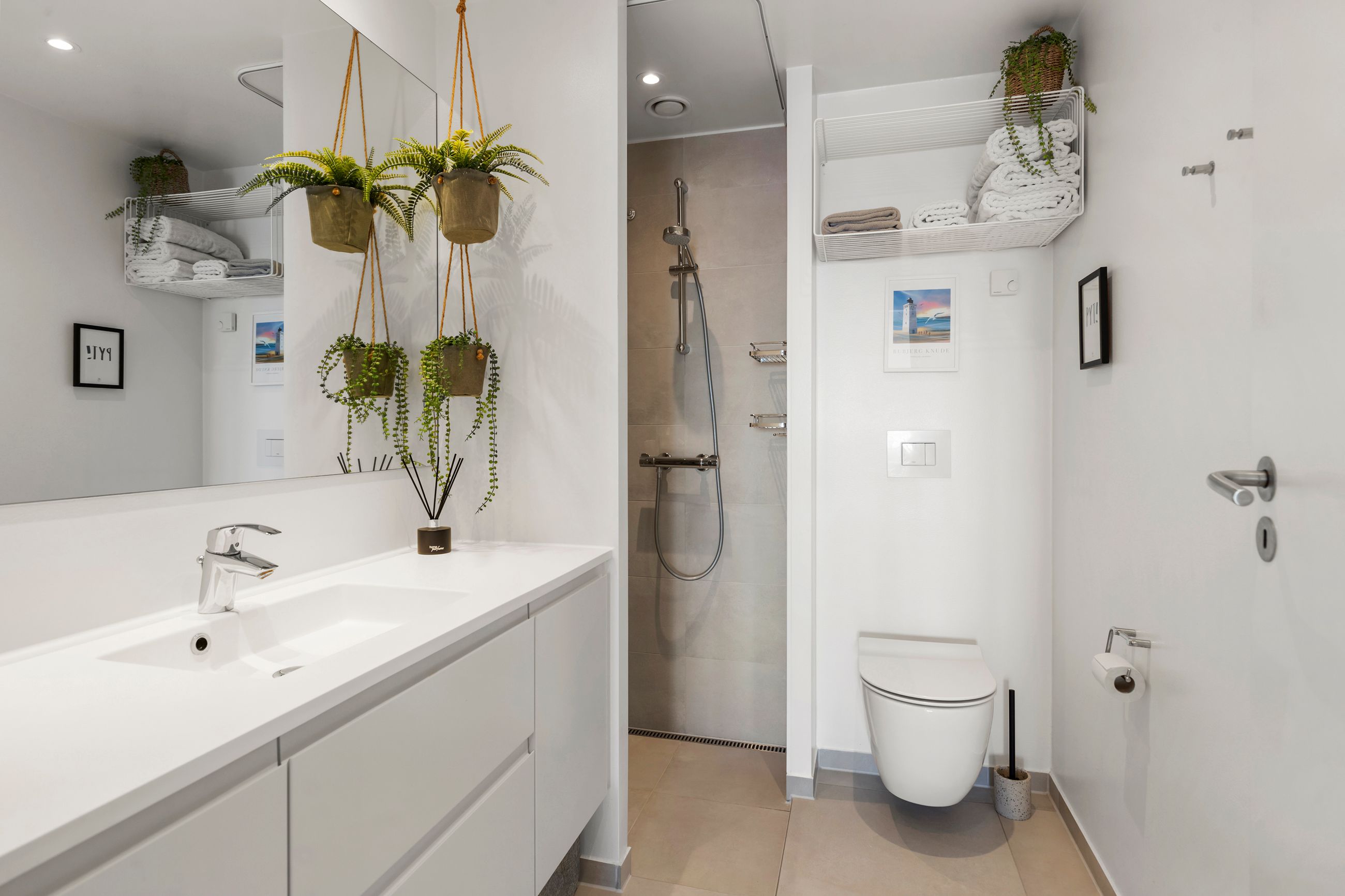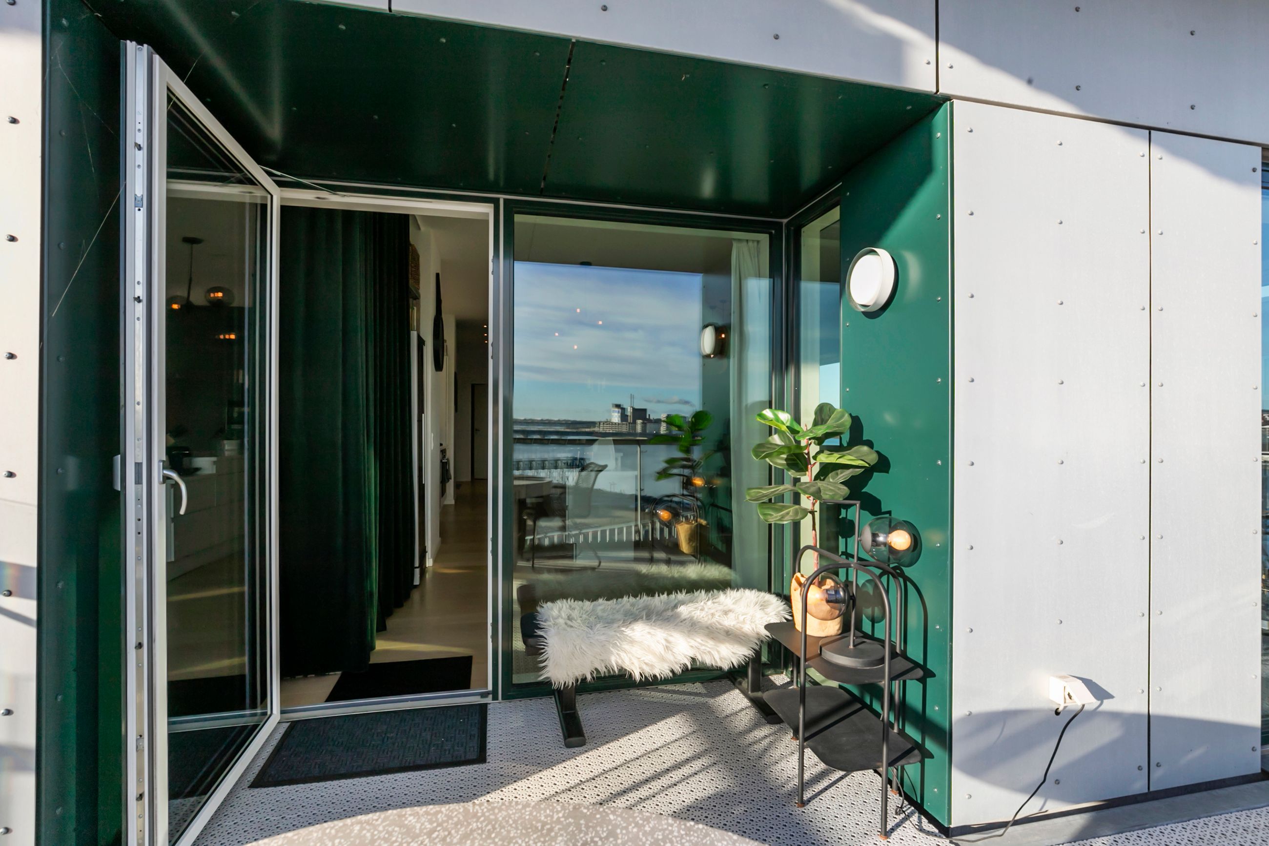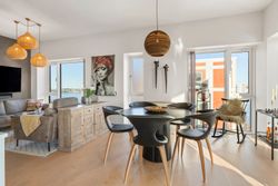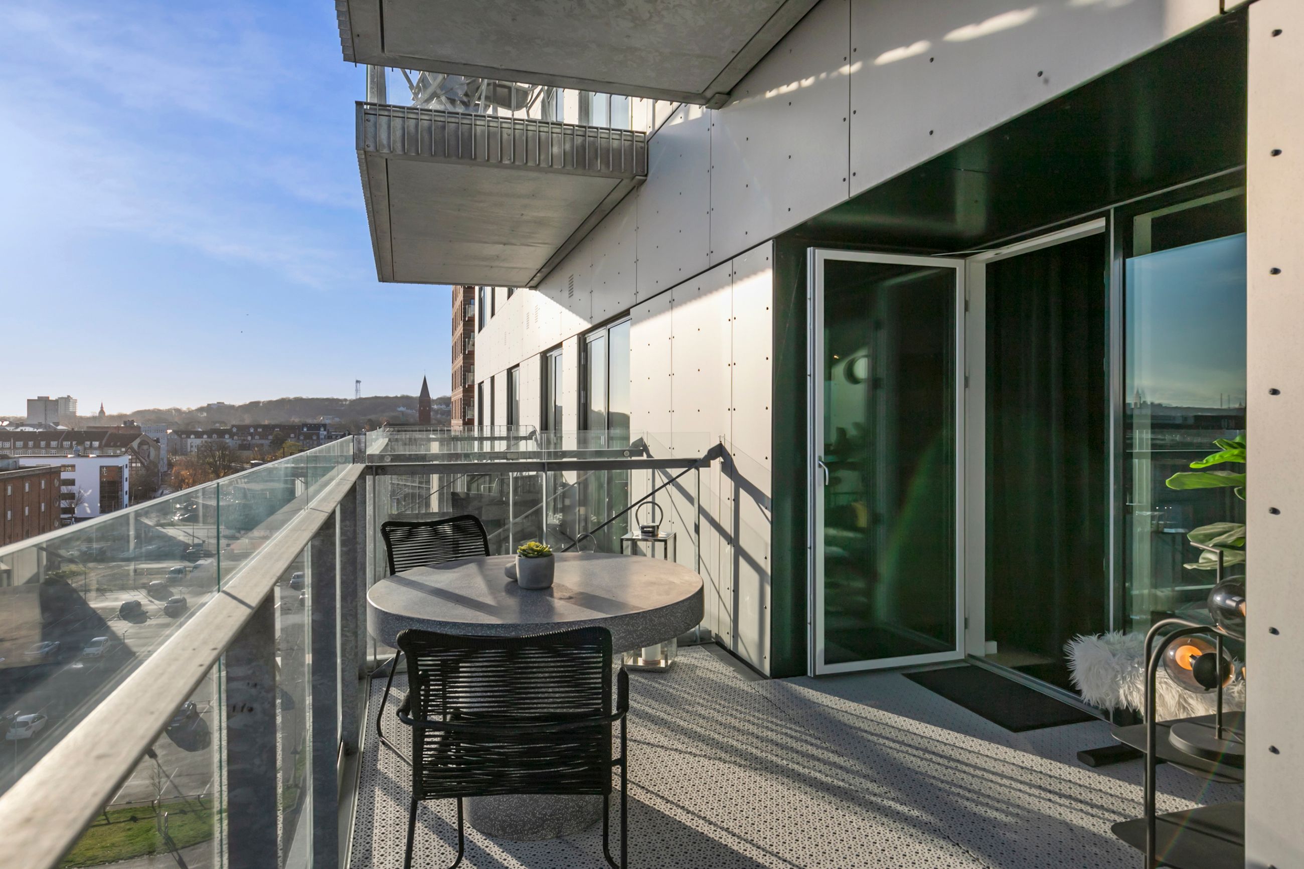 Lejligheden står som ved opførelsen og er derudover spændende indrettet af ejer. Planløsningen er gennemtænkt og byder på minimalt med spildplads. Der et helt fantastiske opholdsrum, hvor køkken-alrum og stue er samlet i ét stort, lyst og yderst lækkert miljø. De store vinduespartier giver masser af naturligt lys og udnytter den smukke udsigt for fulde drøn – et rum man bare har lyst til at opholde sig i fra morgen til aften.