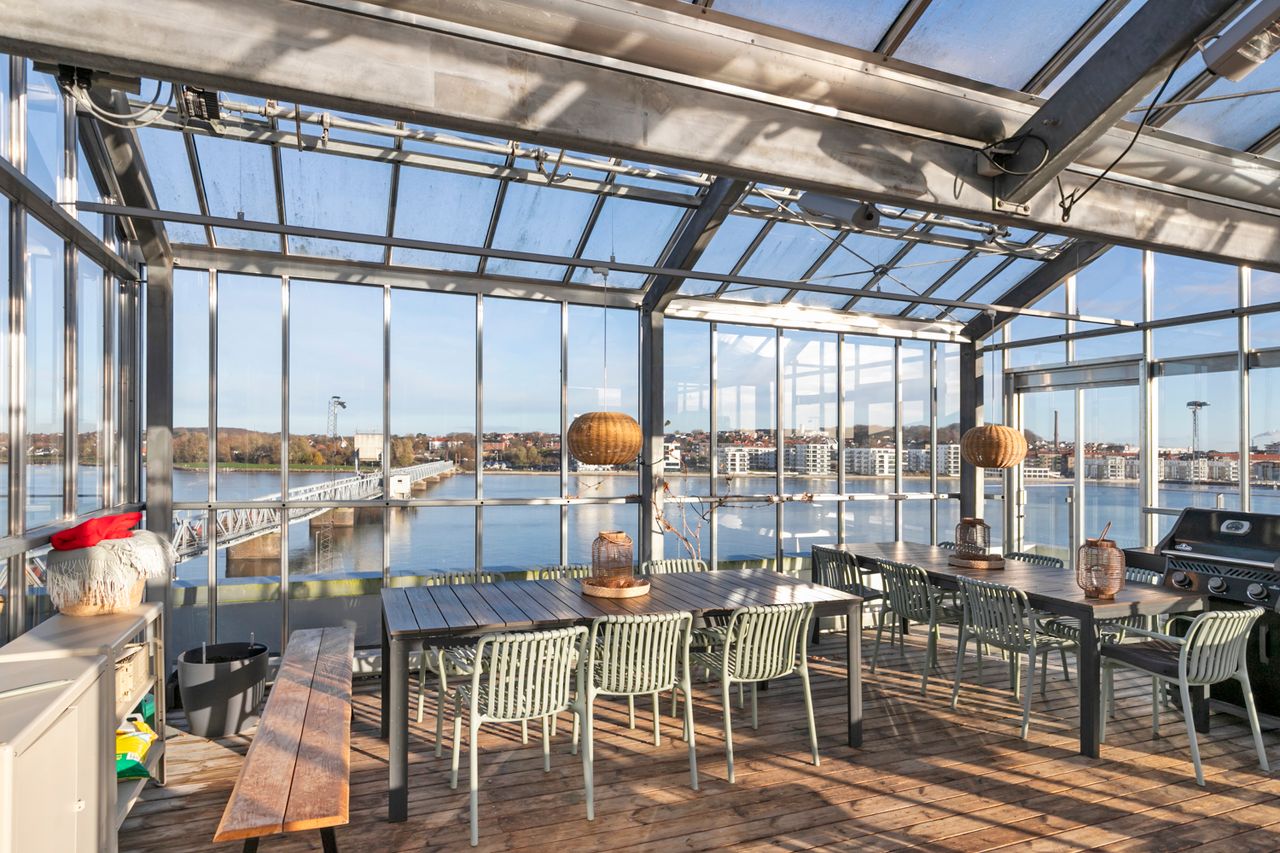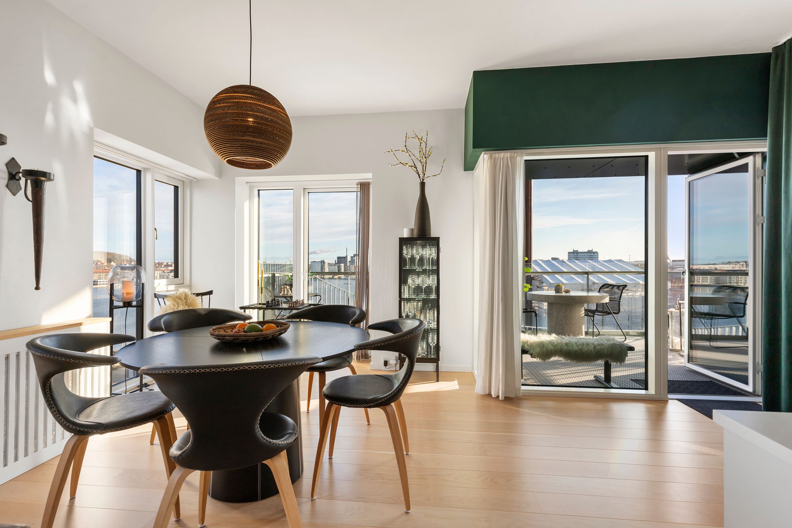 Herfra er der direkte udgang til altanen, som fungerer som et ekstra uderum i sommerhalvåret.