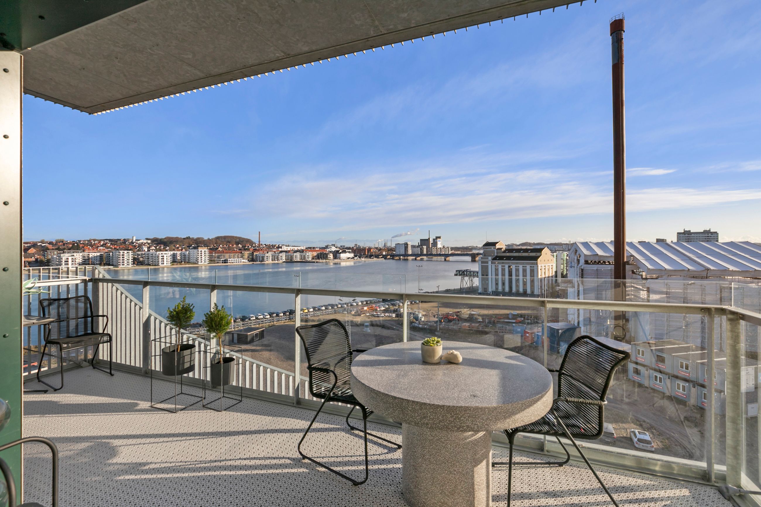 Den skønne lejlighed ligger i hjertet af Vestbyen, i ejendommen Høkergården ved det historiske Spritten-område, som i dag er en af Aalborgs mest spændende områder i udvikling. Her bor du med fjorden som nærmeste nabo og har direkte adgang til havnepromenade, grønne opholdsrum,