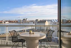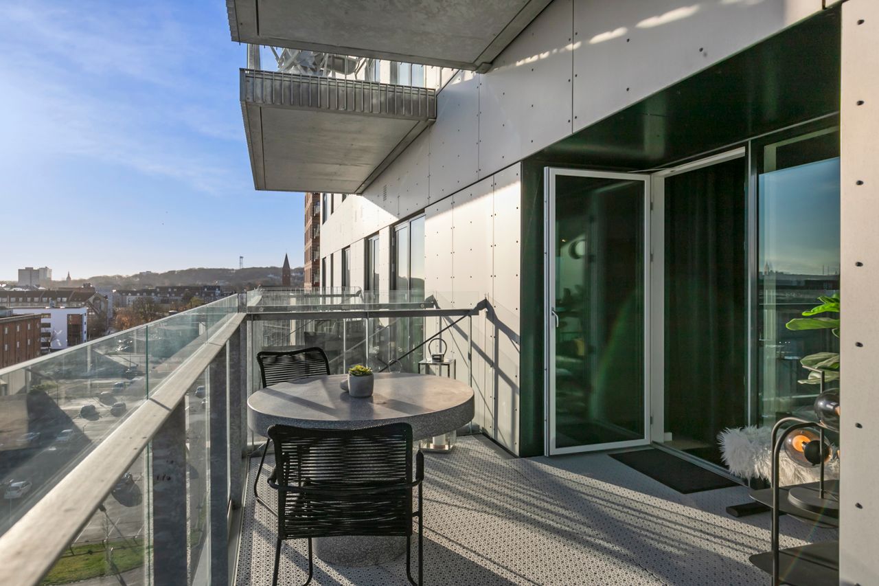 Den skønne lejlighed ligger i hjertet af Vestbyen, i ejendommen Høkergården ved det historiske Spritten-område, som i dag er en af Aalborgs mest spændende områder i udvikling. Her bor du med fjorden som nærmeste nabo og har direkte adgang til havnepromenade, grønne opholdsrum, stemningsfulde byrum og det levende miljø, som Vestbyen er kendt for.